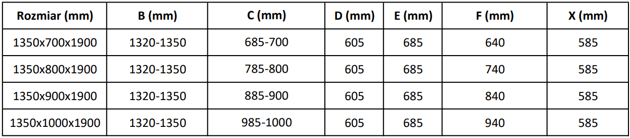 Veľkosť: 135x80 cm (dvere 135 cm, stena 80 cm)