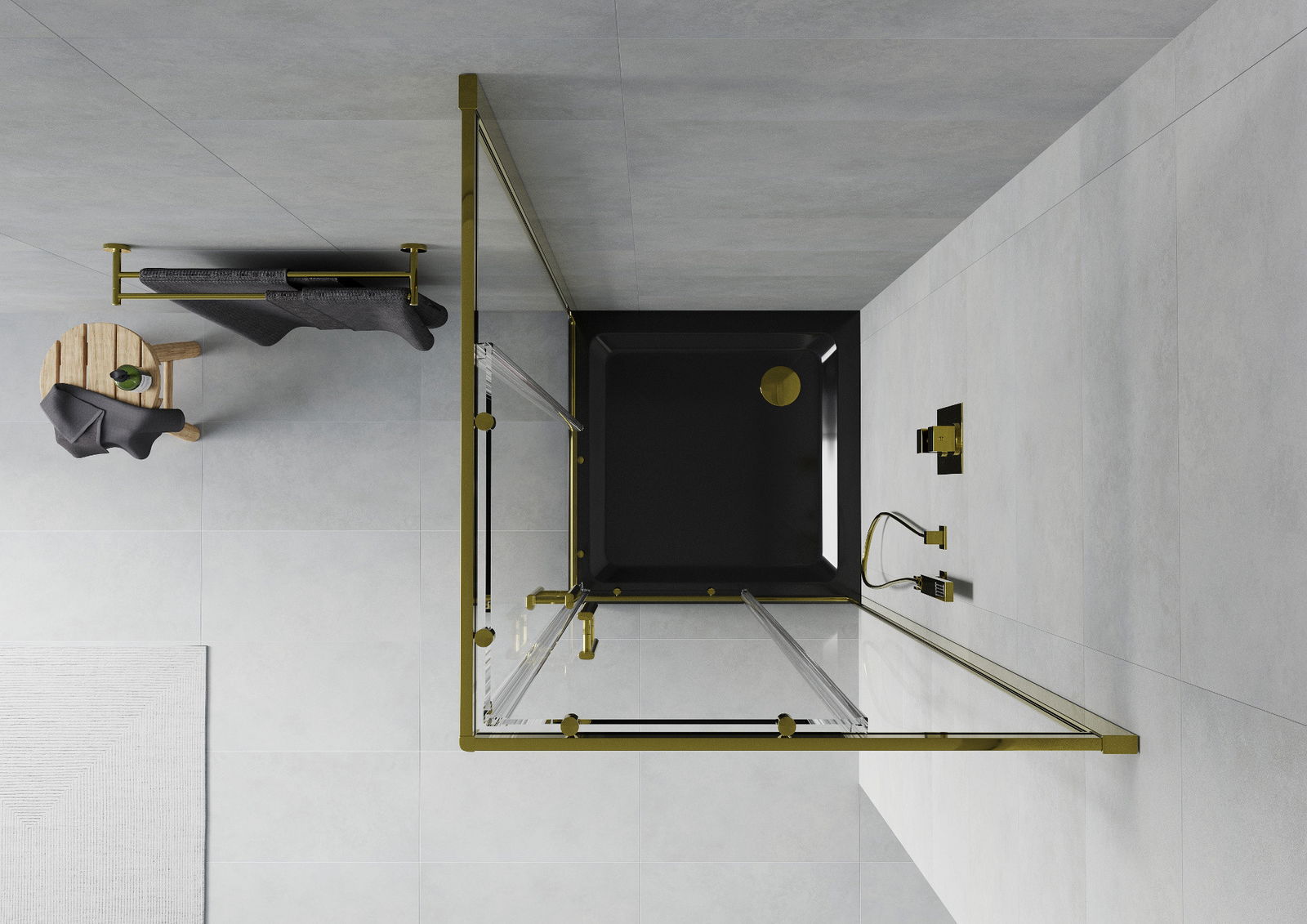 Mexen Rio štvorcová sprchová kabína 70 x 70 cm, číra, zlatá + vanička Flat, čierna- 860-070-070-50-00-4070G