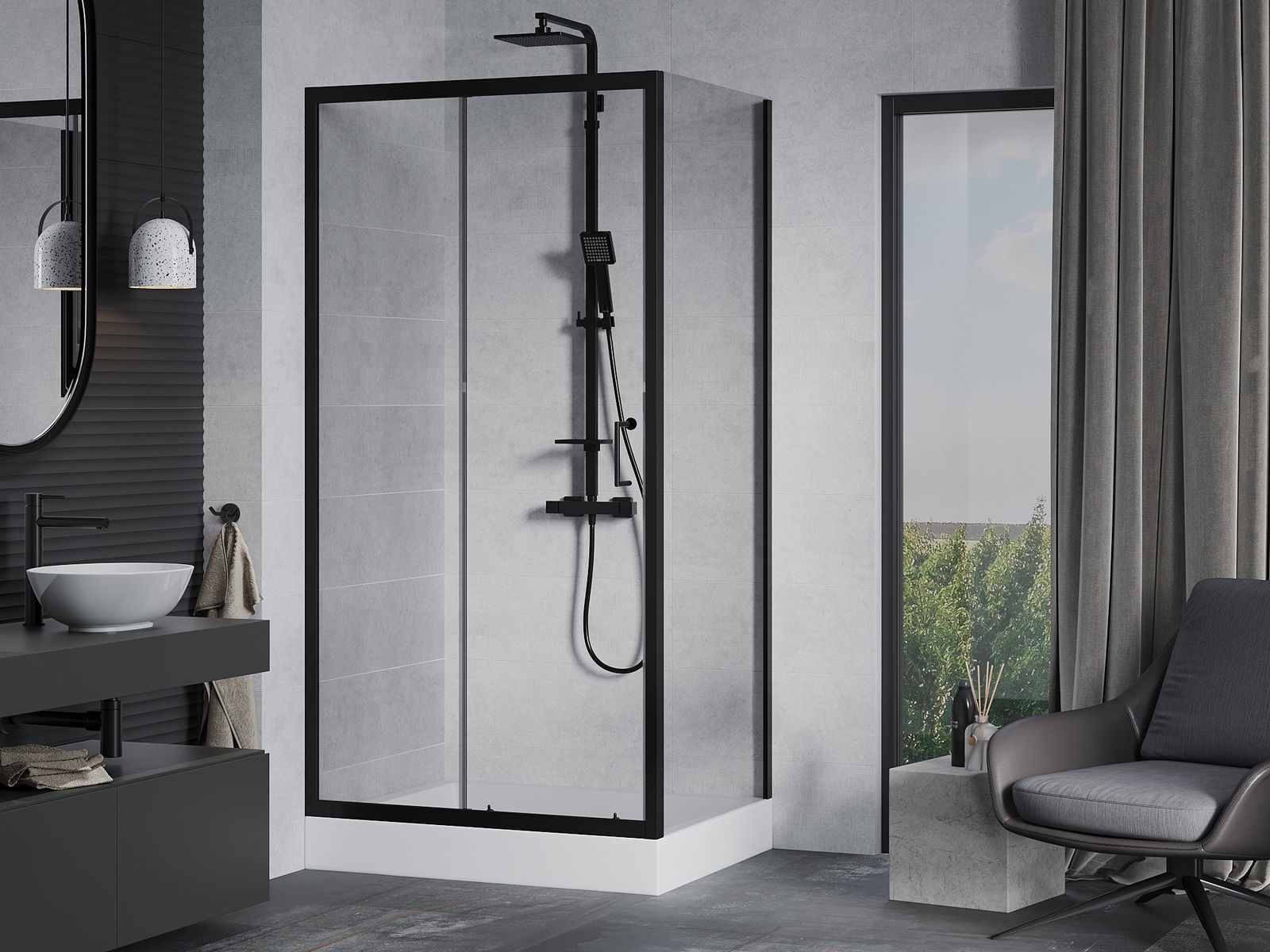 Mexen Apia sprchový kút posuvný 100 x 80 cm, transparentný, čierny + sprchová vanička Rio - 840-100-080-70-00-4510