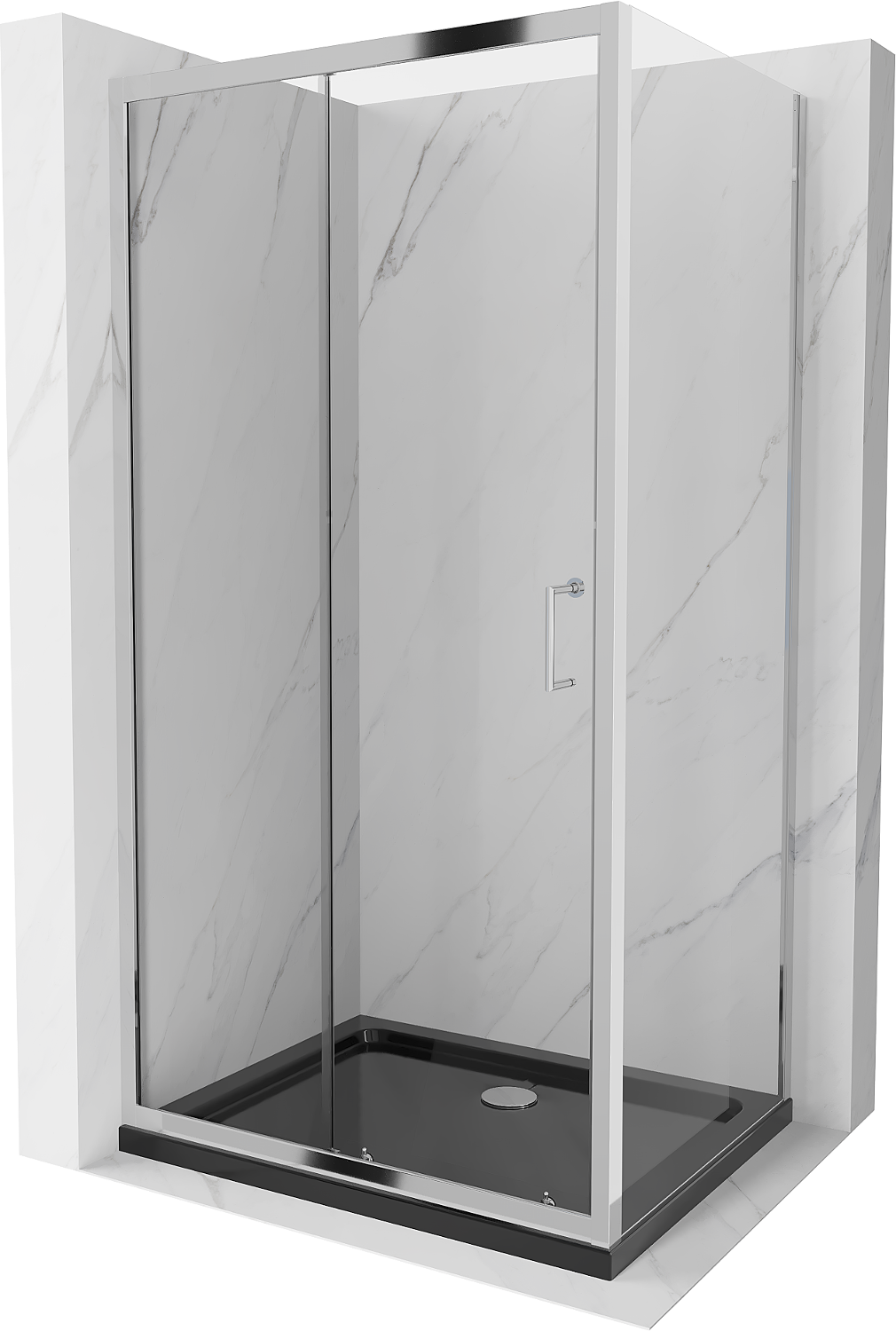 Mexen Apia sprchová kabína posuvná 90 x 80 cm, transparentná, chróm + vanička Flat, čierna - 840-090-080-01-00-4070