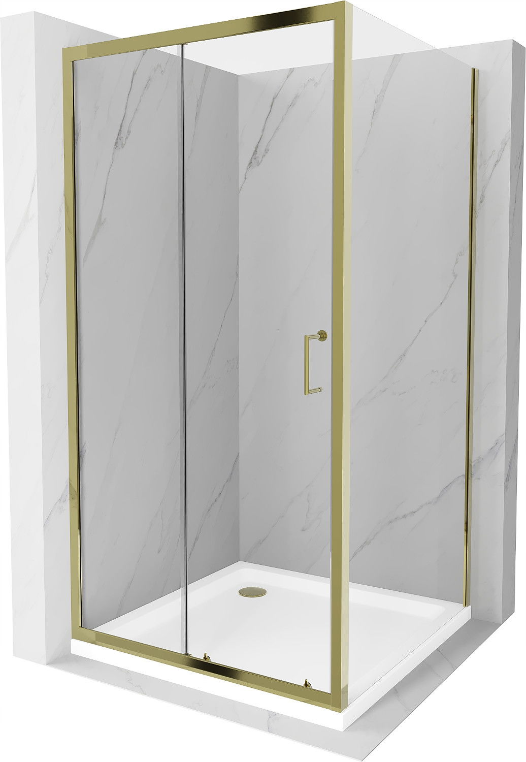 Mexen Apia Posuvná sprchová kabína 100 x 100 cm, transparentná, zlatá + sprchová vanička Flat, biela- 840-100-100-50-00-4010G
