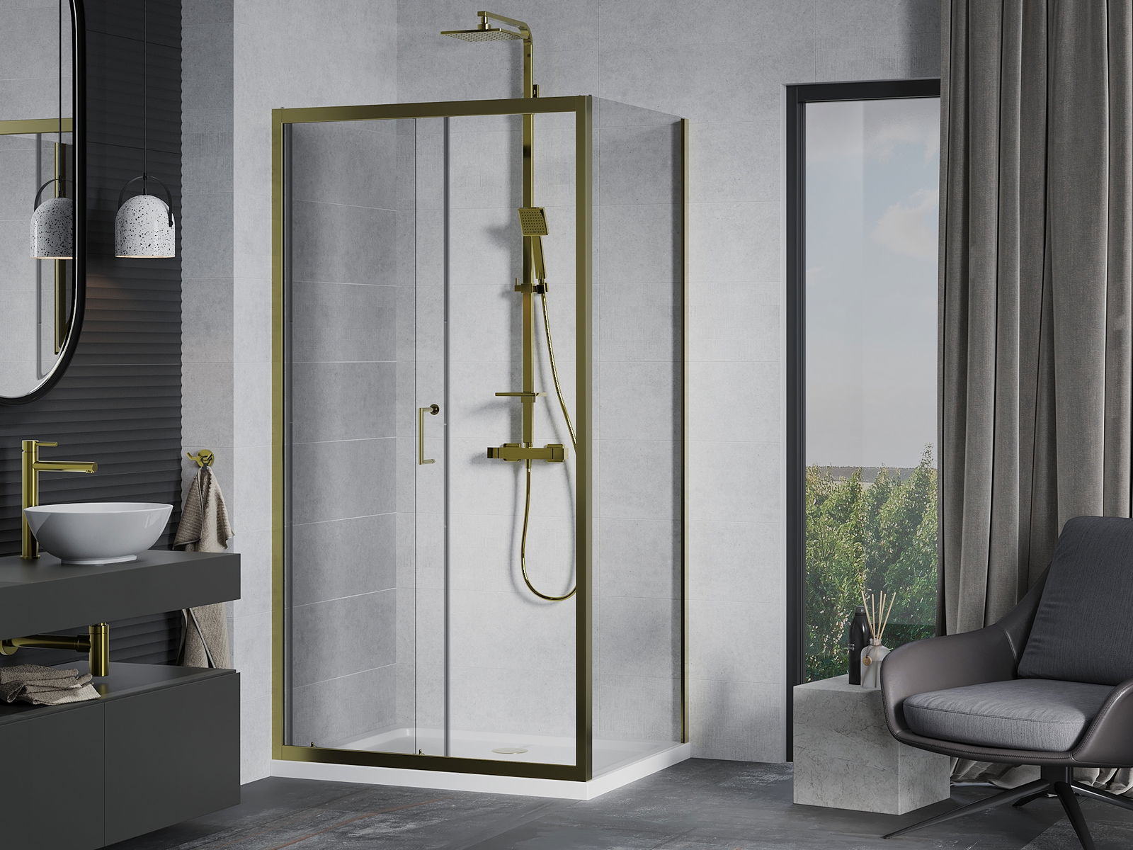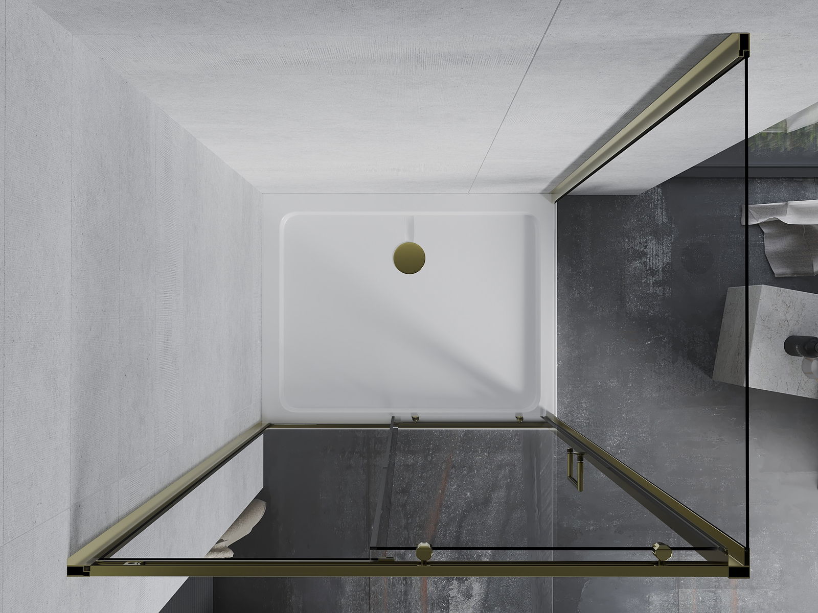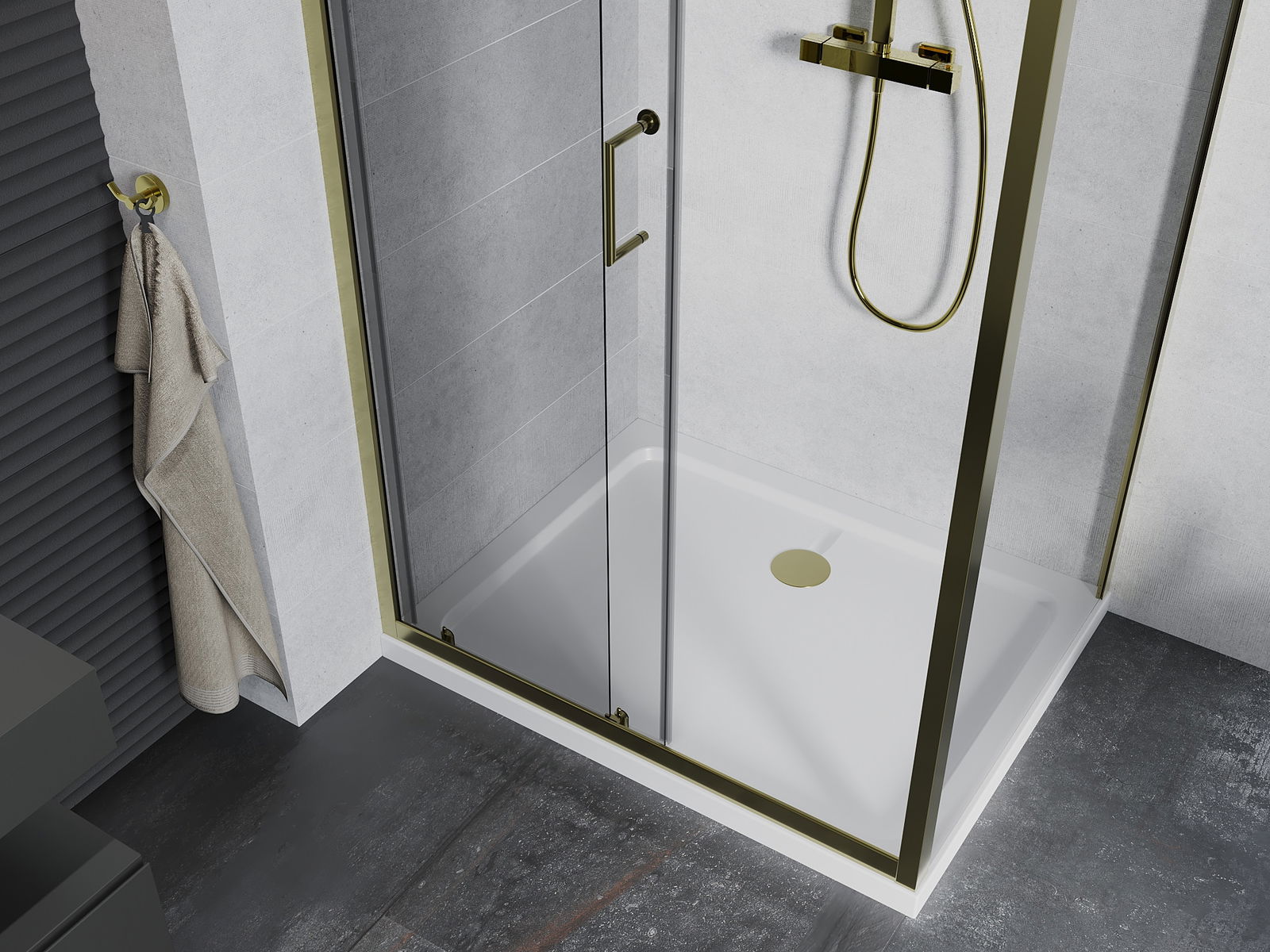 Mexen Apia posuvná sprchová kabína 130 x 70 cm, transparentná, zlatá + vanička Flat, biela- 840-130-070-50-00-4010G
