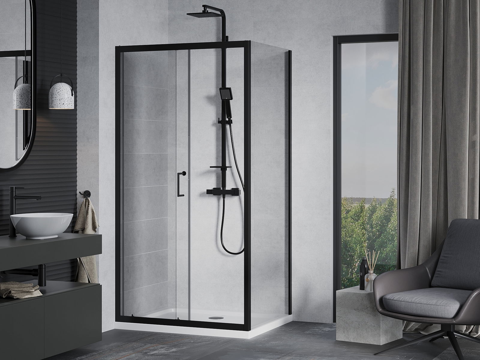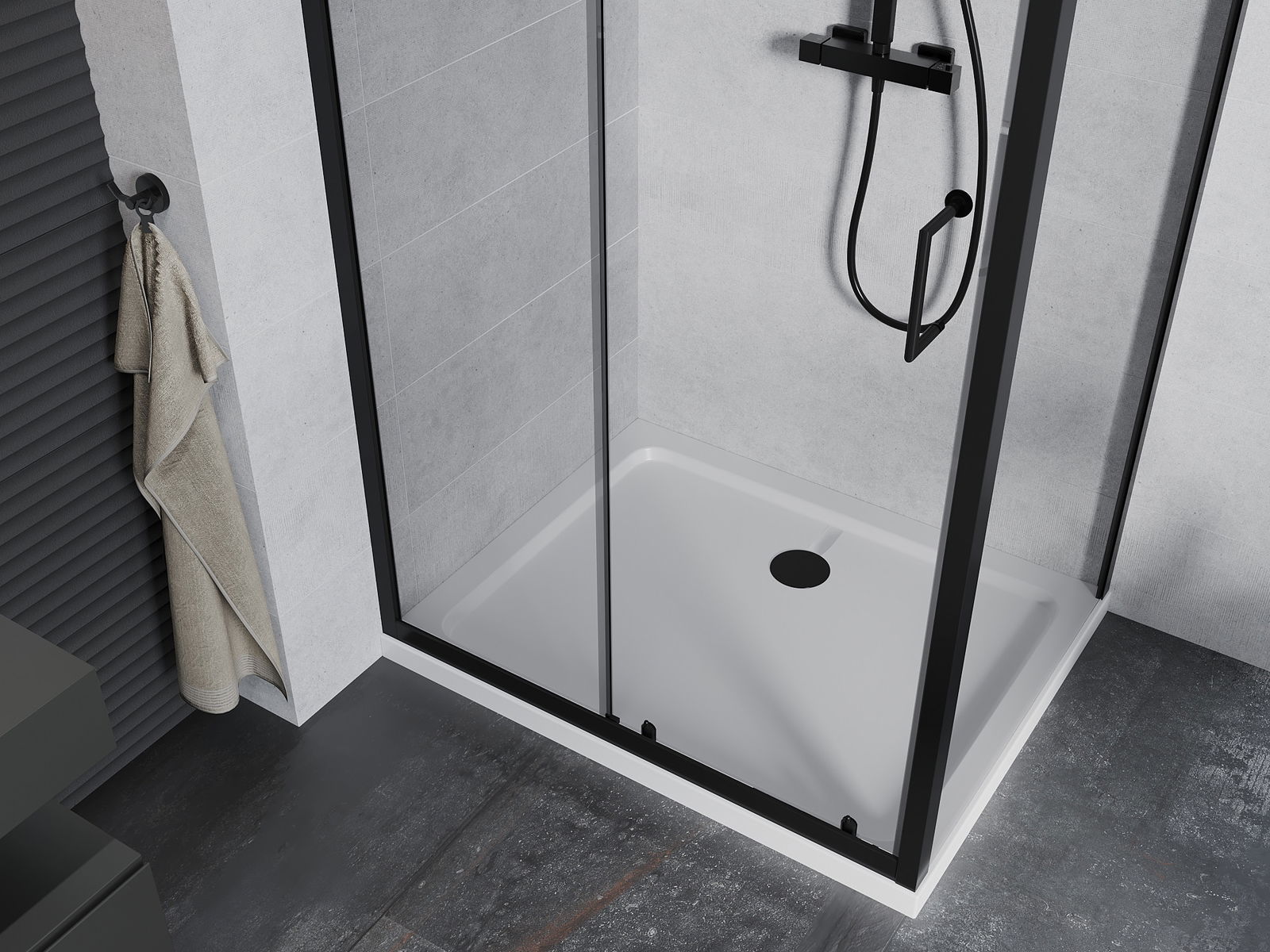 Mexen Apia posuvná sprchová kabína 90 x 80 cm, transparentná, čierna + vanička Flat, biela- 840-090-080-70-00-4010B