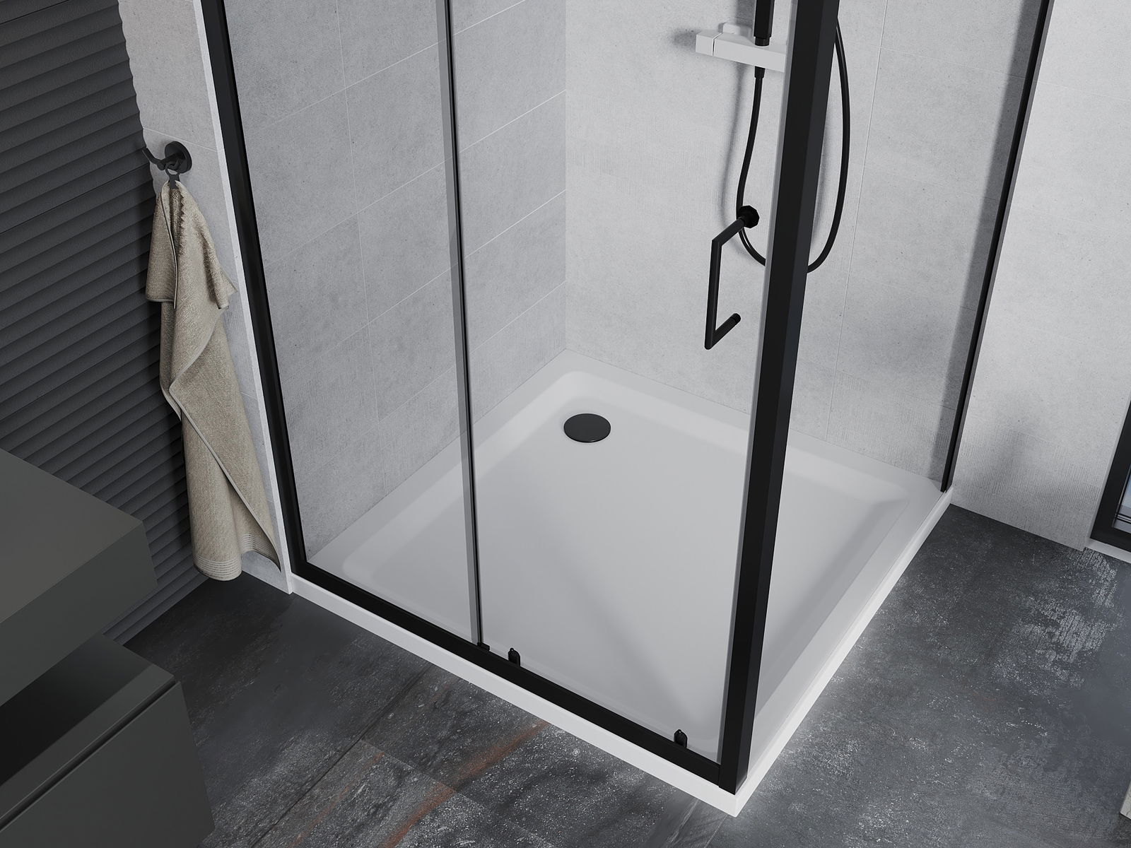 Mexen Apia posuvná sprchová kabína 100 x 100 cm, transparentná, čierna + plochá vanička, biela - 840-100-100-70-00-4010B