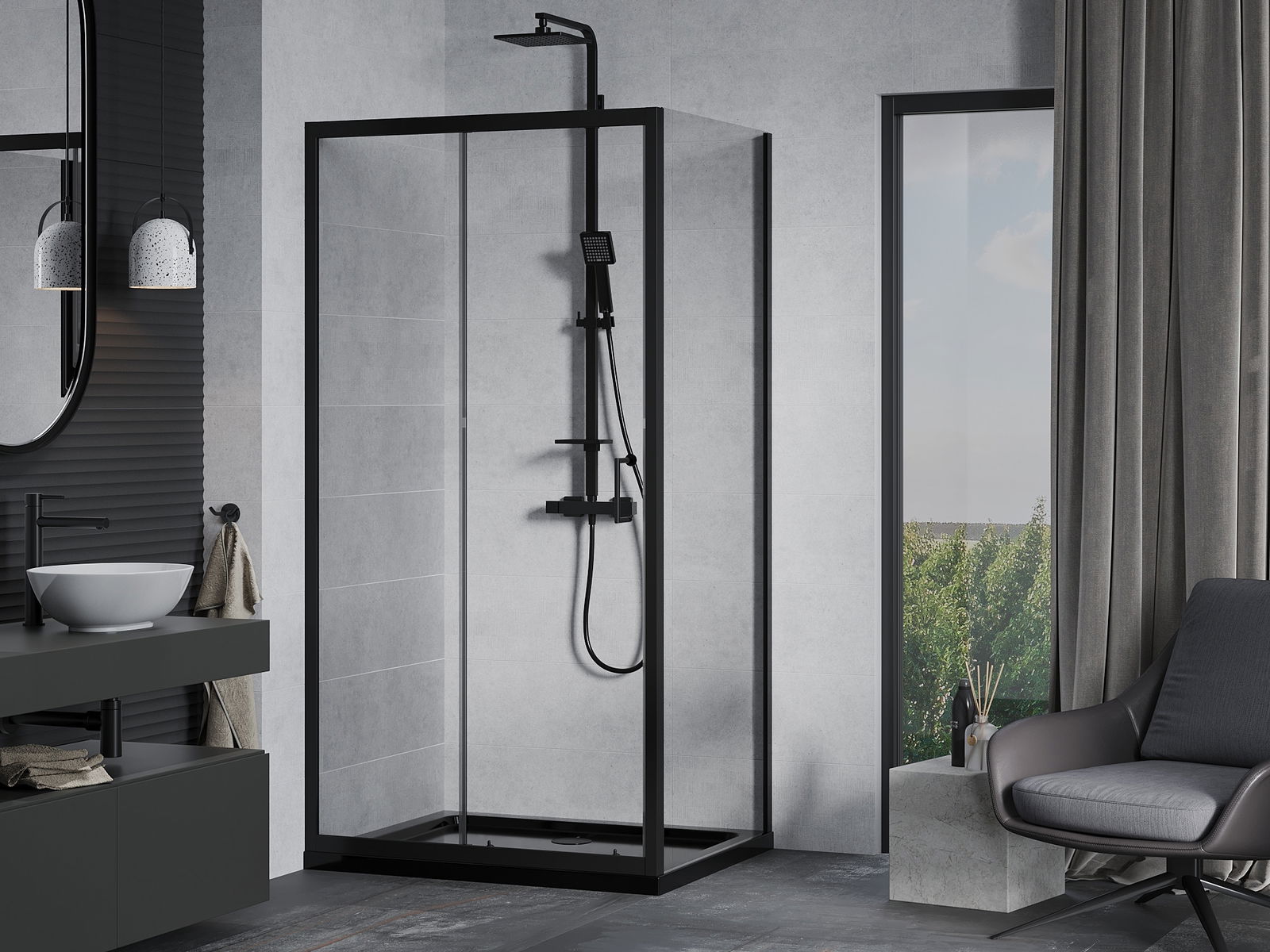 Mexen Apia sprchová kabína posuvná 90 x 80 cm, transparentná, čierna + vanička Flat, čierna - 840-090-080-70-00-4070B