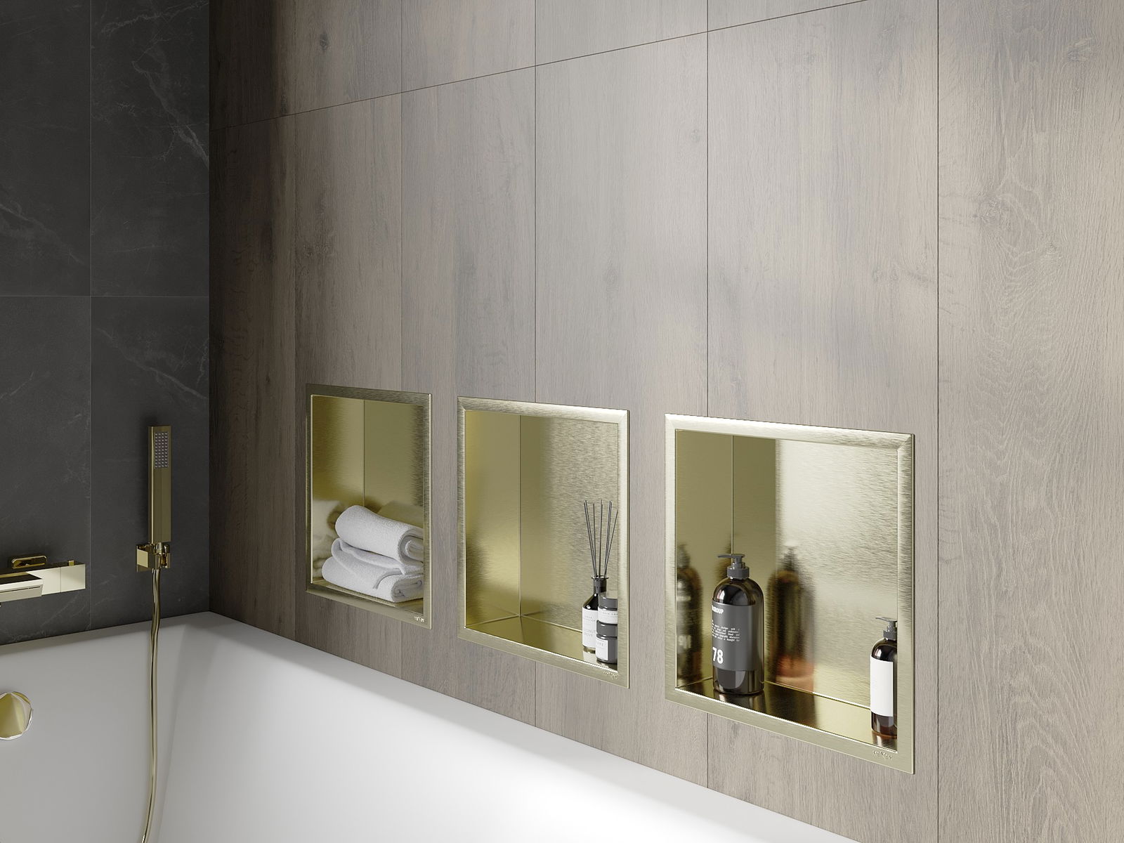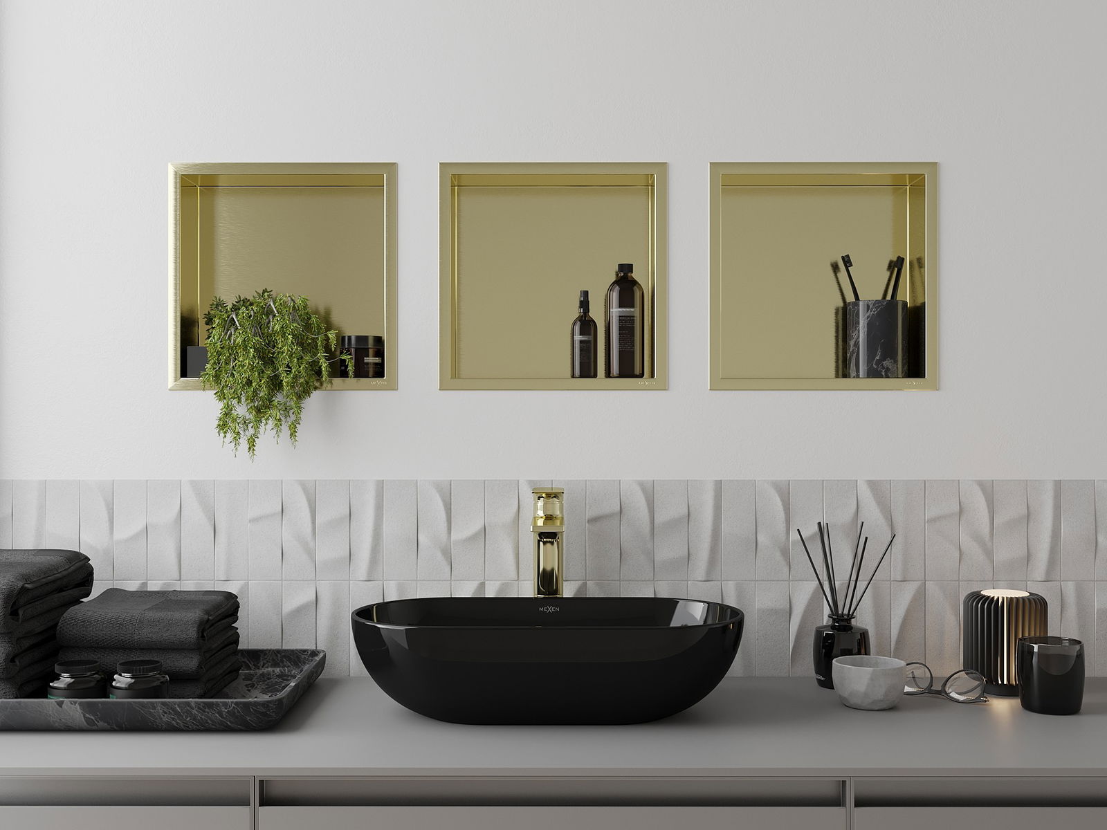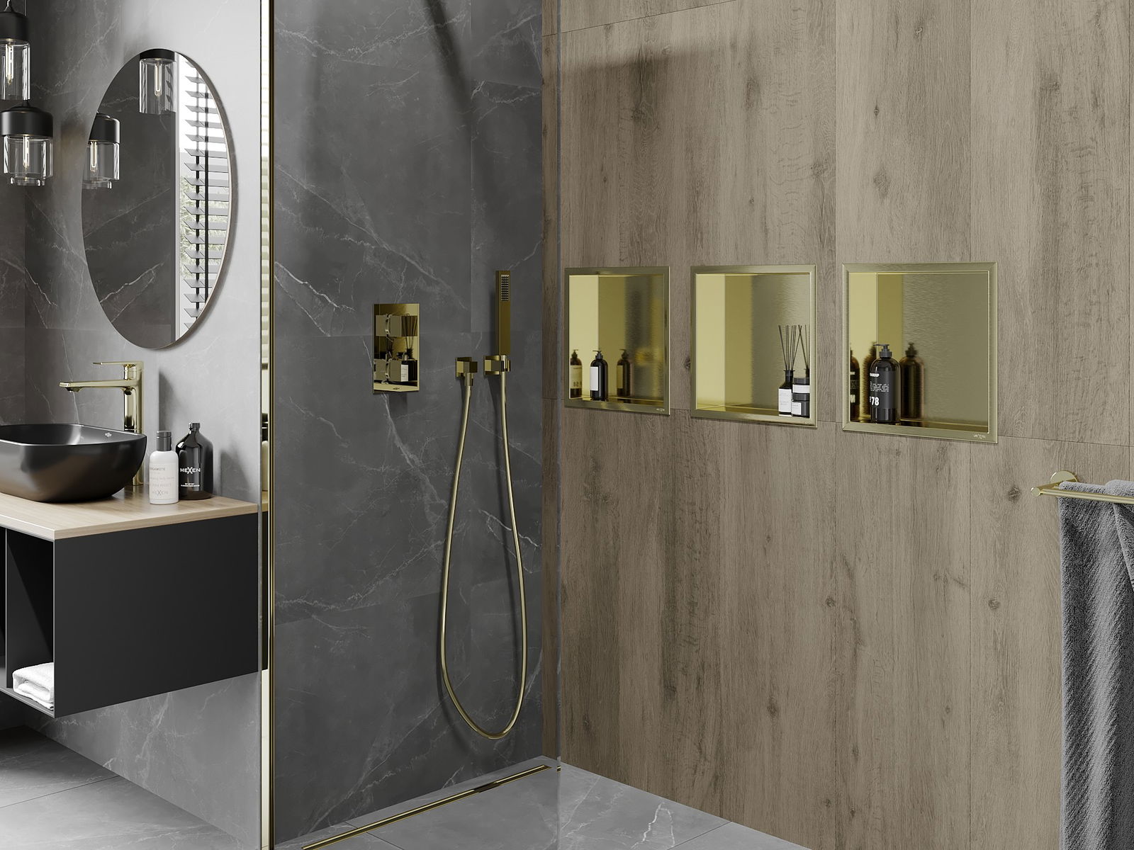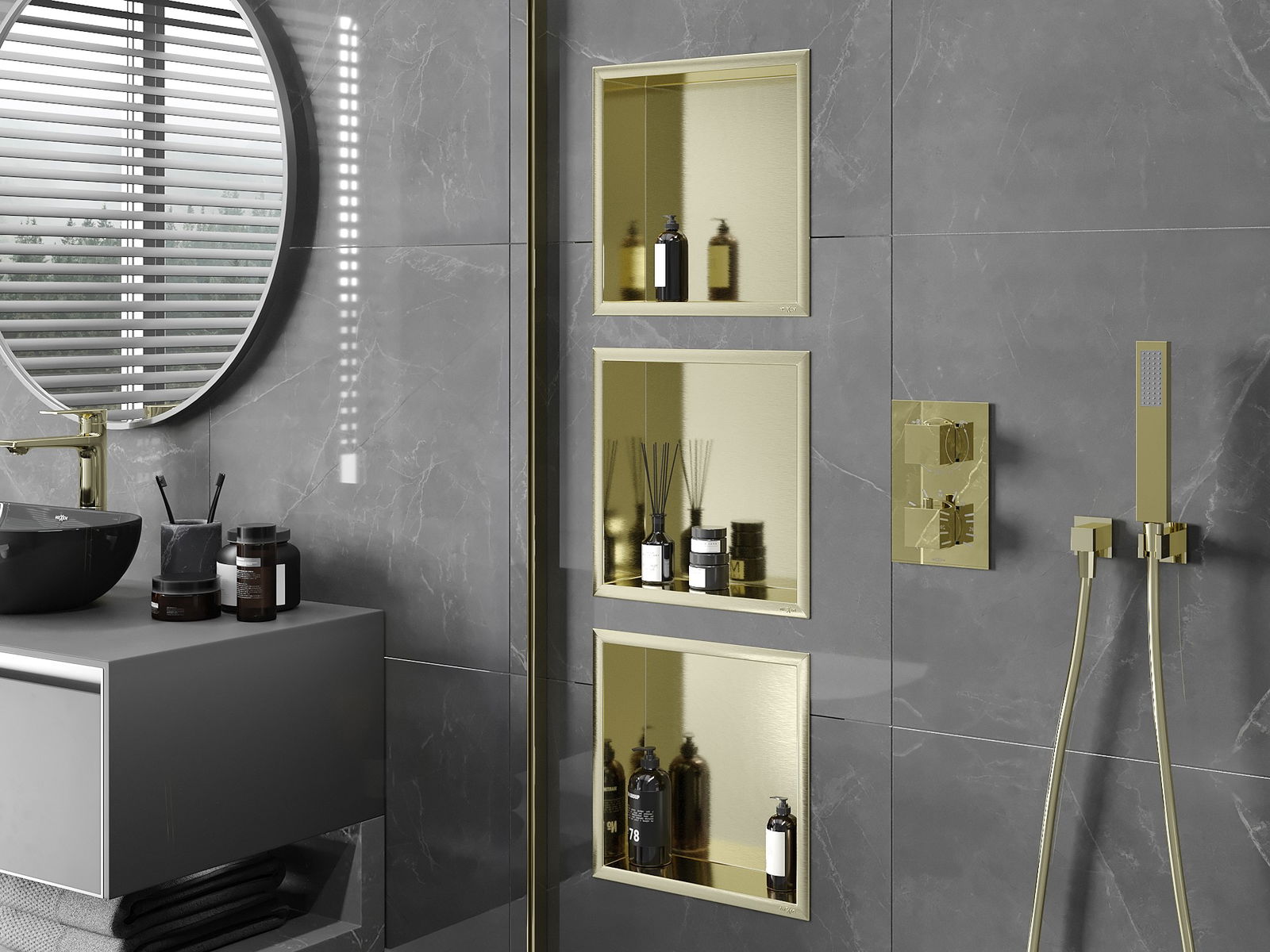 Mexen X-Wall-R nástenná polica s okrajom 30 x 30 cm, zlatá kartáčovaná - 1950303010
