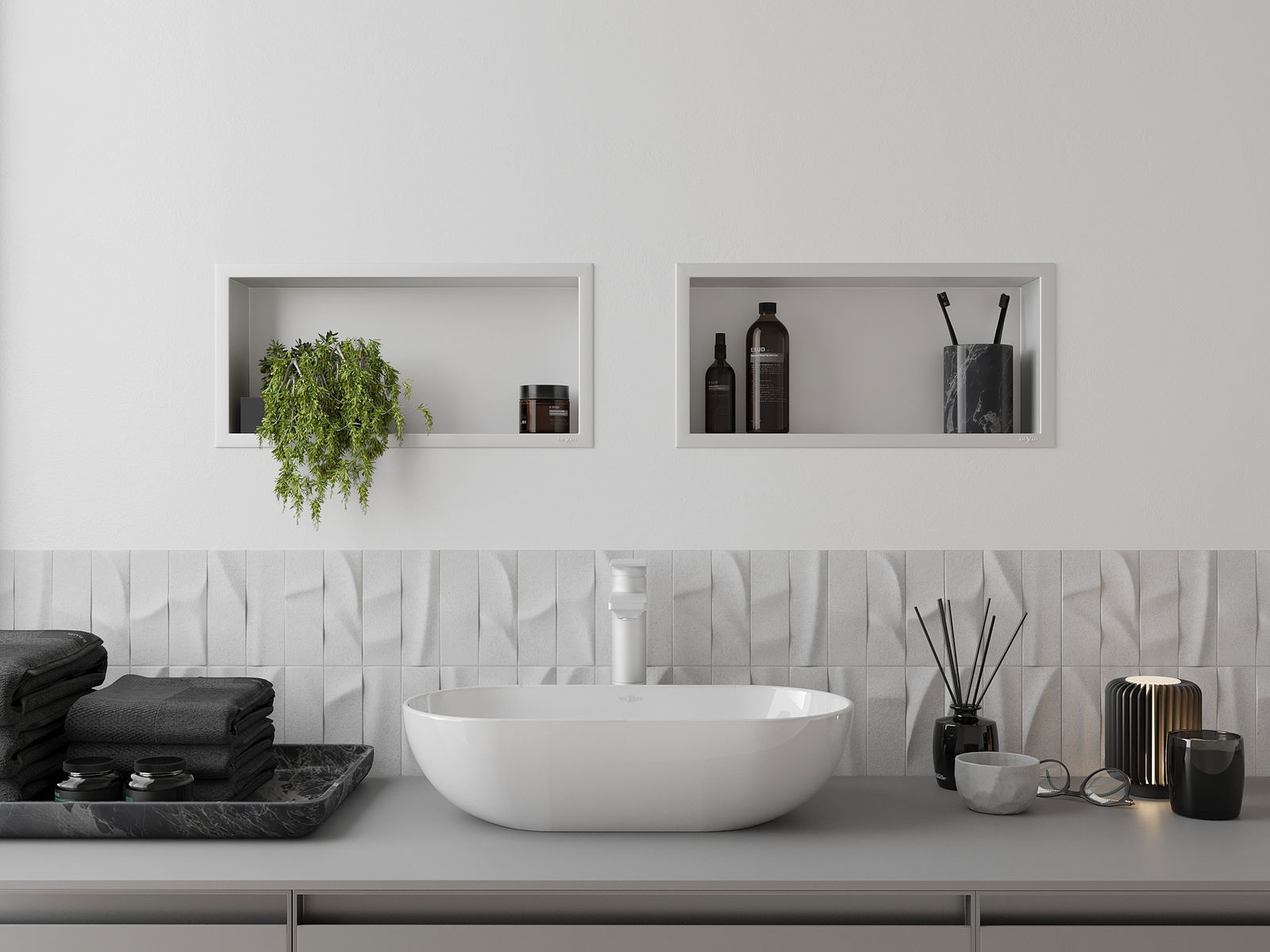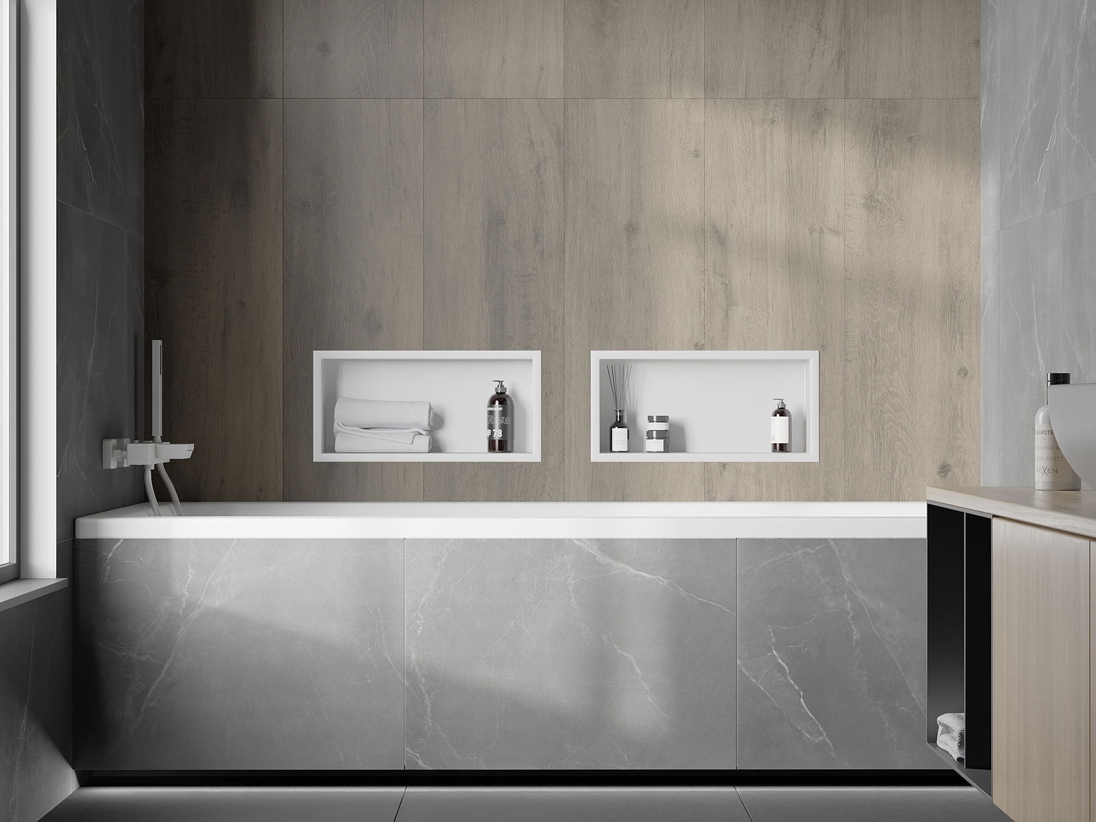 Možnosť inštalácie do steny alebo v špeciálne pripravenej budove. Je to mimoriadne moderné a funkčné riešenie, ktoré vám umožňuje ušetriť priestor a prispôsobiť produktu s estetikou interiéru a vytvoriť koherentné zloženie.