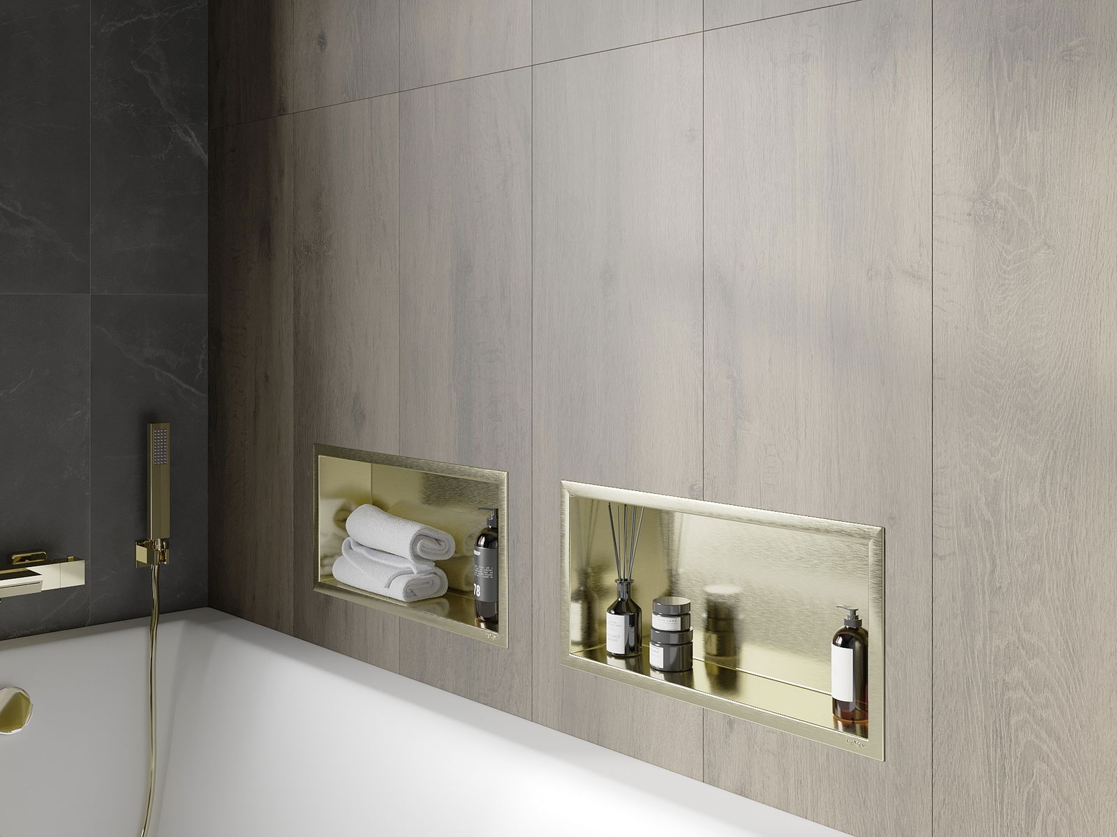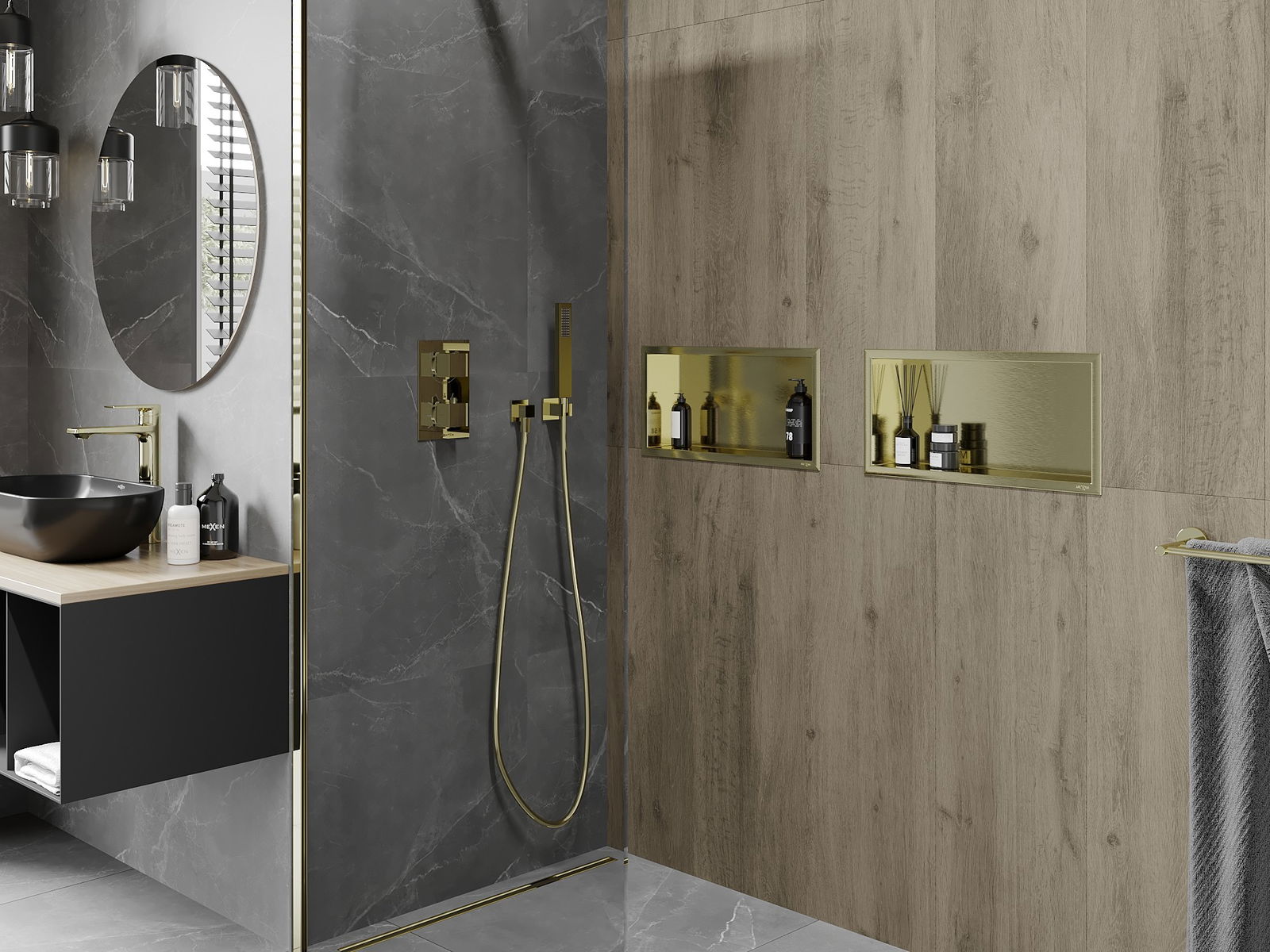Mexen X-Wall-R výklenková polica s límcom 45 x 20 cm, zlatá brúsená - 1950452010