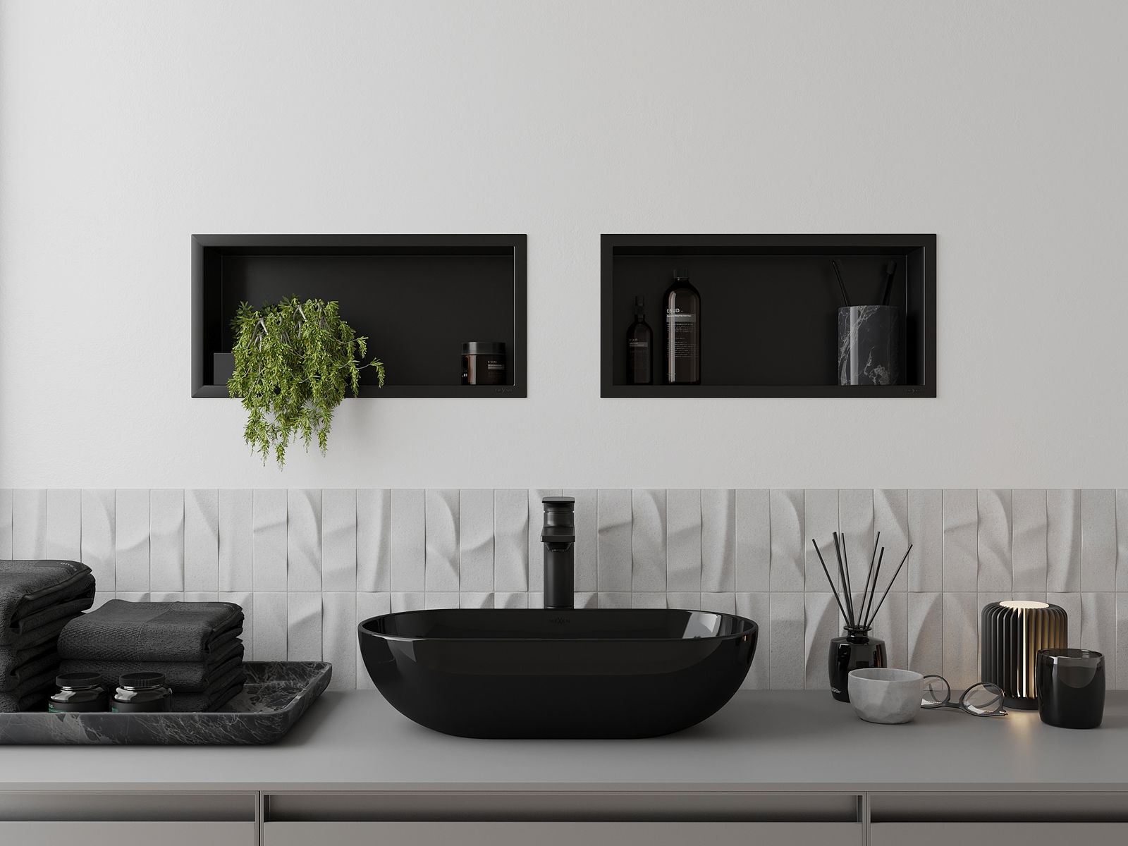 Možnosť inštalácie do steny alebo v špeciálne pripravenej budove. Je to mimoriadne moderné a funkčné riešenie, ktoré vám umožňuje ušetriť priestor a prispôsobiť produktu s estetikou interiéru a vytvoriť koherentné zloženie.