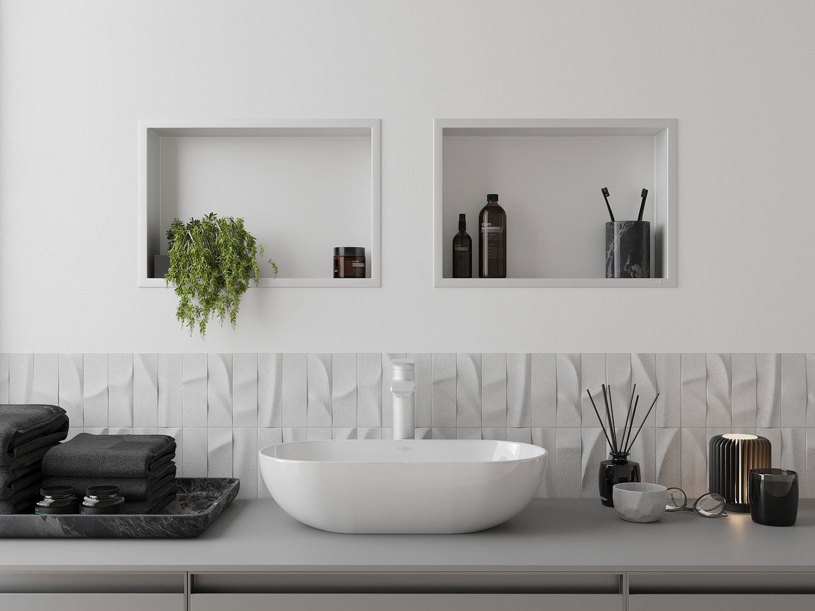 Možnosť inštalácie do steny alebo v špeciálne pripravenej budove. Je to mimoriadne moderné a funkčné riešenie, ktoré vám umožňuje ušetriť priestor a prispôsobiť produktu s estetikou interiéru a vytvoriť koherentné zloženie.