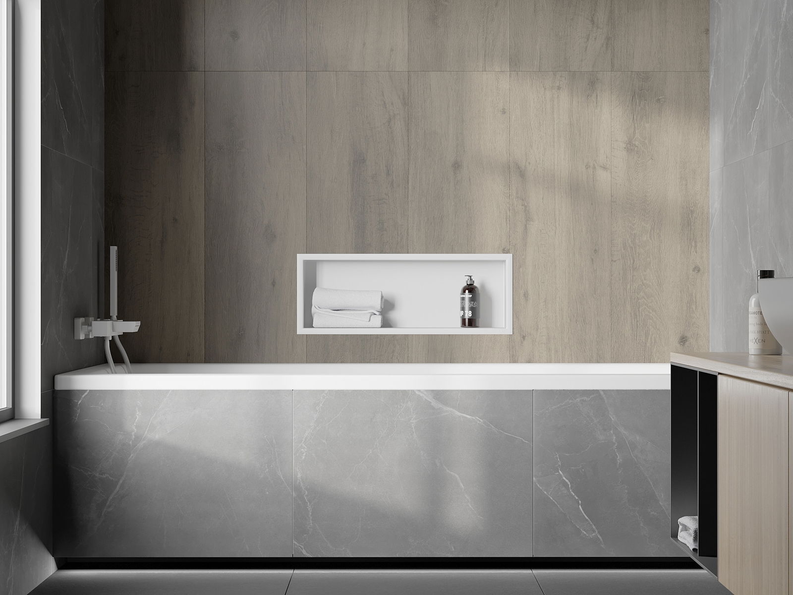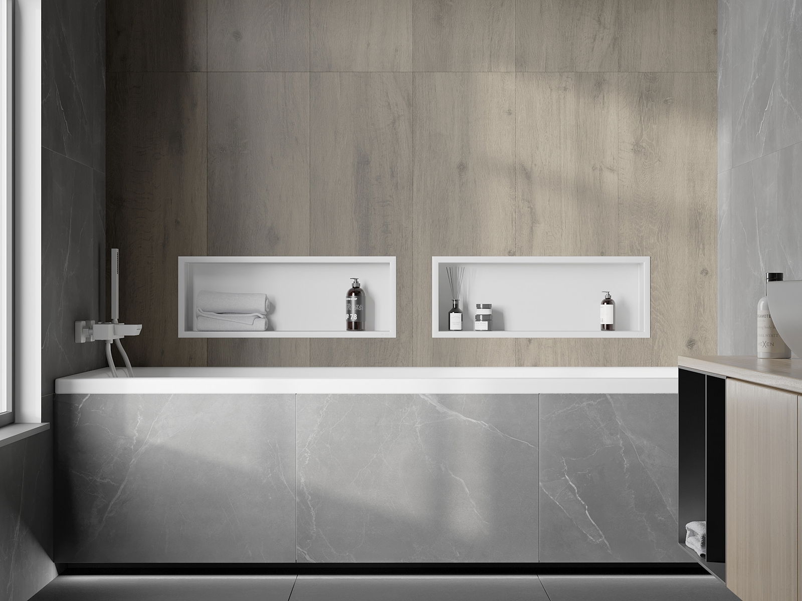 Možnosť inštalácie do steny alebo v špeciálne pripravenej budove. Je to mimoriadne moderné a funkčné riešenie, ktoré vám umožňuje ušetriť priestor a prispôsobiť produktu s estetikou interiéru a vytvoriť koherentné zloženie.