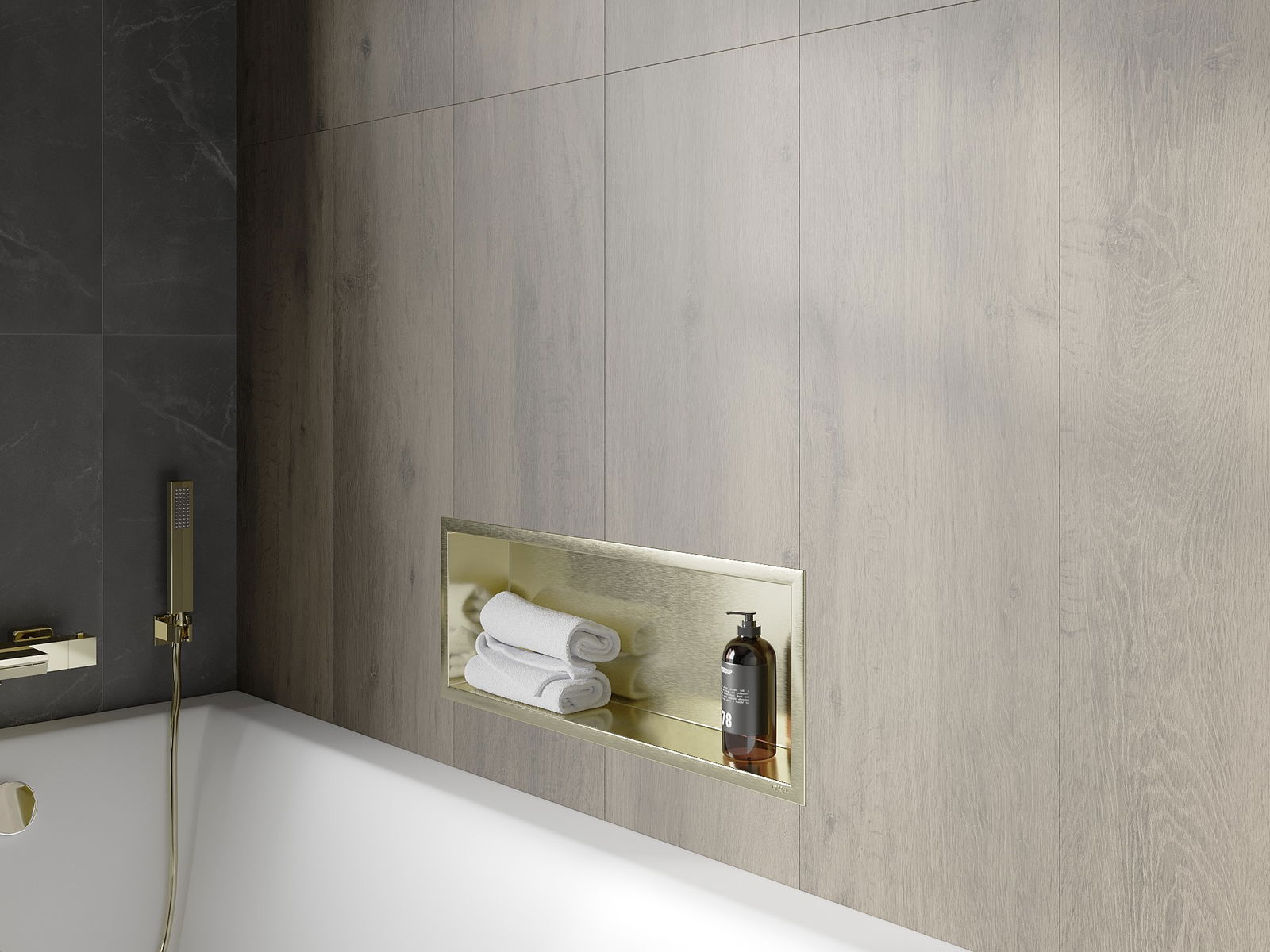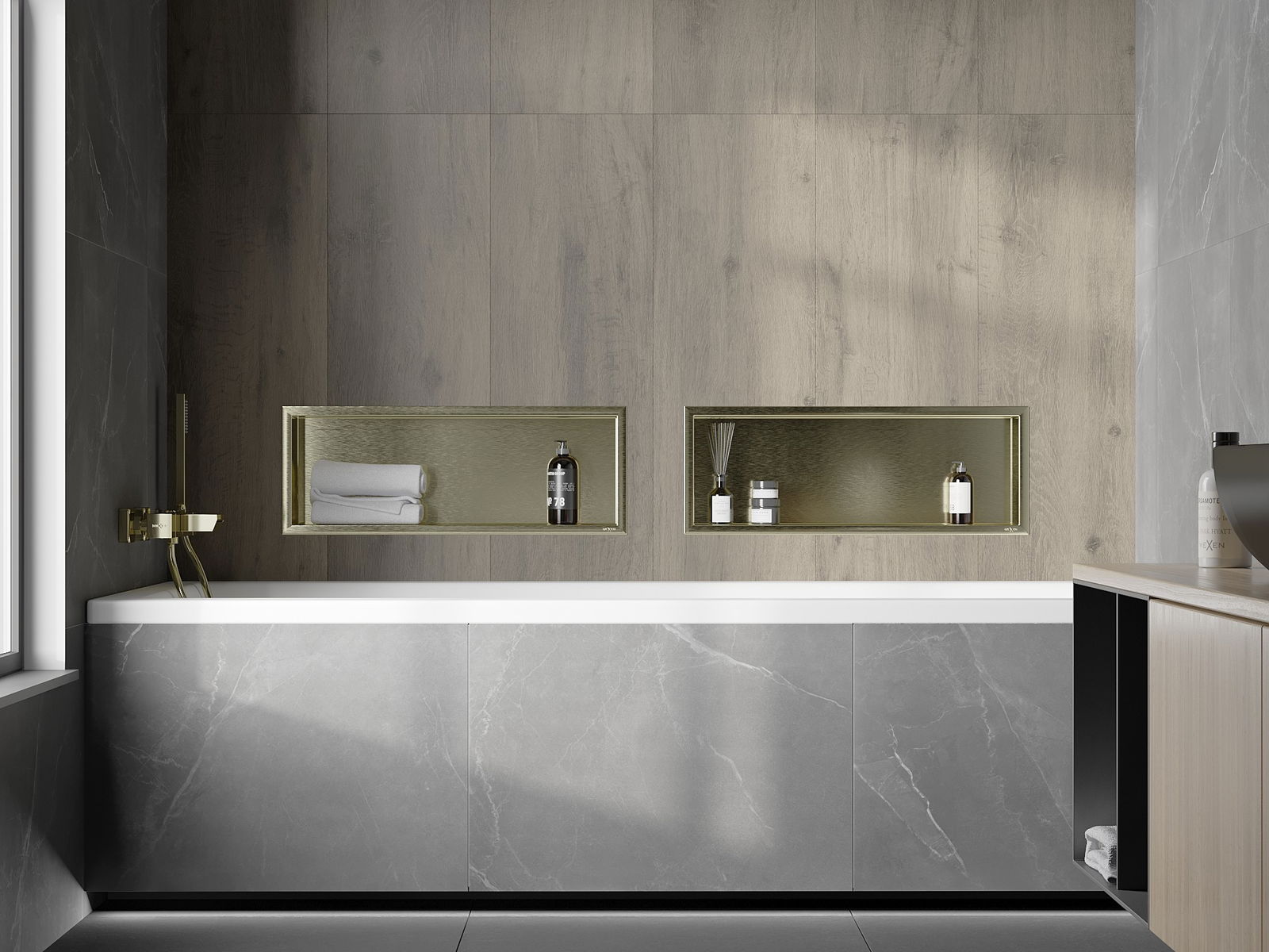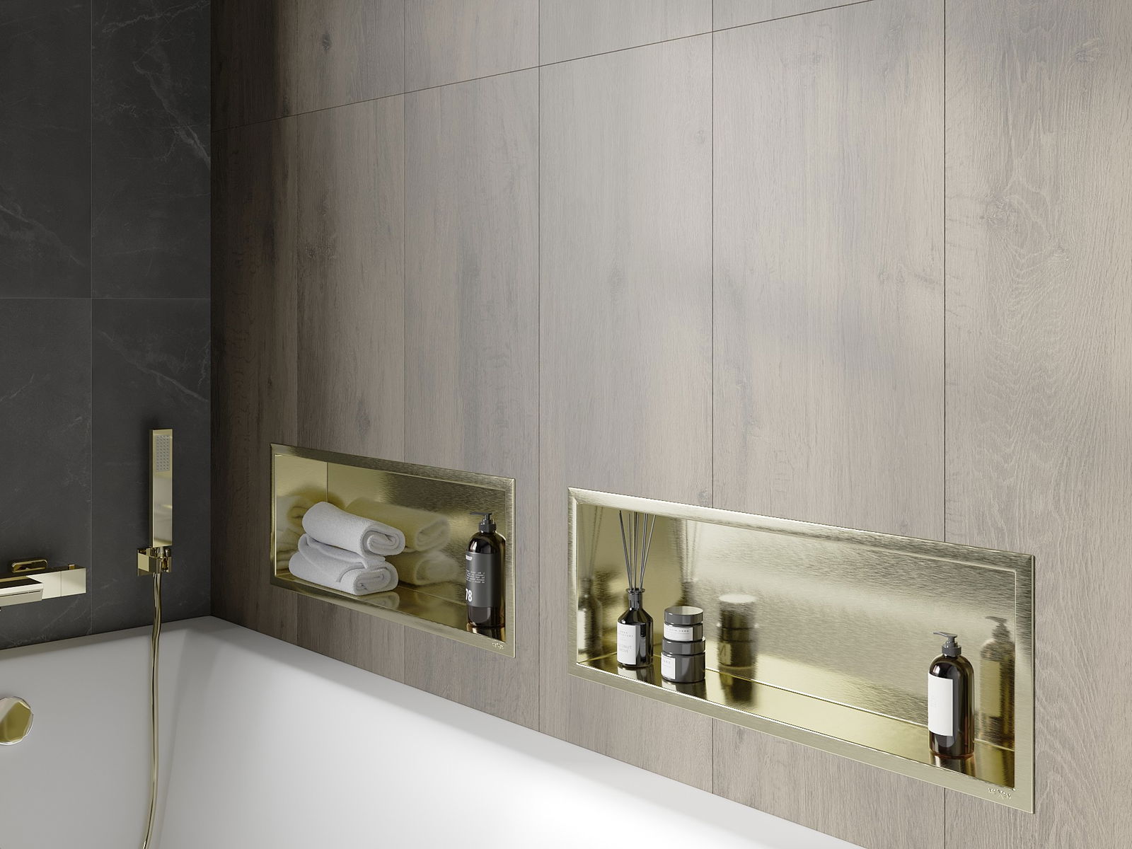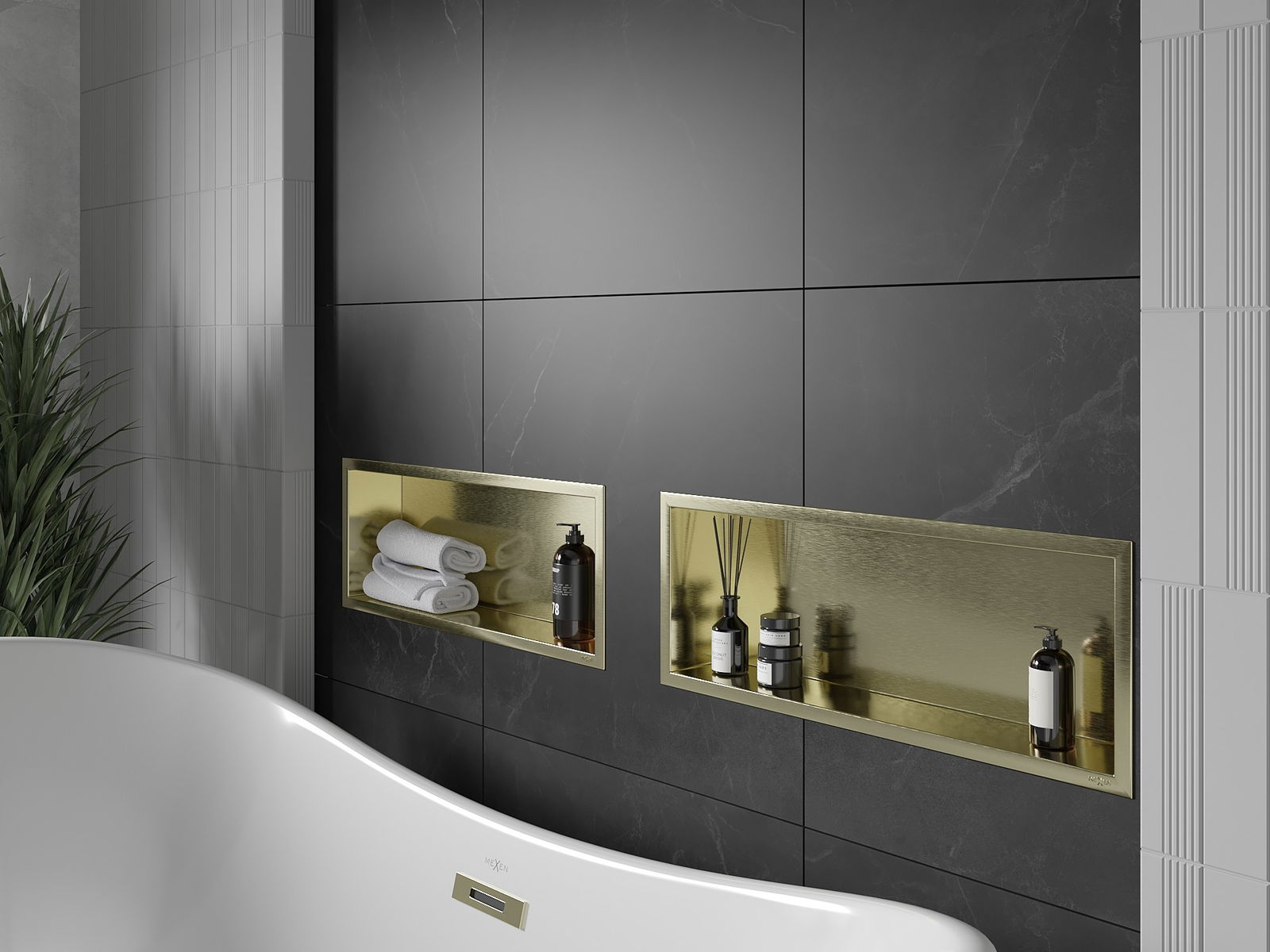 Mexen X-Wall-R výklenková polica s prírubou 60 x 20 cm, zlatá kartáčovaná - 1950602010