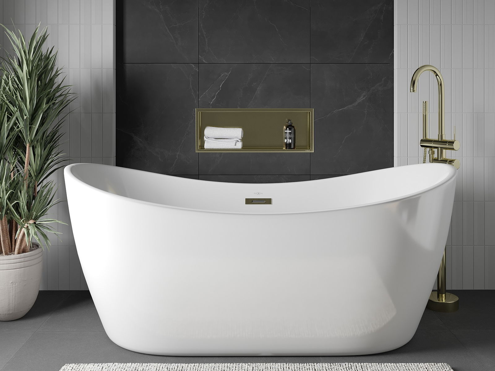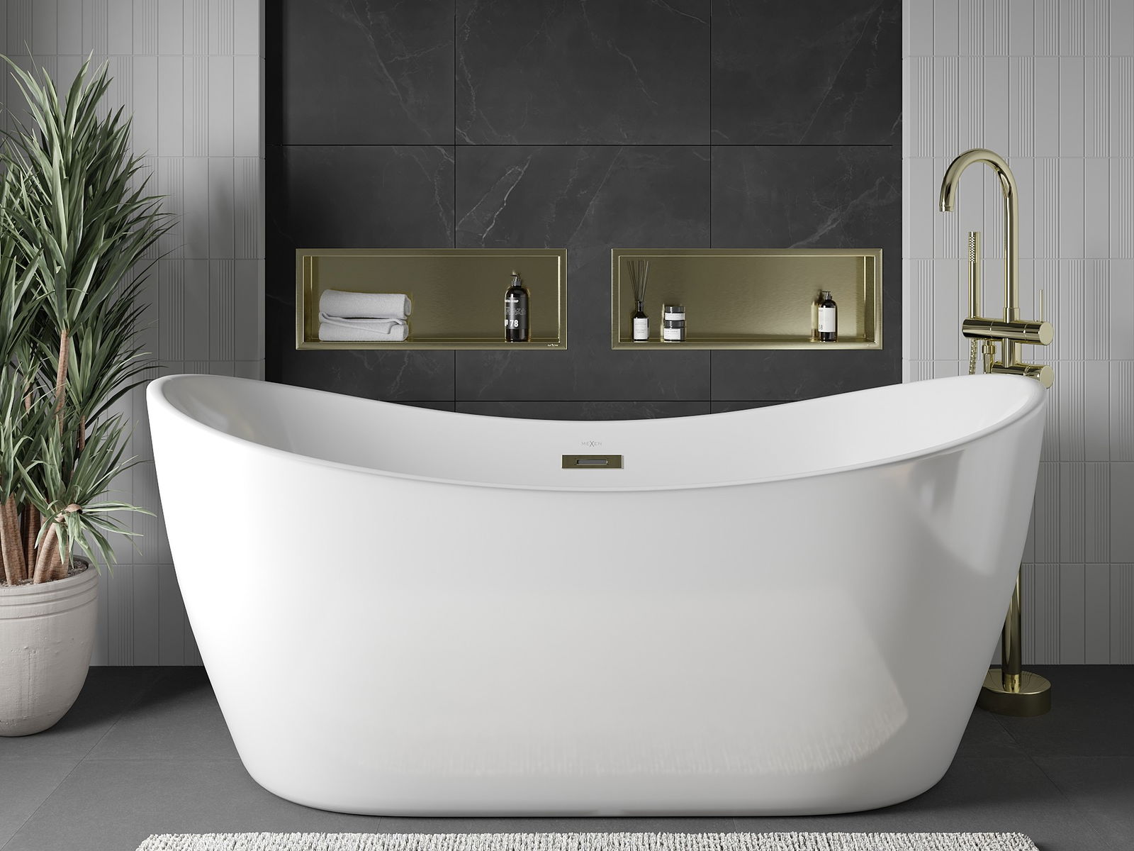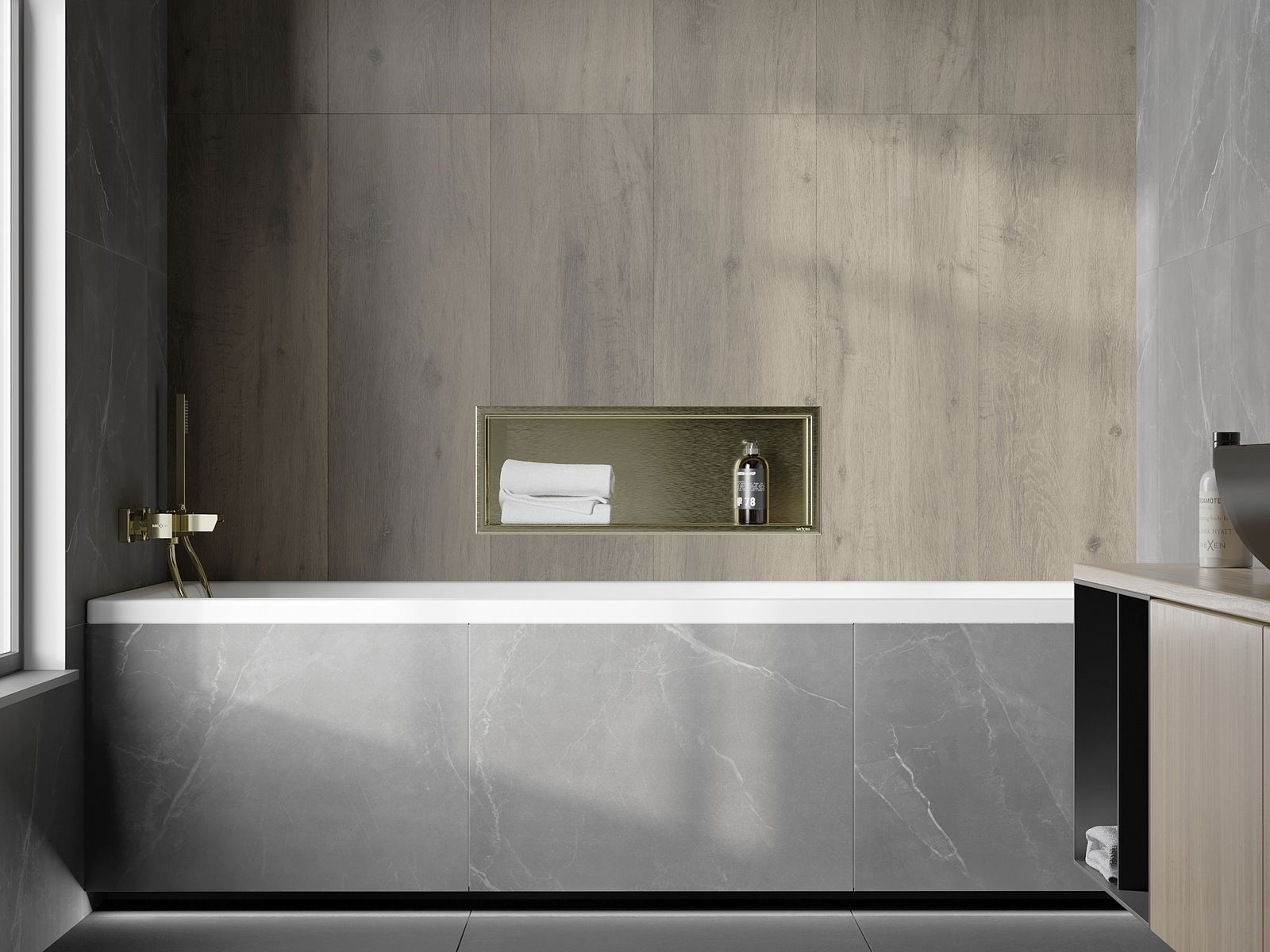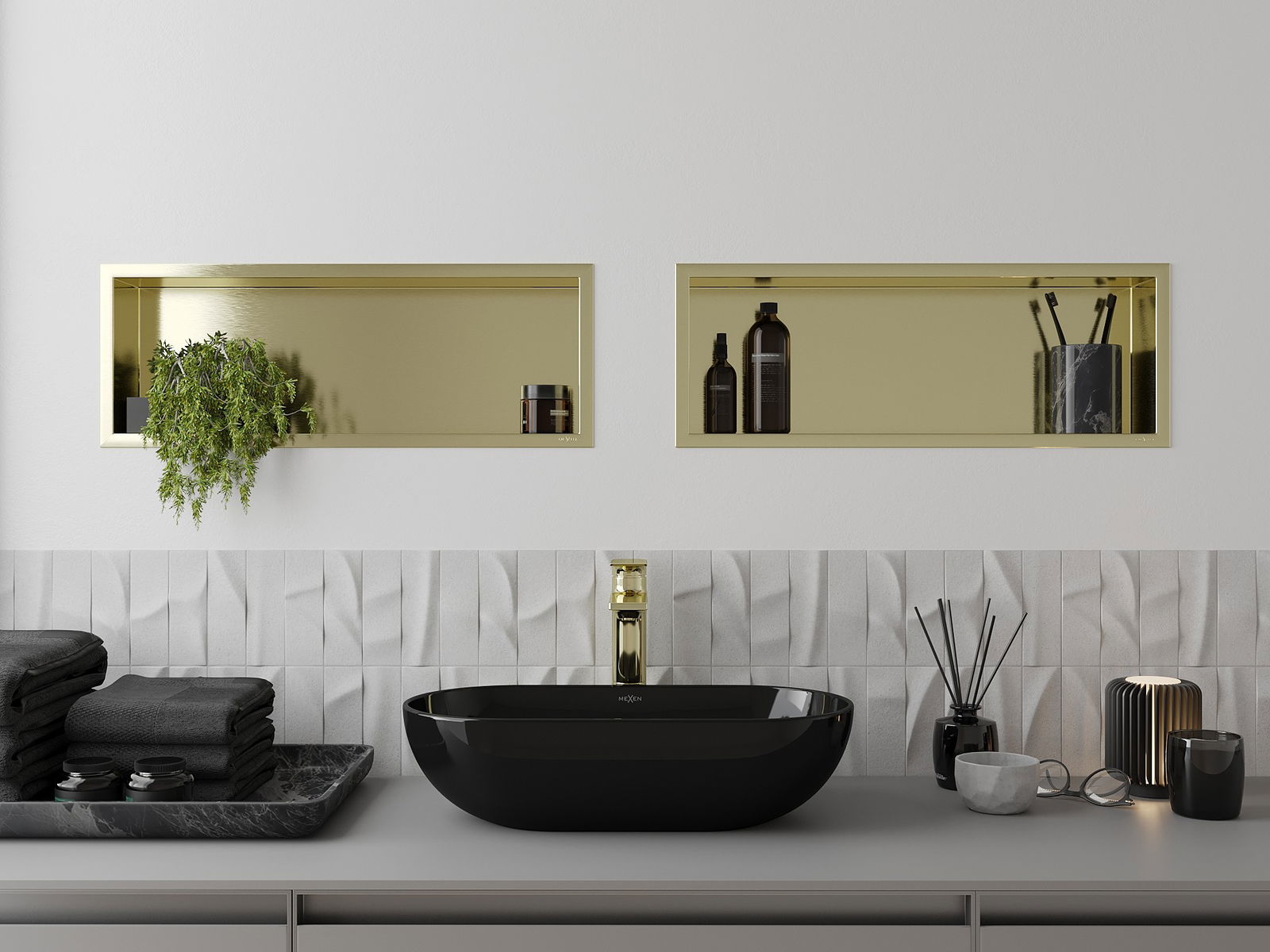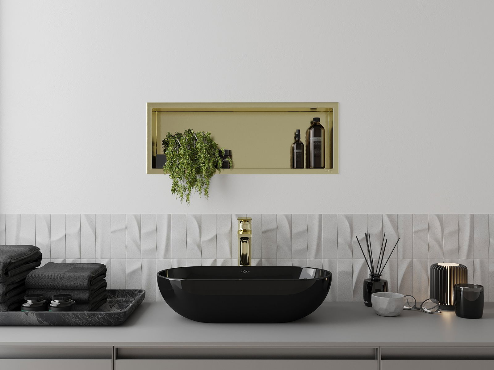 Mexen X-Wall-R výklenková polica s prírubou 60 x 20 cm, zlatá kartáčovaná - 1950602010