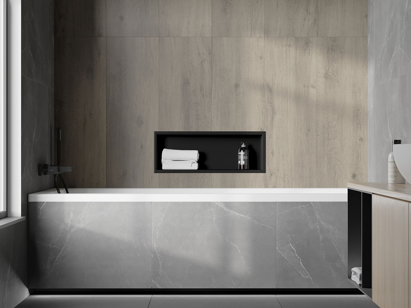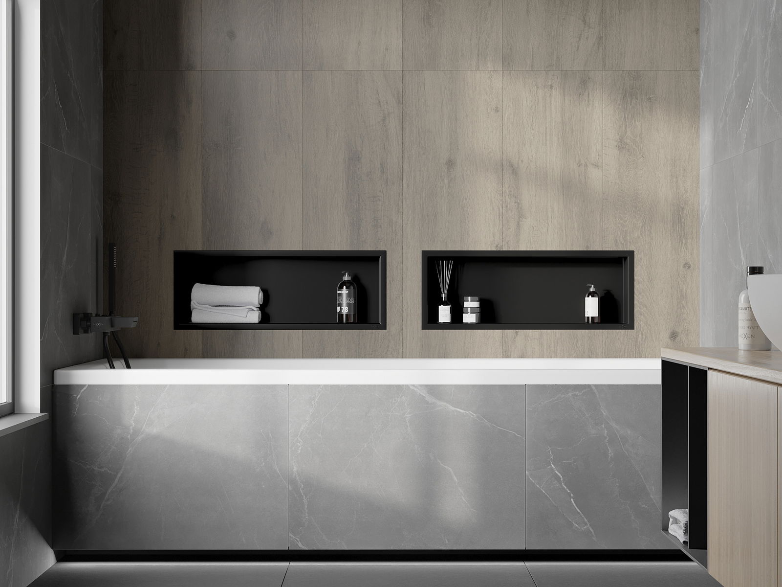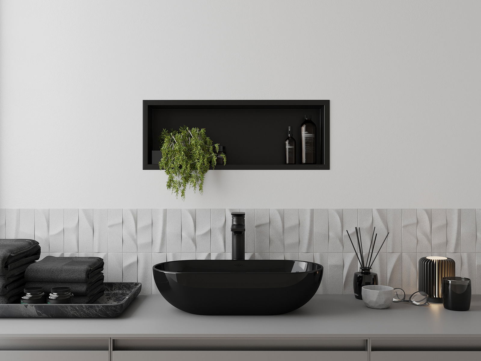 Možnosť inštalácie do steny alebo v špeciálne pripravenej budove. Je to mimoriadne moderné a funkčné riešenie, ktoré vám umožňuje ušetriť priestor a prispôsobiť produktu s estetikou interiéru a vytvoriť koherentné zloženie.