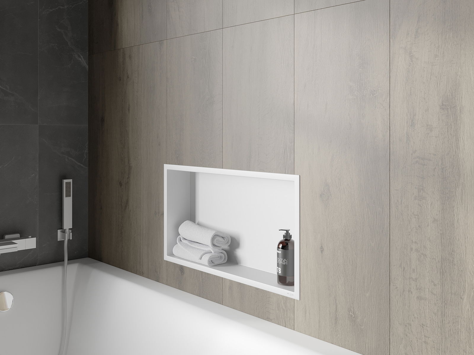 Možnosť inštalácie do steny alebo v špeciálne pripravenej budove. Je to mimoriadne moderné a funkčné riešenie, ktoré vám umožňuje ušetriť priestor a prispôsobiť produktu s estetikou interiéru a vytvoriť koherentné zloženie.