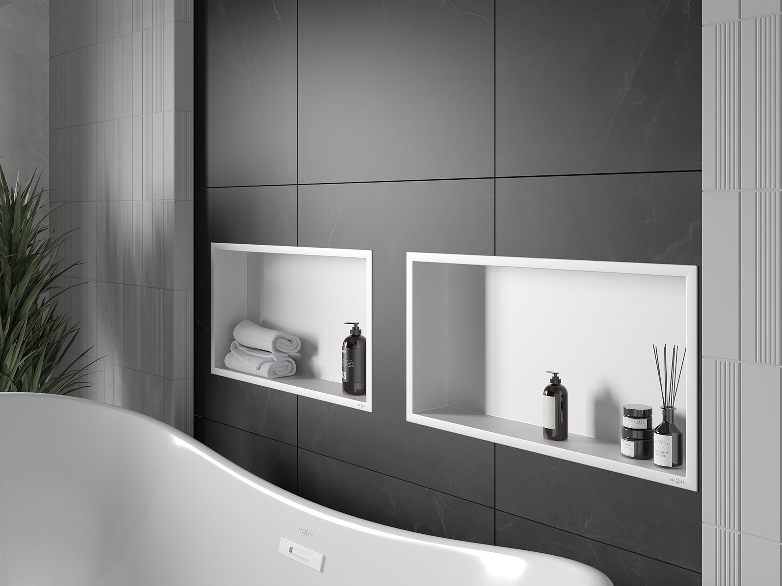 Mexen X-Wall-R výklenková polička s okrajom 60 x 30 cm, biela - 1920603010