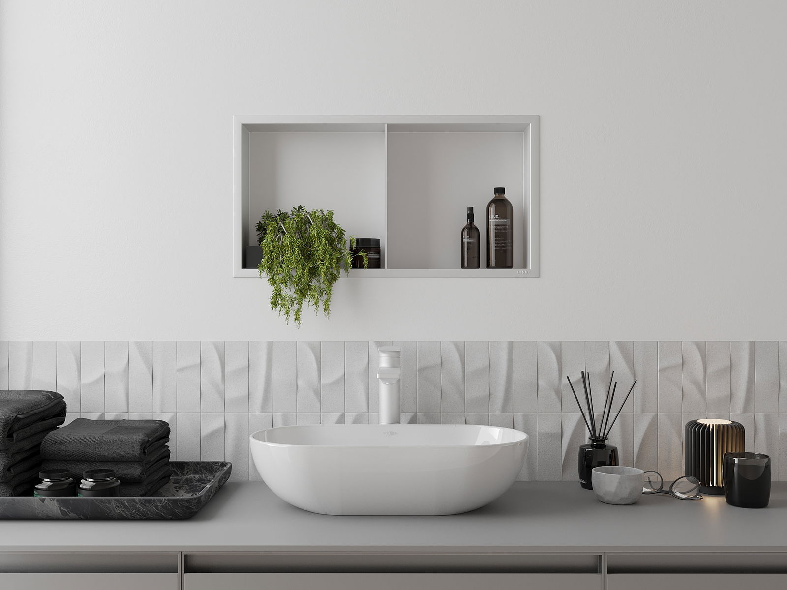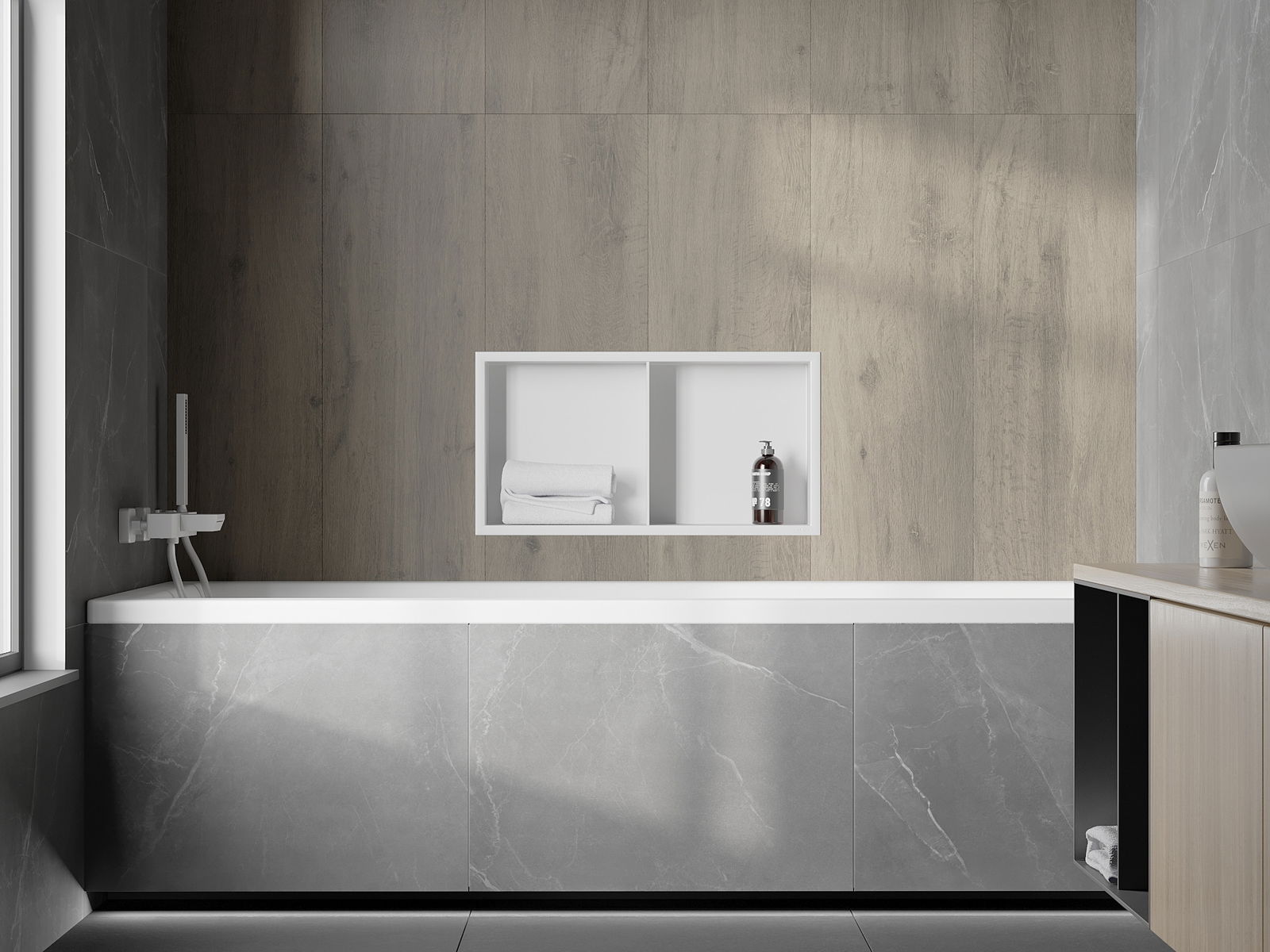 Možnosť inštalácie do steny alebo v špeciálne pripravenej budove. Je to mimoriadne moderné a funkčné riešenie, ktoré vám umožňuje ušetriť priestor a prispôsobiť produktu s estetikou interiéru a vytvoriť koherentné zloženie.