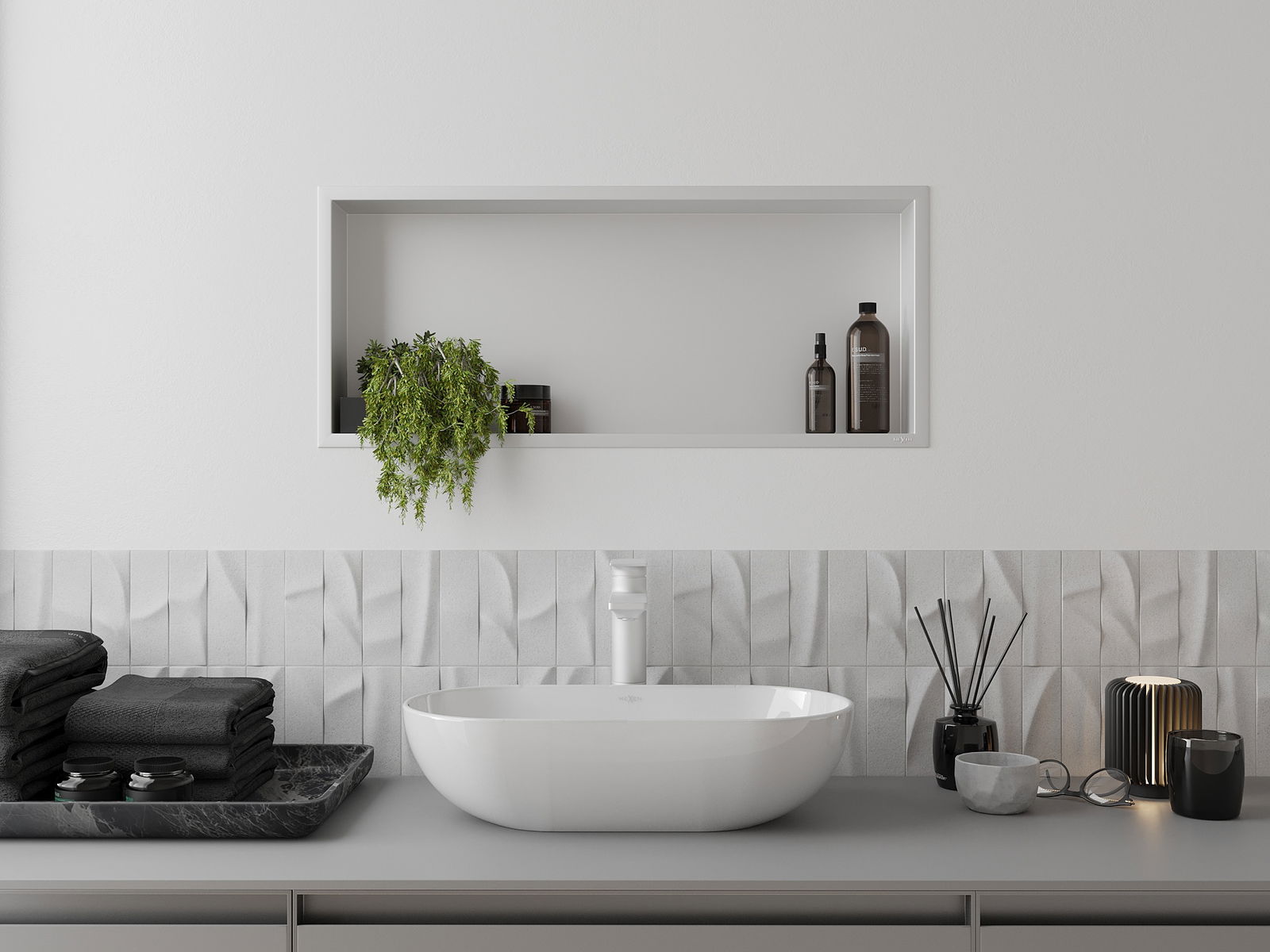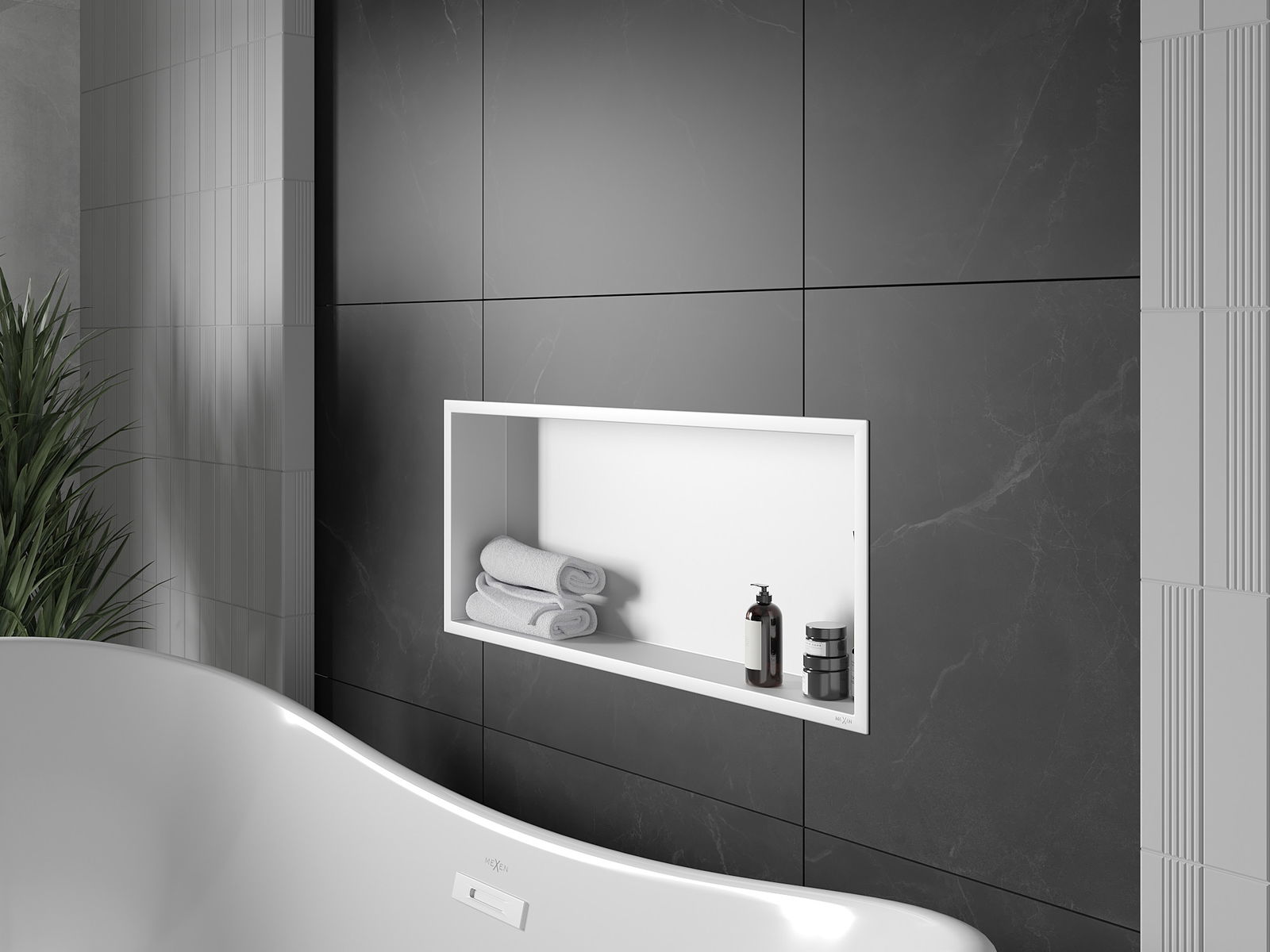 Možnosť inštalácie do steny alebo v špeciálne pripravenej budove. Je to mimoriadne moderné a funkčné riešenie, ktoré vám umožňuje ušetriť priestor a prispôsobiť produktu s estetikou interiéru a vytvoriť koherentné zloženie.