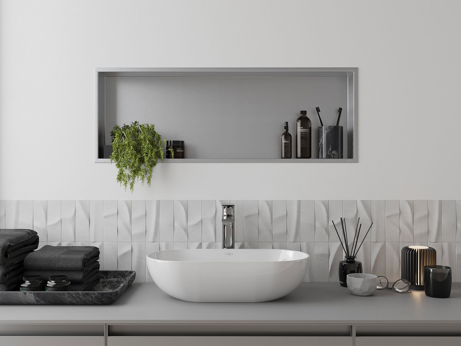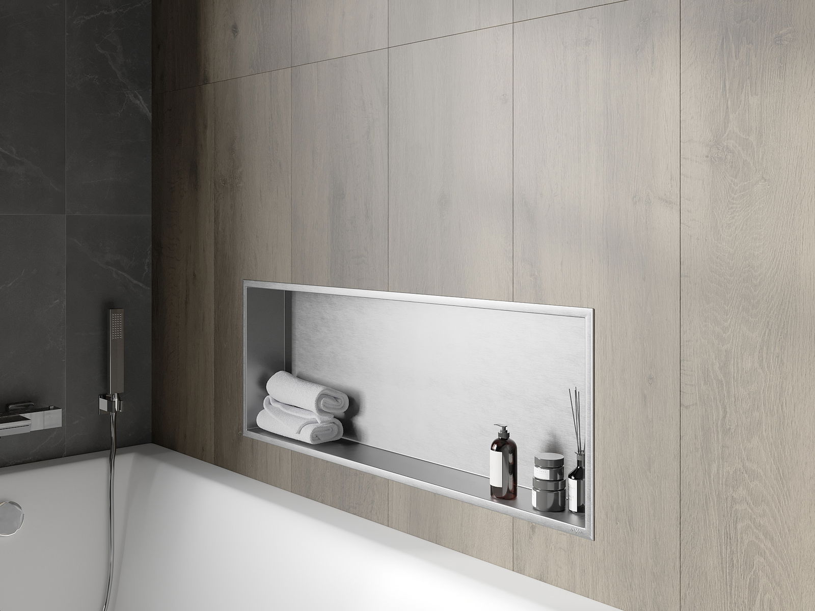 Možnosť inštalácie do steny alebo v špeciálne pripravenej budove. Je to mimoriadne moderné a funkčné riešenie, ktoré vám umožňuje ušetriť priestor a prispôsobiť produktu s estetikou interiéru a vytvoriť koherentné zloženie.