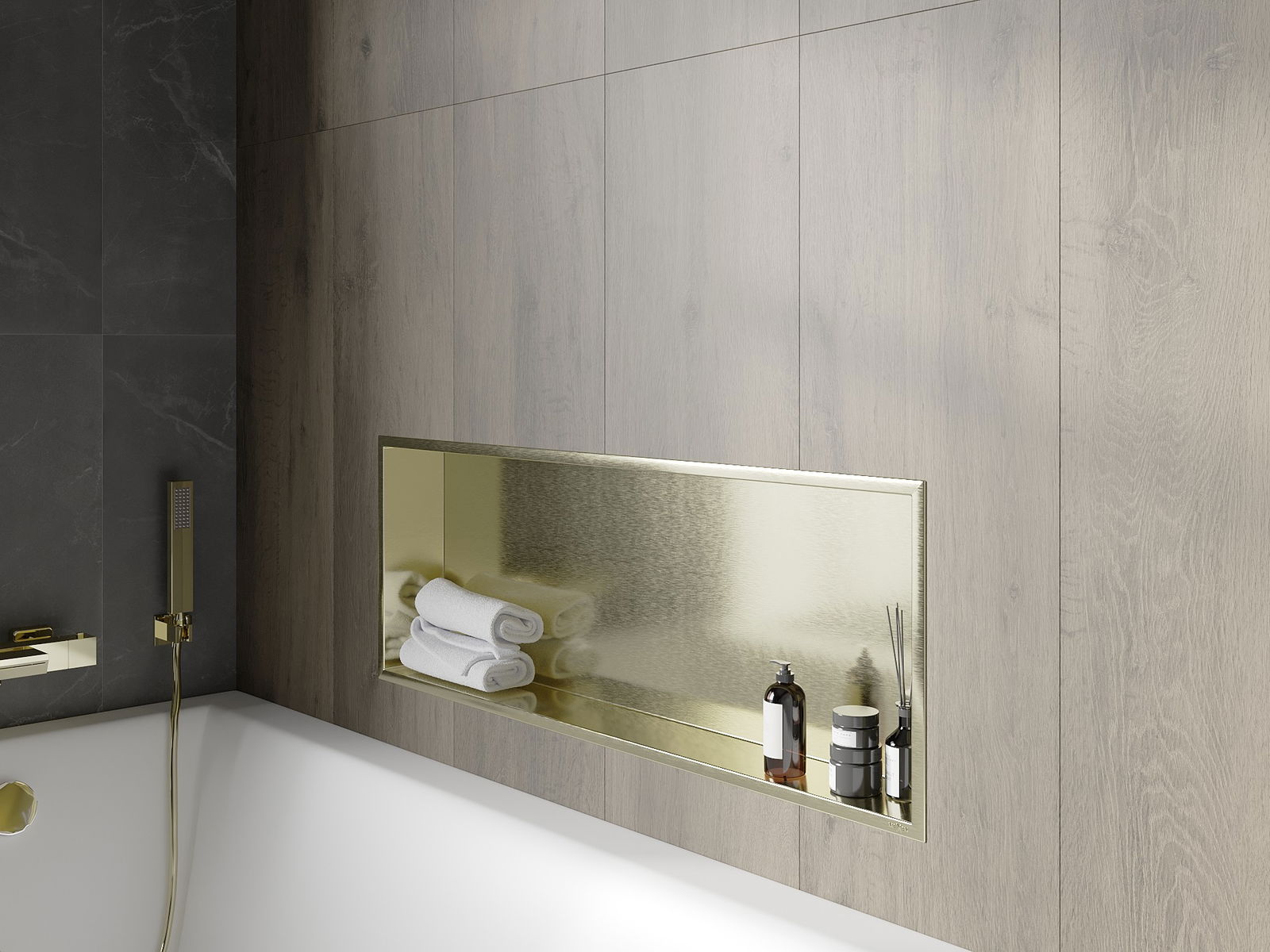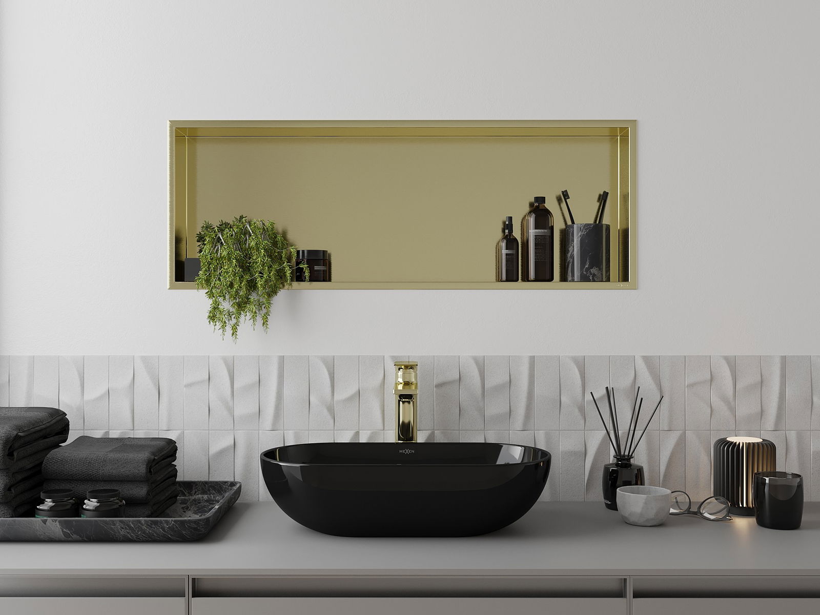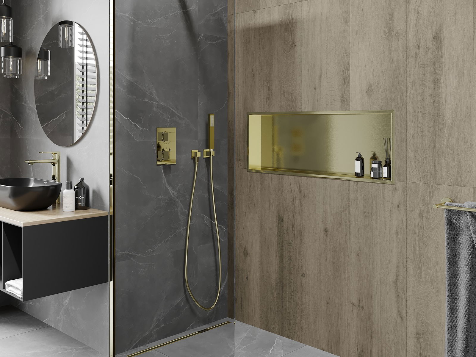 Mexen X-Wall-R výklenková polica s prírubou 90 x 30 cm, zlatá kartáčovaná - 1950903010