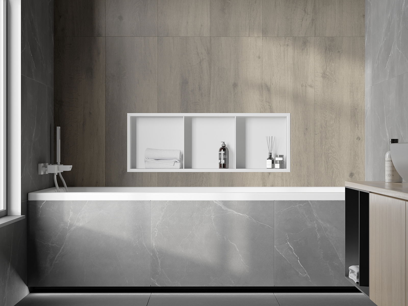 Možnosť inštalácie do steny alebo v špeciálne pripravenej budove. Je to mimoriadne moderné a funkčné riešenie, ktoré vám umožňuje ušetriť priestor a prispôsobiť produktu s estetikou interiéru a vytvoriť koherentné zloženie.