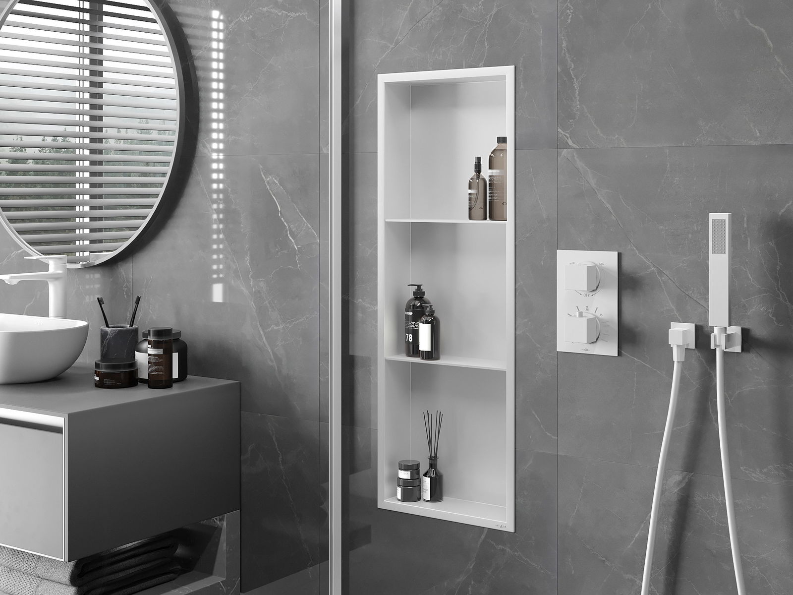Mexen X-Wall-R výklenková polička s prírubou a policou 90 x 30 cm, biela - 1920903010S