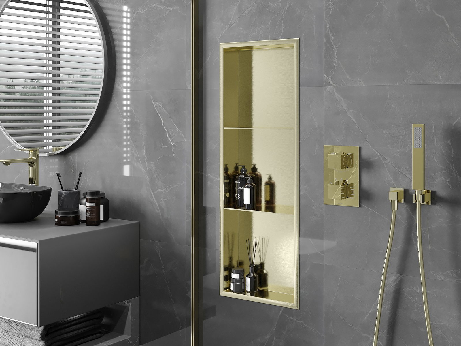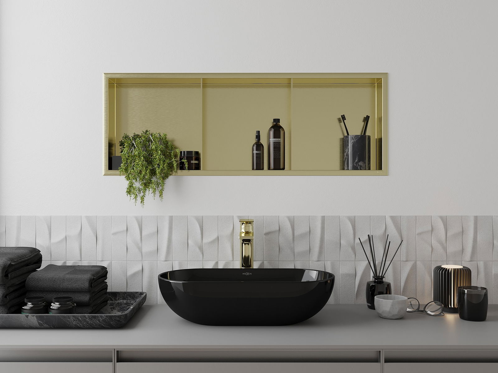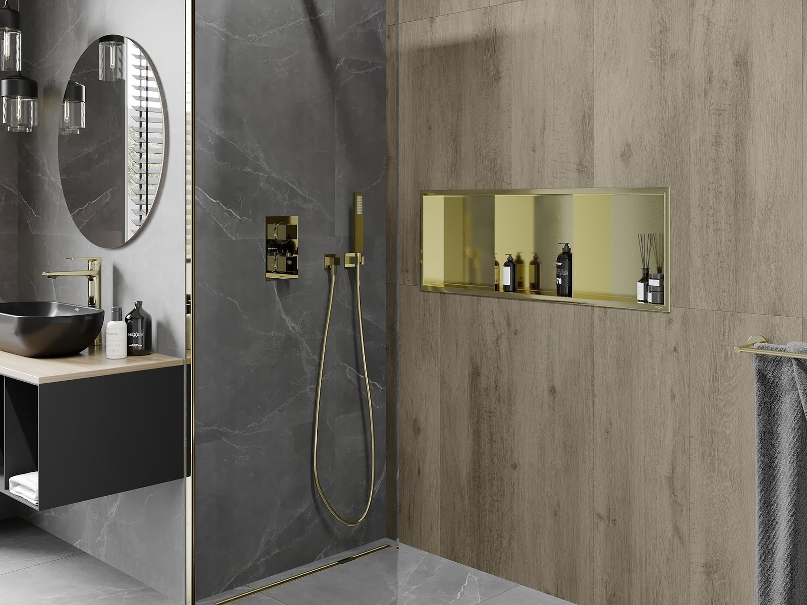 Mexen X-Wall-R výklenková polica s lemom a policou 90 x 30 cm, zlatá brúsená - 1950903010S