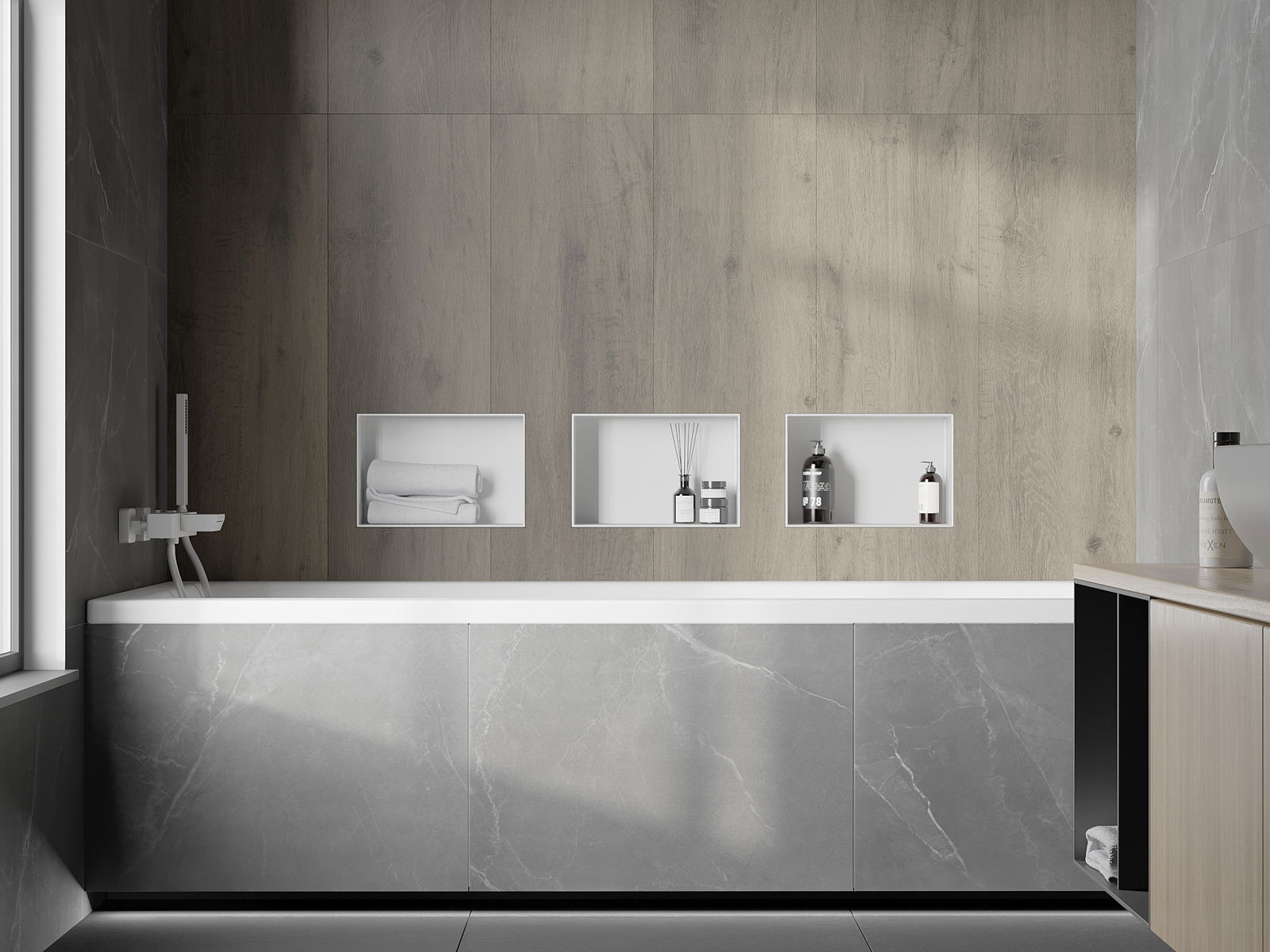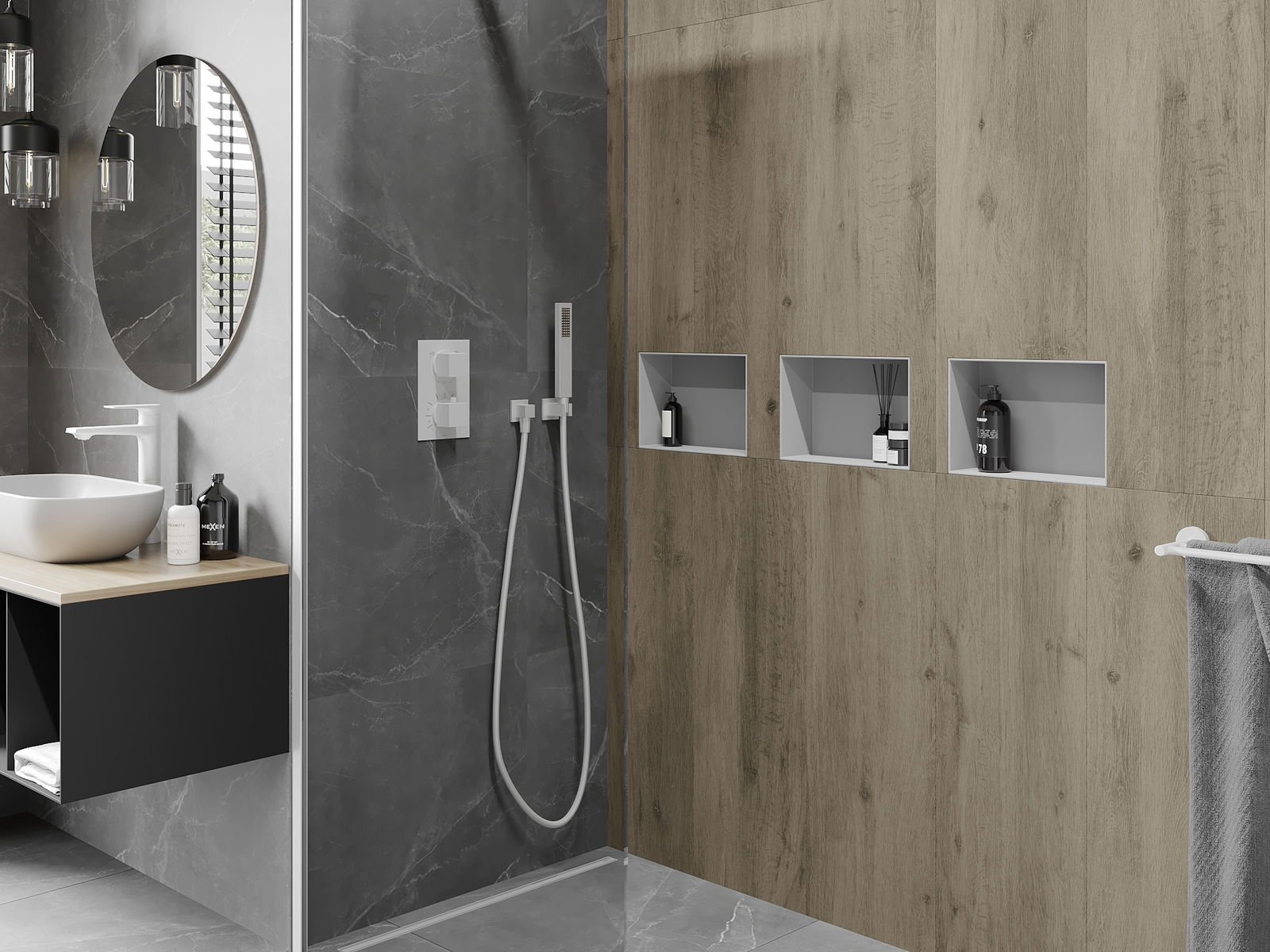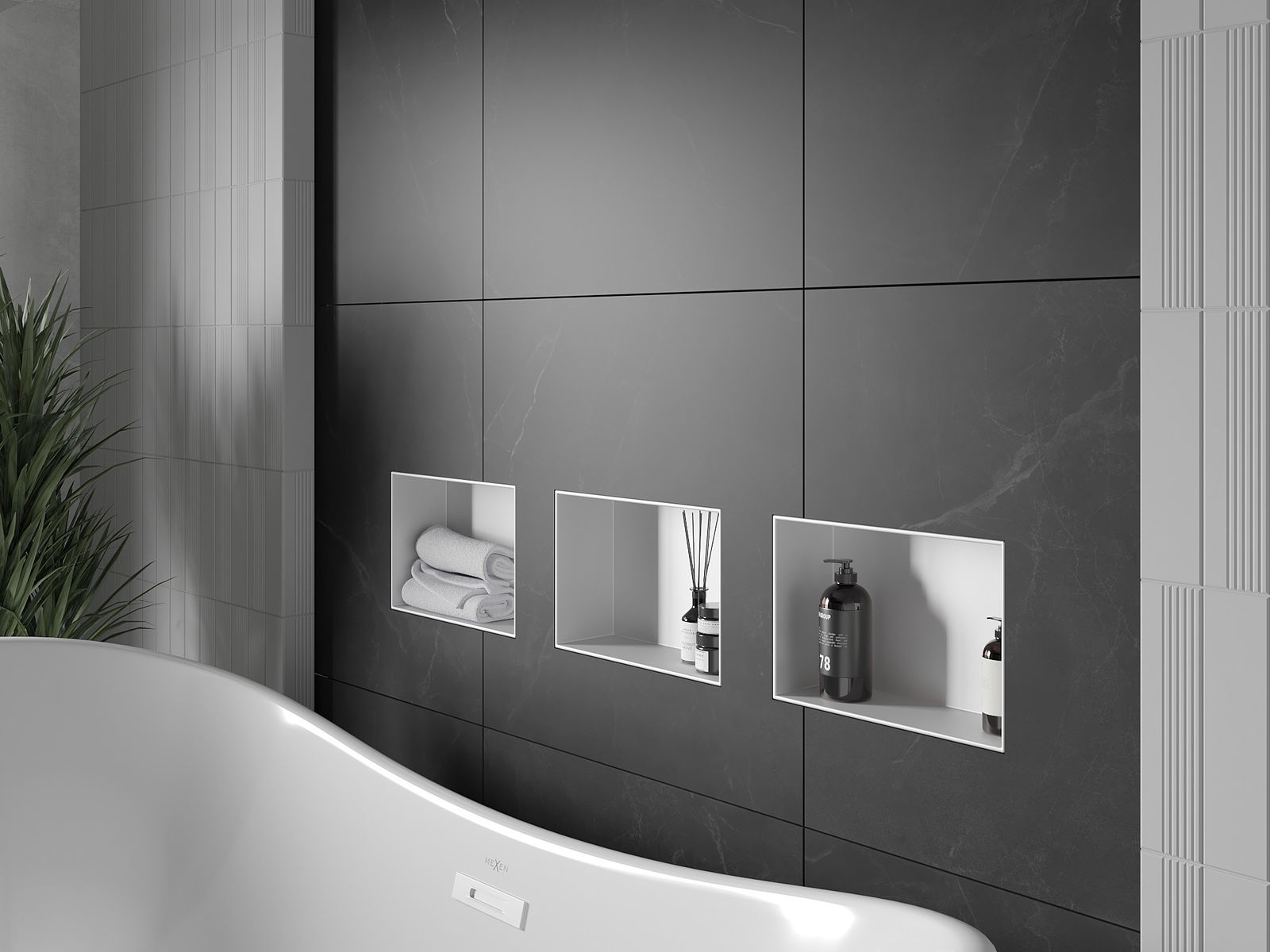 Možnosť inštalácie do steny alebo v špeciálne pripravenej budove. Je to mimoriadne moderné a funkčné riešenie, ktoré vám umožňuje ušetriť priestor a prispôsobiť produktu s estetikou interiéru a vytvoriť koherentné zloženie.