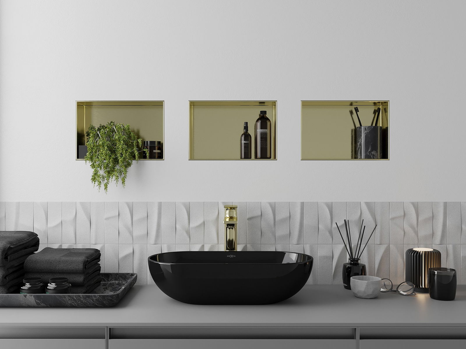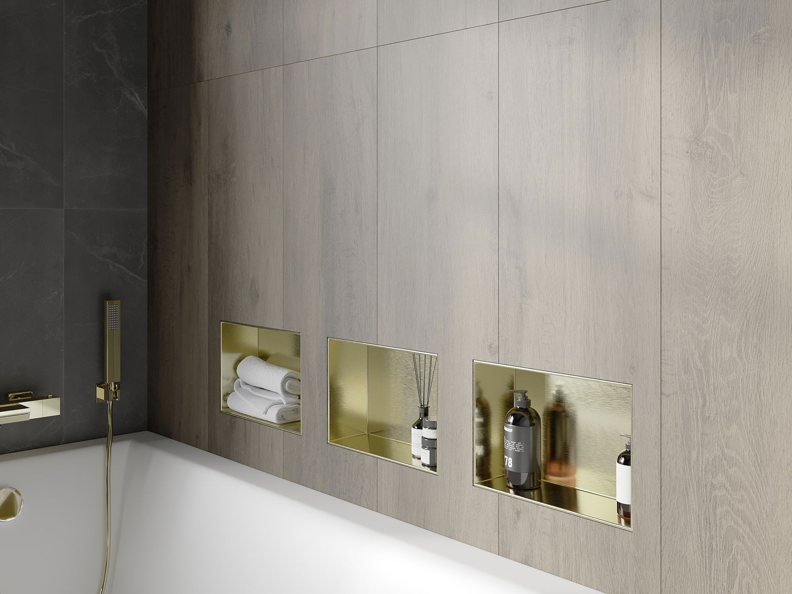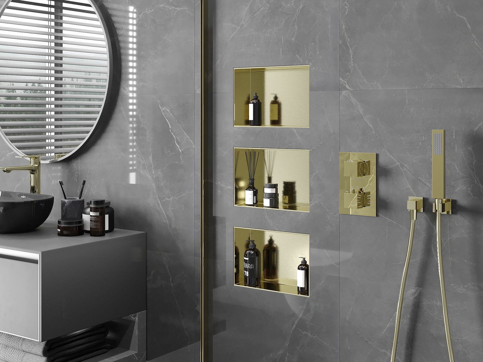 Mexen X-Wall-NR výklenková polica bez príruby 30 x 20 cm, zlatá kartáčovaná - 1951302010