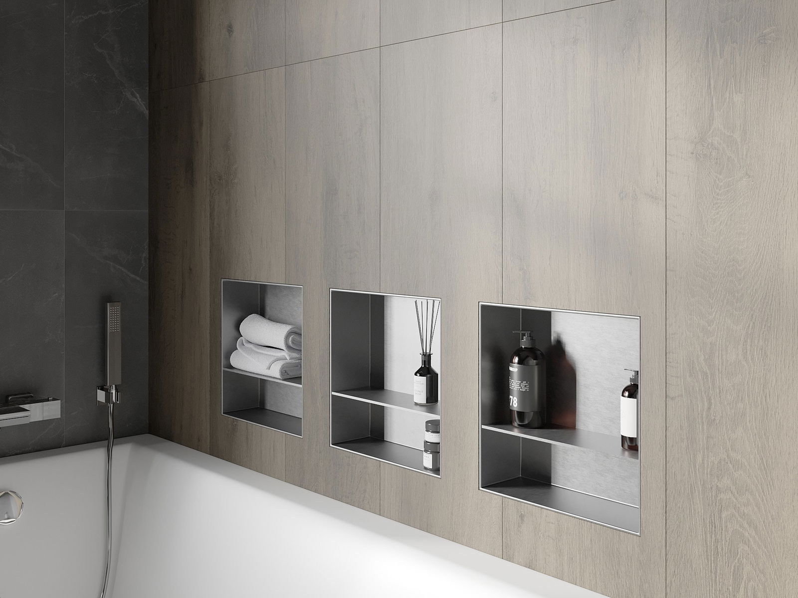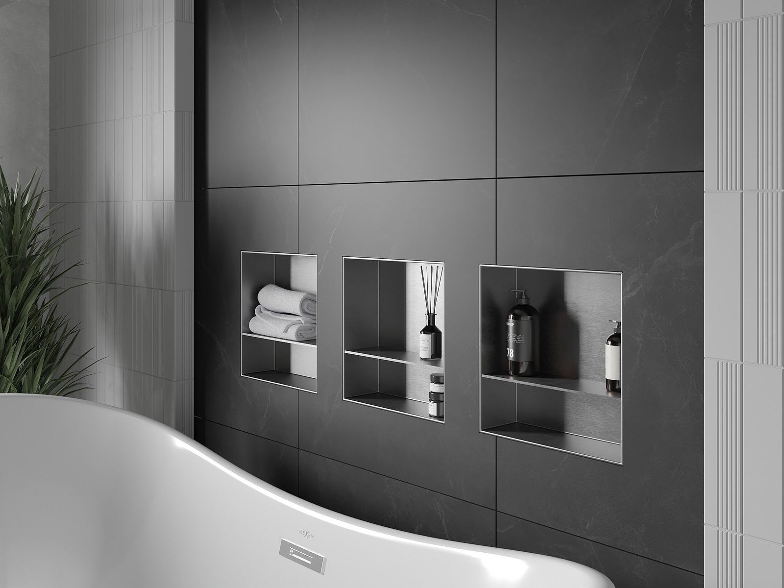 Možnosť inštalácie do steny alebo v špeciálne pripravenej budove. Je to mimoriadne moderné a funkčné riešenie, ktoré vám umožňuje ušetriť priestor a prispôsobiť produktu s estetikou interiéru a vytvoriť koherentné zloženie.
