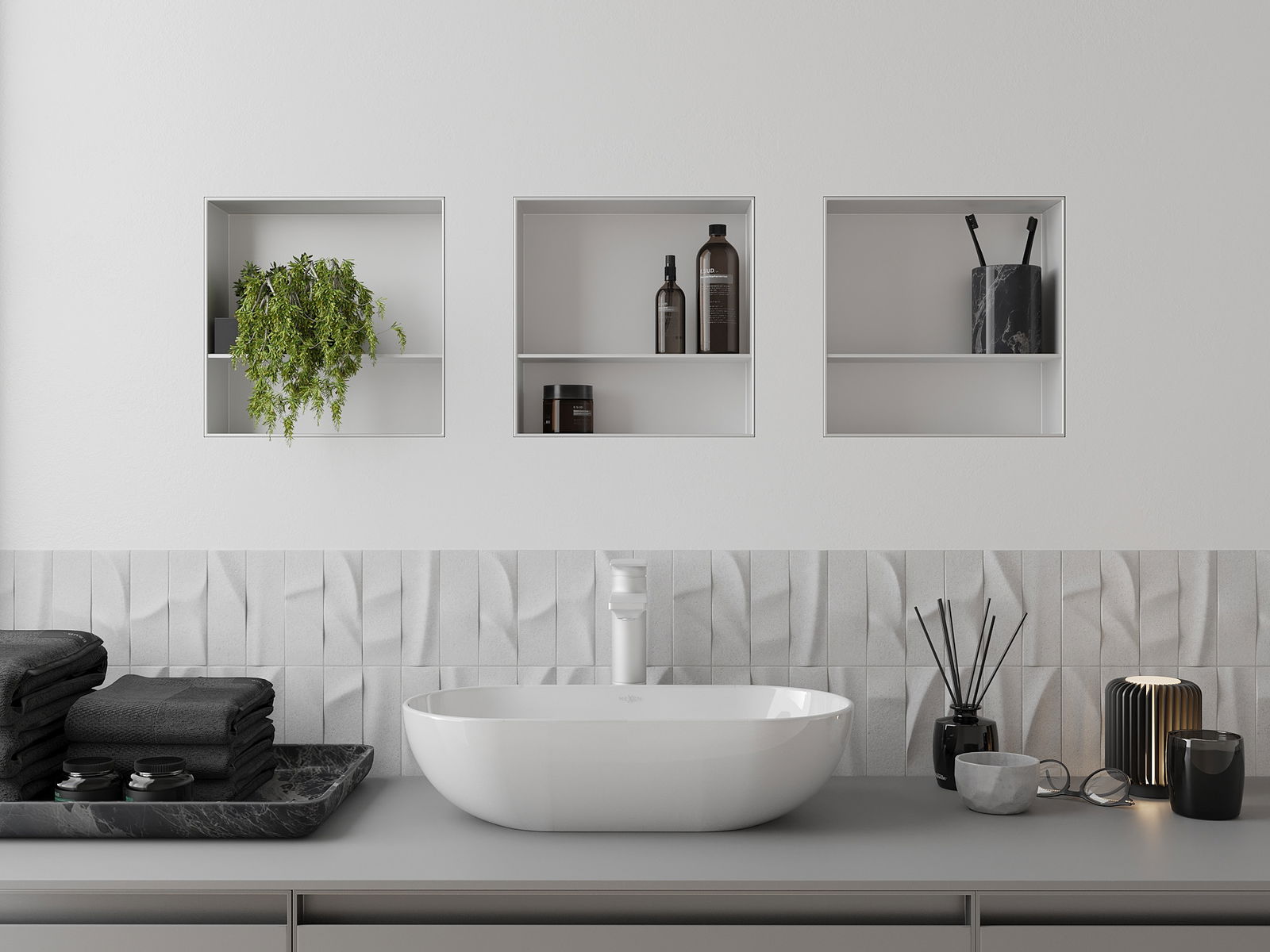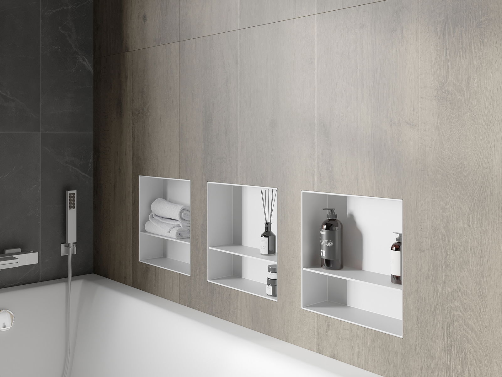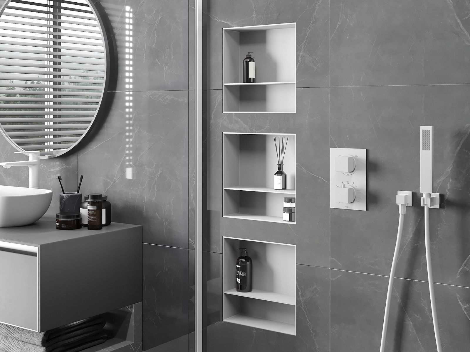 Mexen X-Wall-NR výklenková polica bez príruby s policou 30 x 30 cm, biela - 1921303010S
