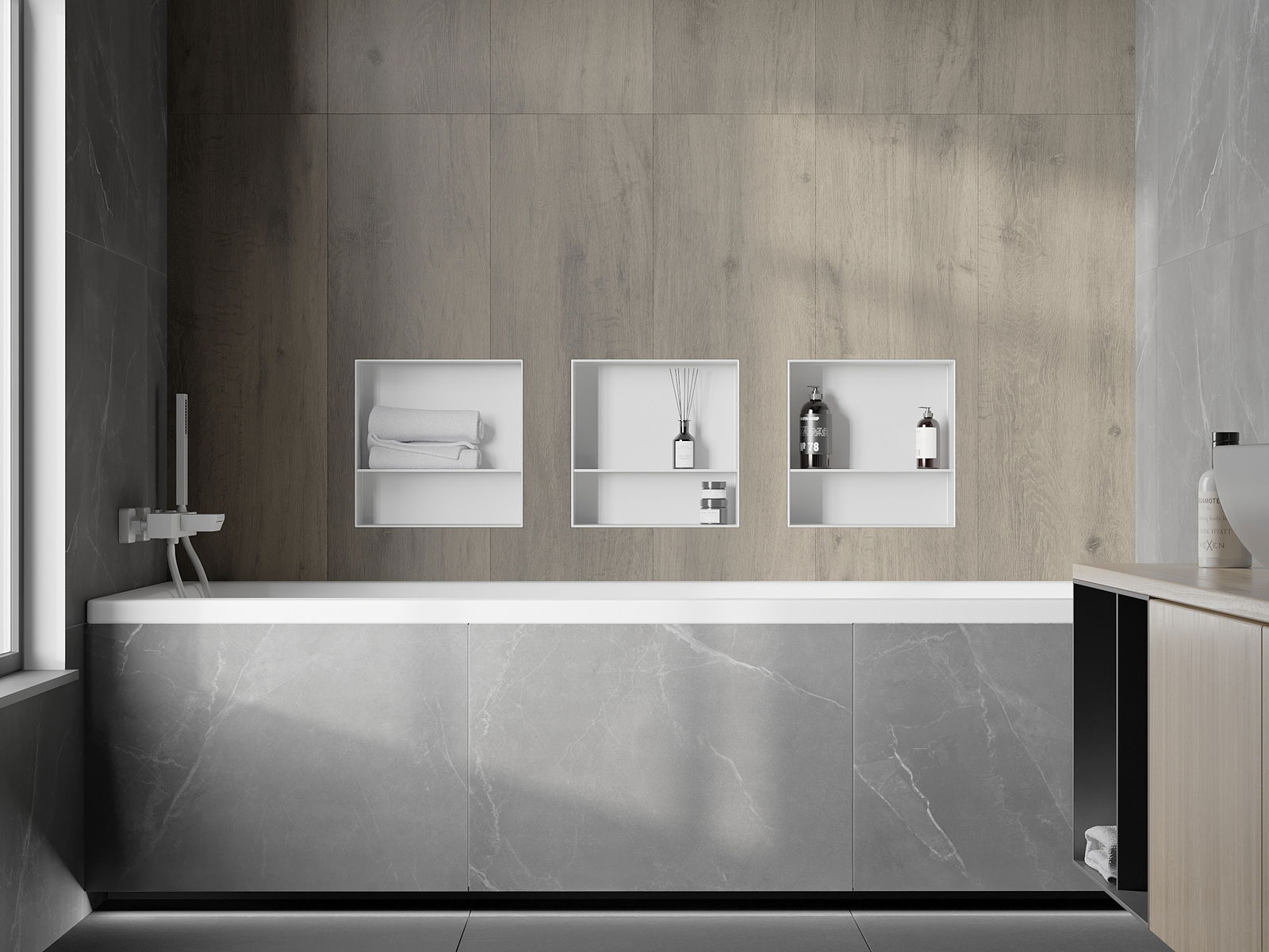 Možnosť inštalácie do steny alebo v špeciálne pripravenej budove. Je to mimoriadne moderné a funkčné riešenie, ktoré vám umožňuje ušetriť priestor a prispôsobiť produktu s estetikou interiéru a vytvoriť koherentné zloženie.