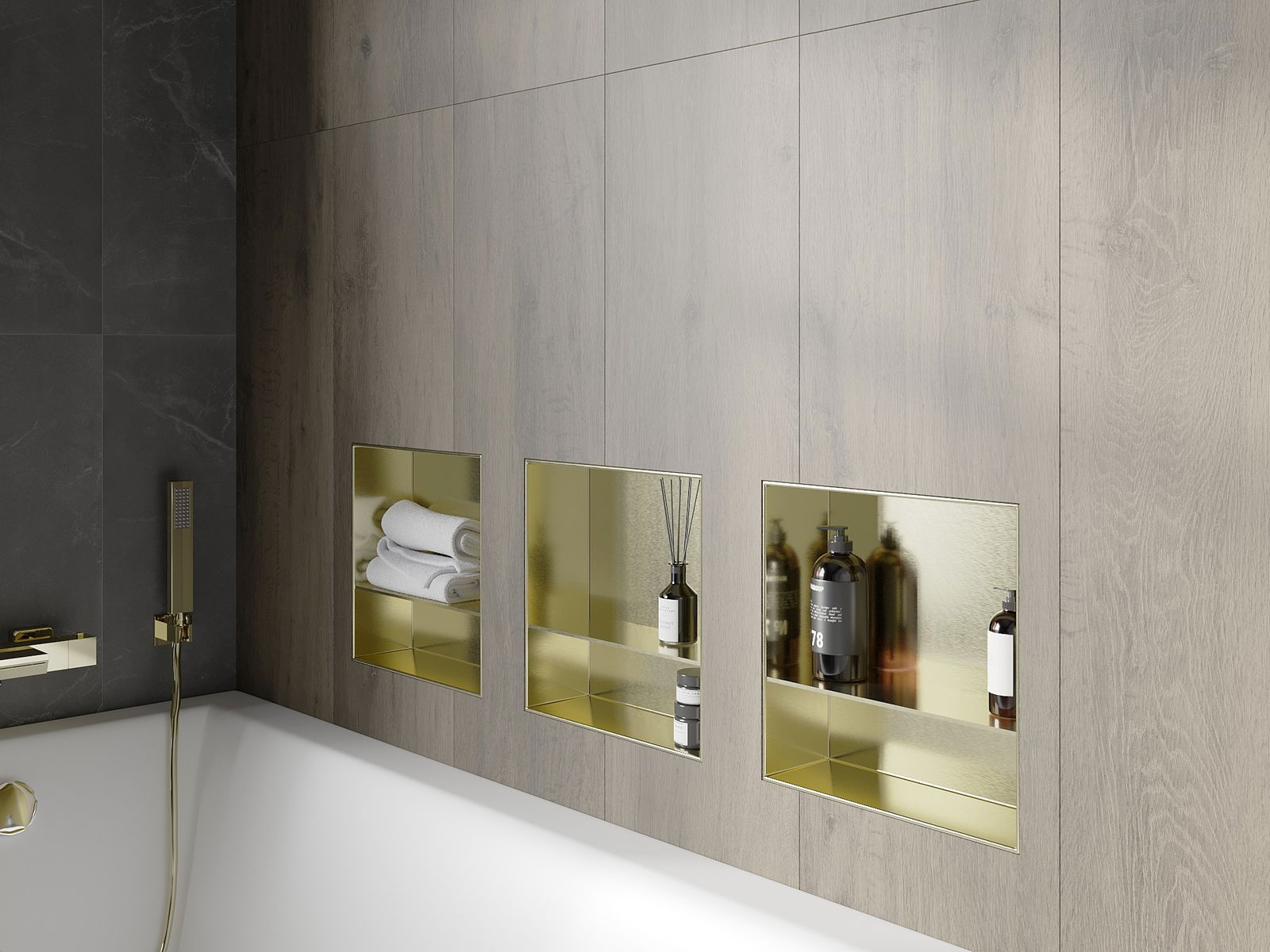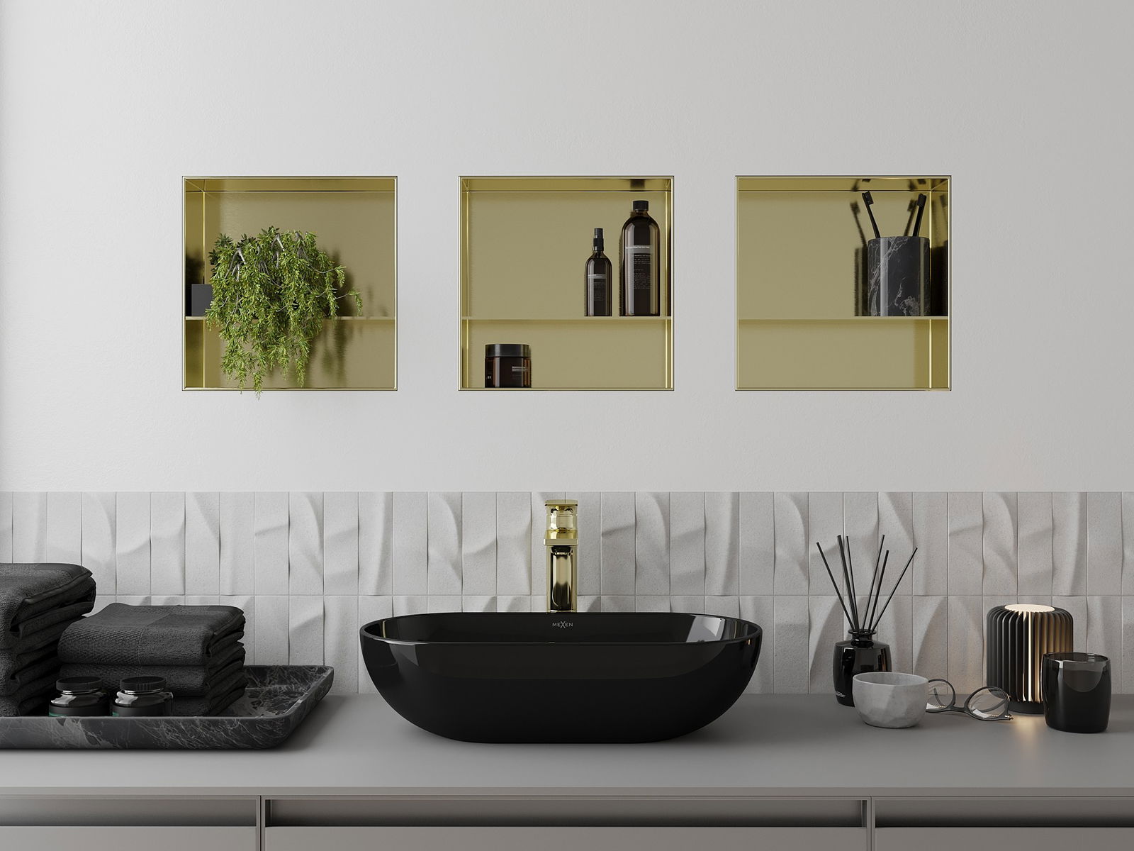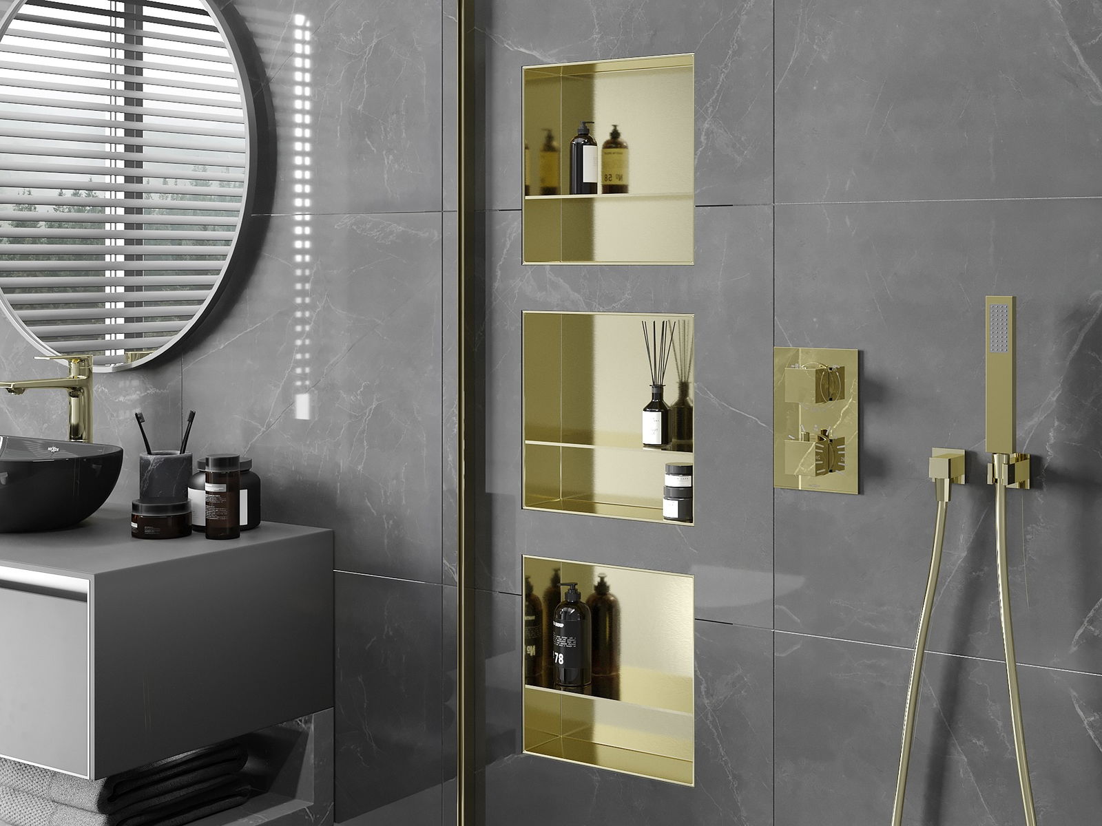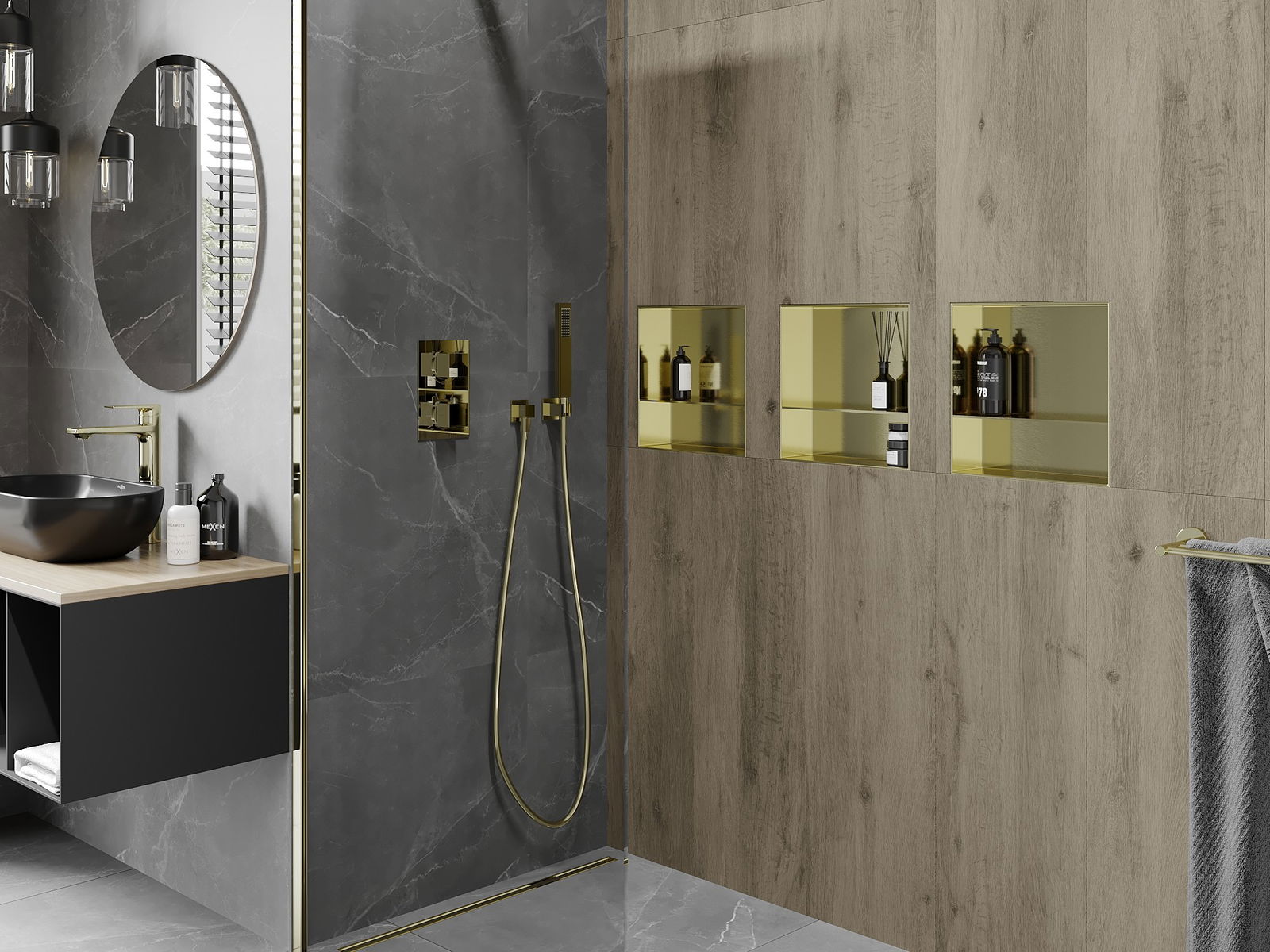 Mexen X-Wall-NR niková polica bez príruby s policou 30 x 30 cm, zlatá kartáčovaná - 1951303010S