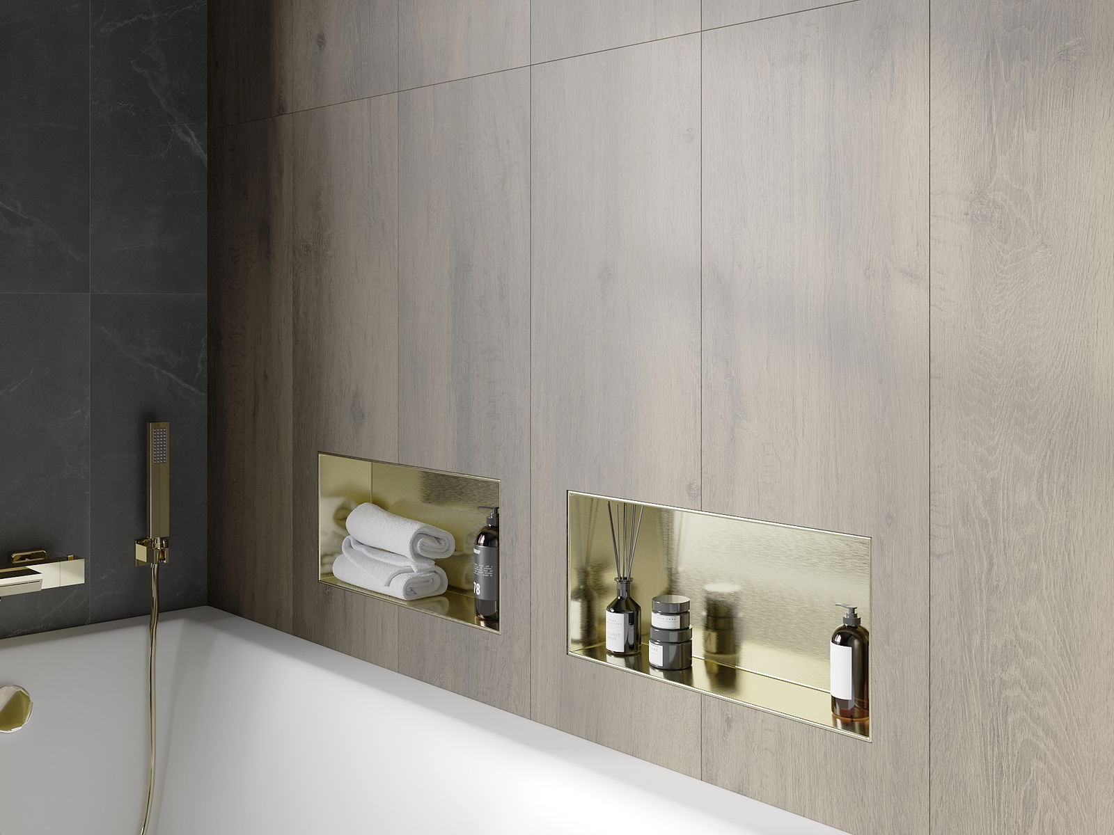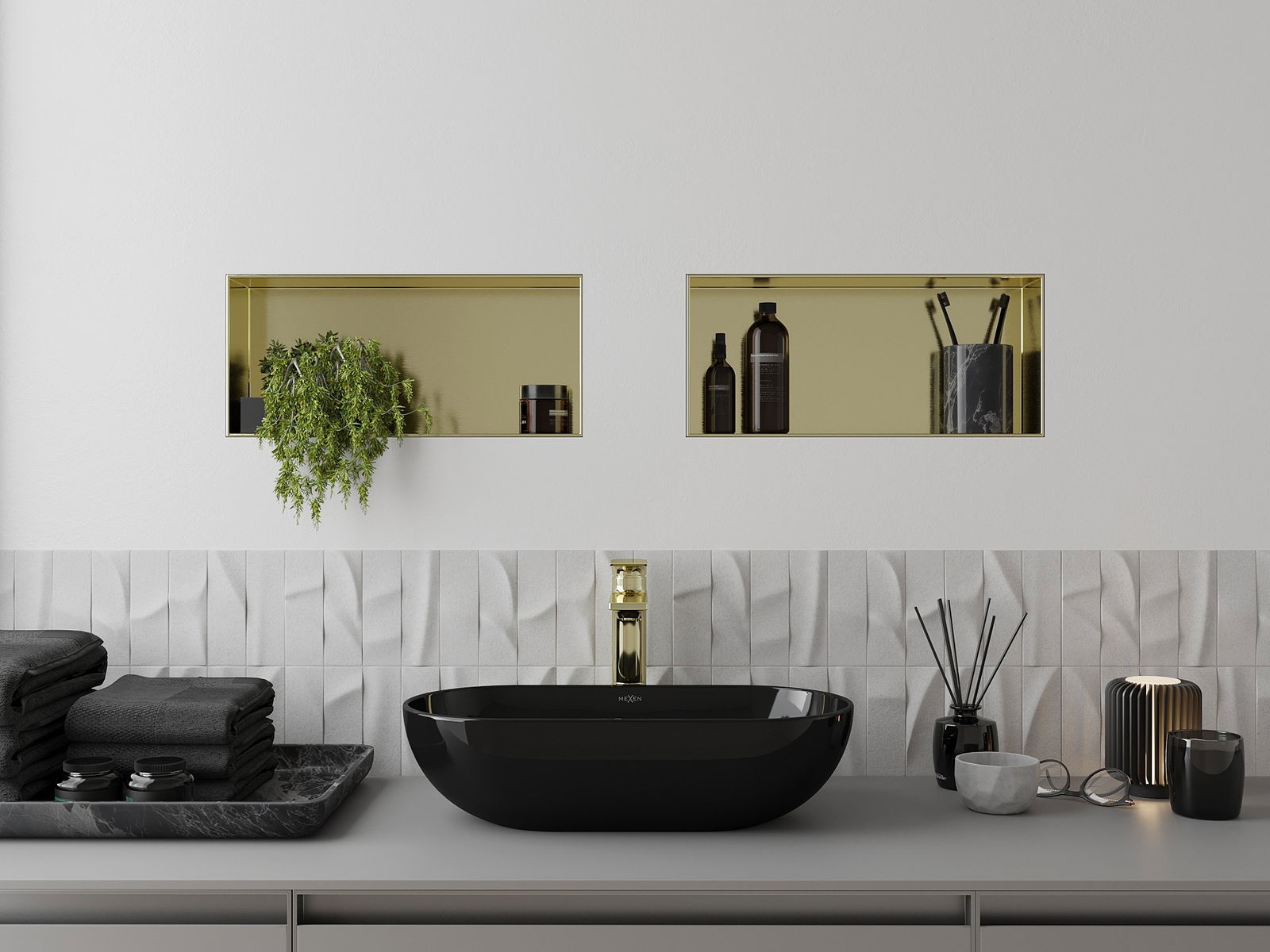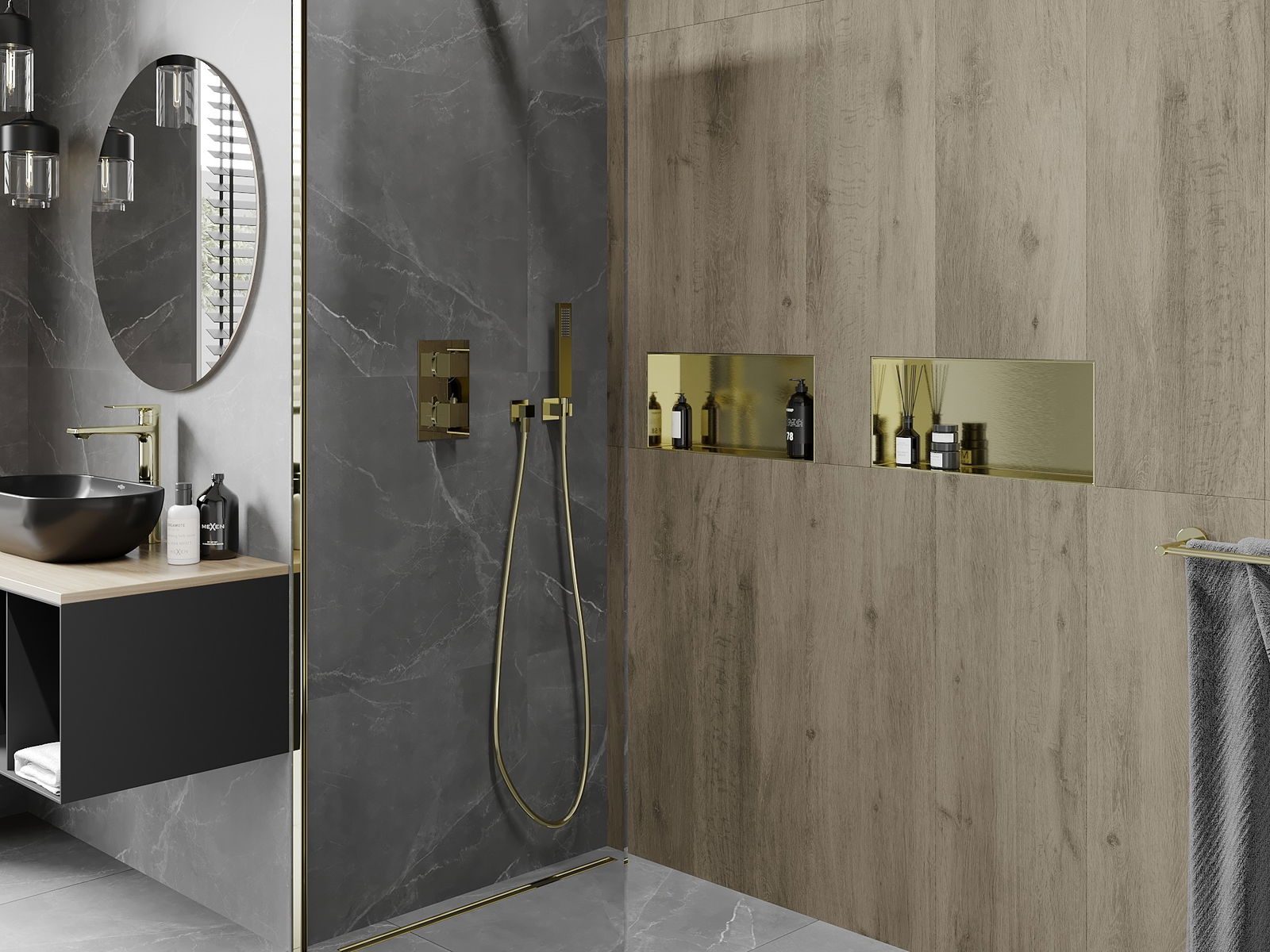 Mexen X-Wall-NR výklenková polica bez príruby 45 x 20 cm, zlatá kartáčovaná - 1951452010