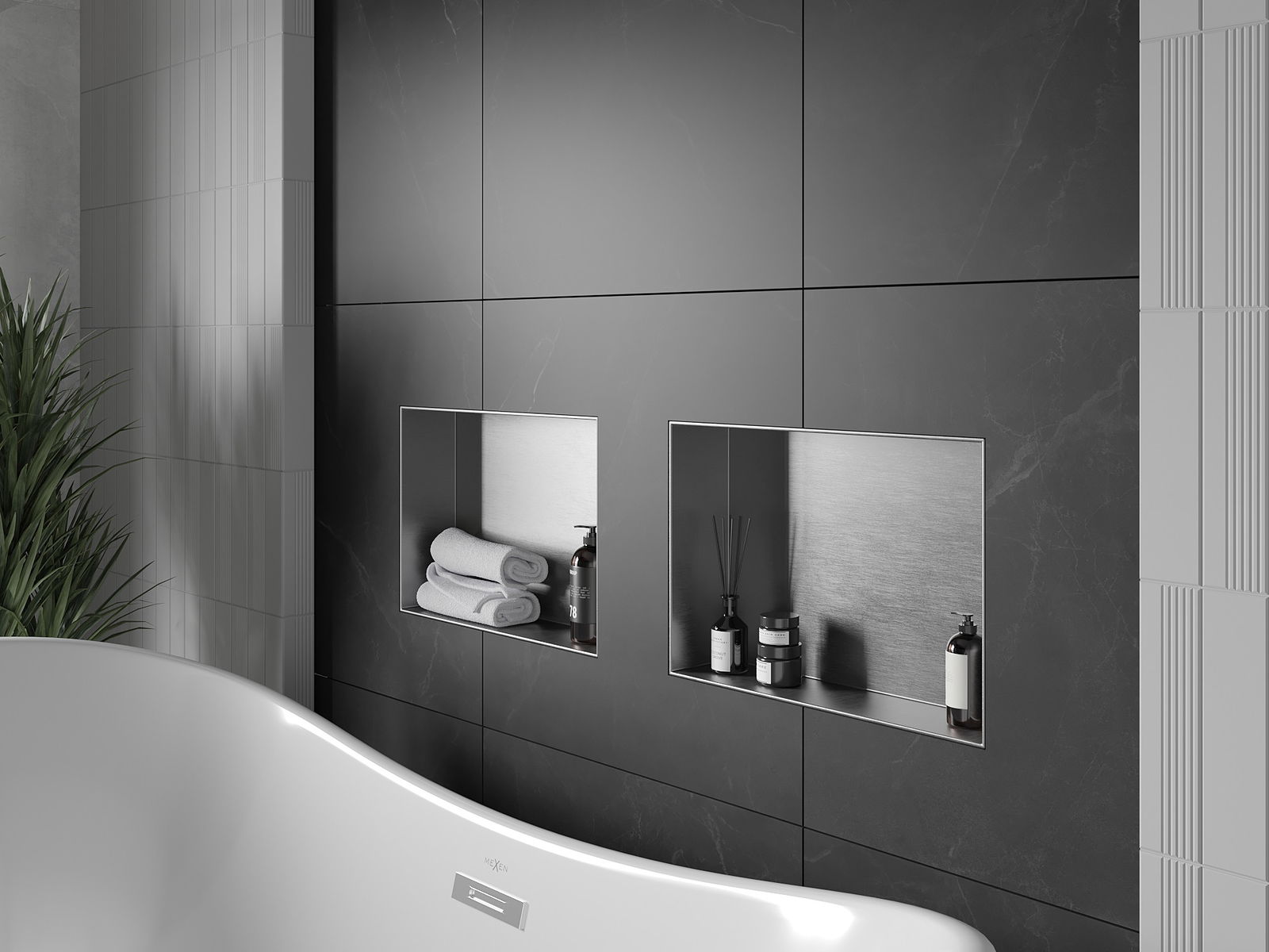 Mexen X-Wall-NR výklenková polica bez príruby 45 x 30 cm, inox - 1911453010
