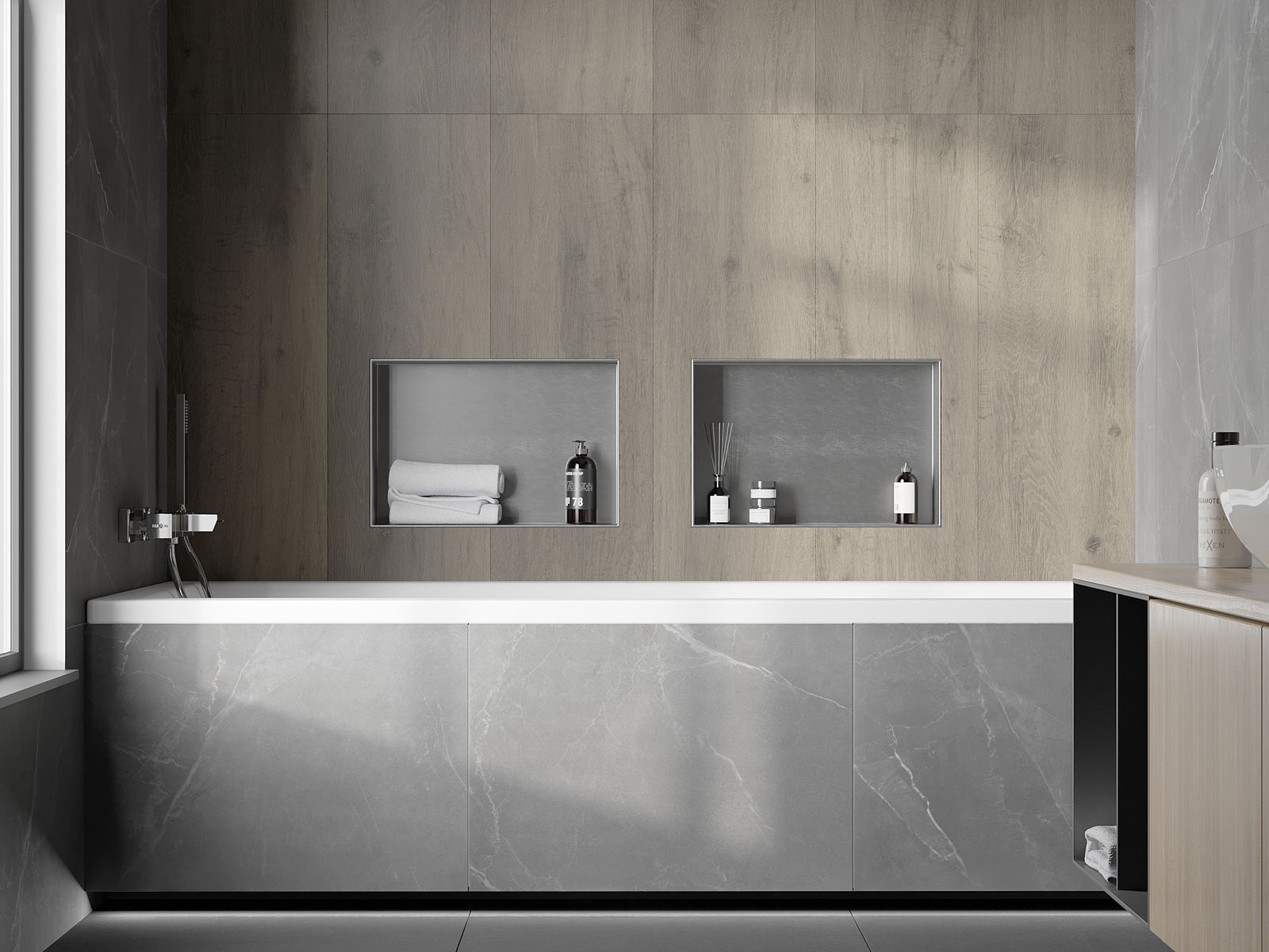 Možnosť inštalácie do steny alebo v špeciálne pripravenej budove. Je to mimoriadne moderné a funkčné riešenie, ktoré vám umožňuje ušetriť priestor a prispôsobiť produktu s estetikou interiéru a vytvoriť koherentné zloženie.