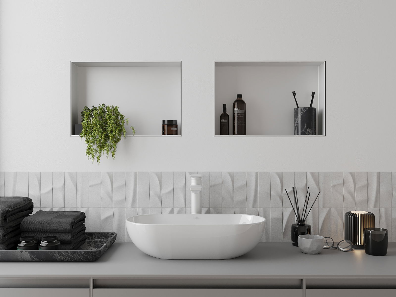 Možnosť inštalácie do steny alebo v špeciálne pripravenej budove. Je to mimoriadne moderné a funkčné riešenie, ktoré vám umožňuje ušetriť priestor a prispôsobiť produktu s estetikou interiéru a vytvoriť koherentné zloženie.