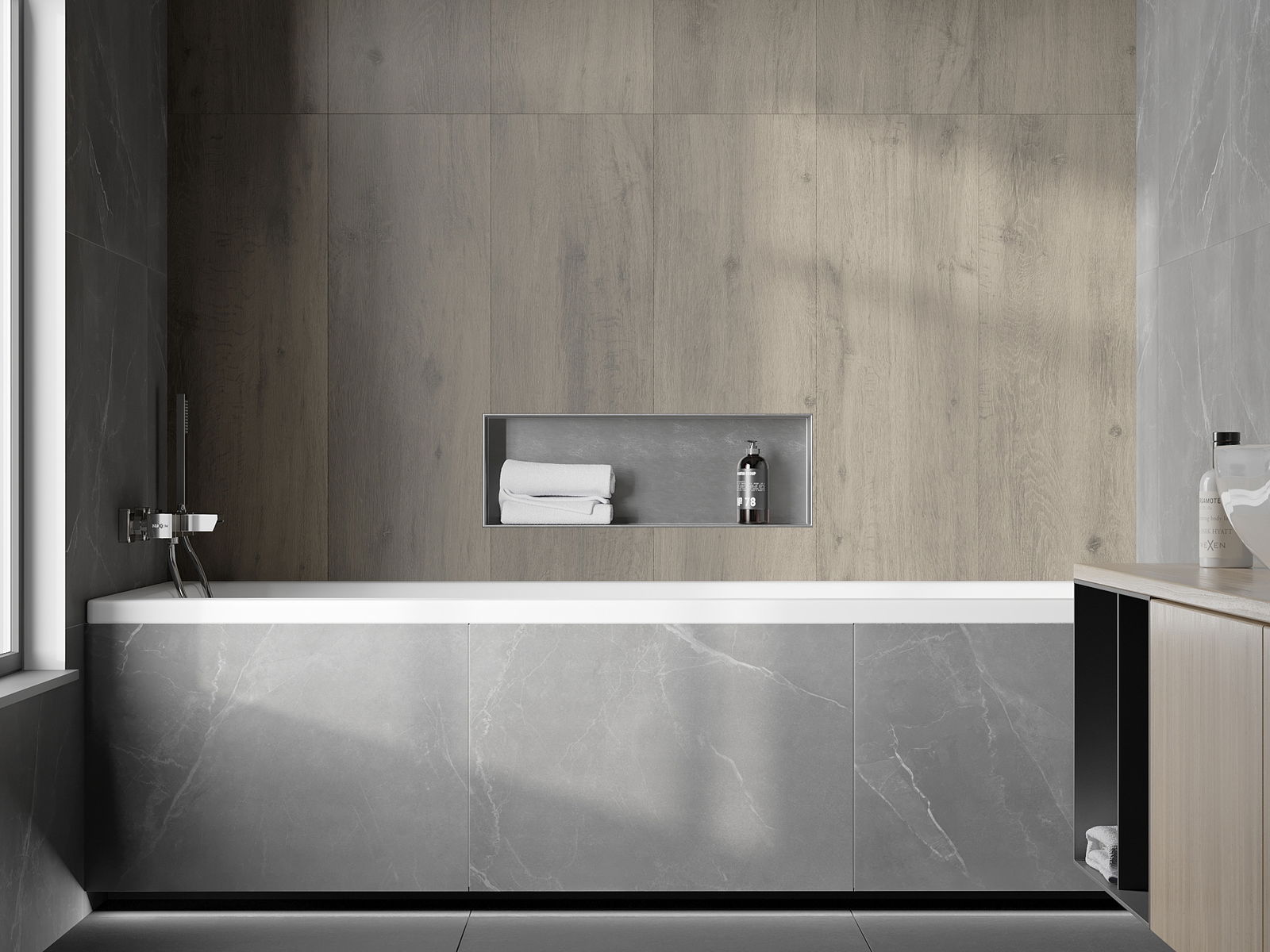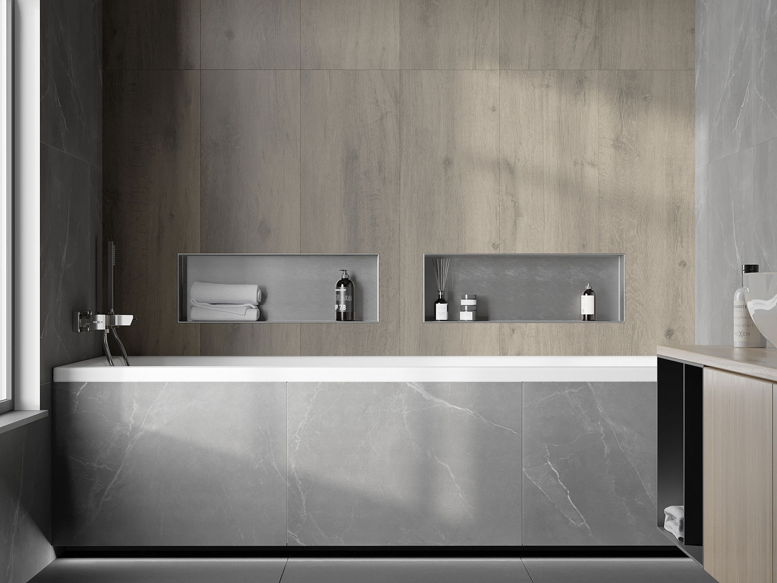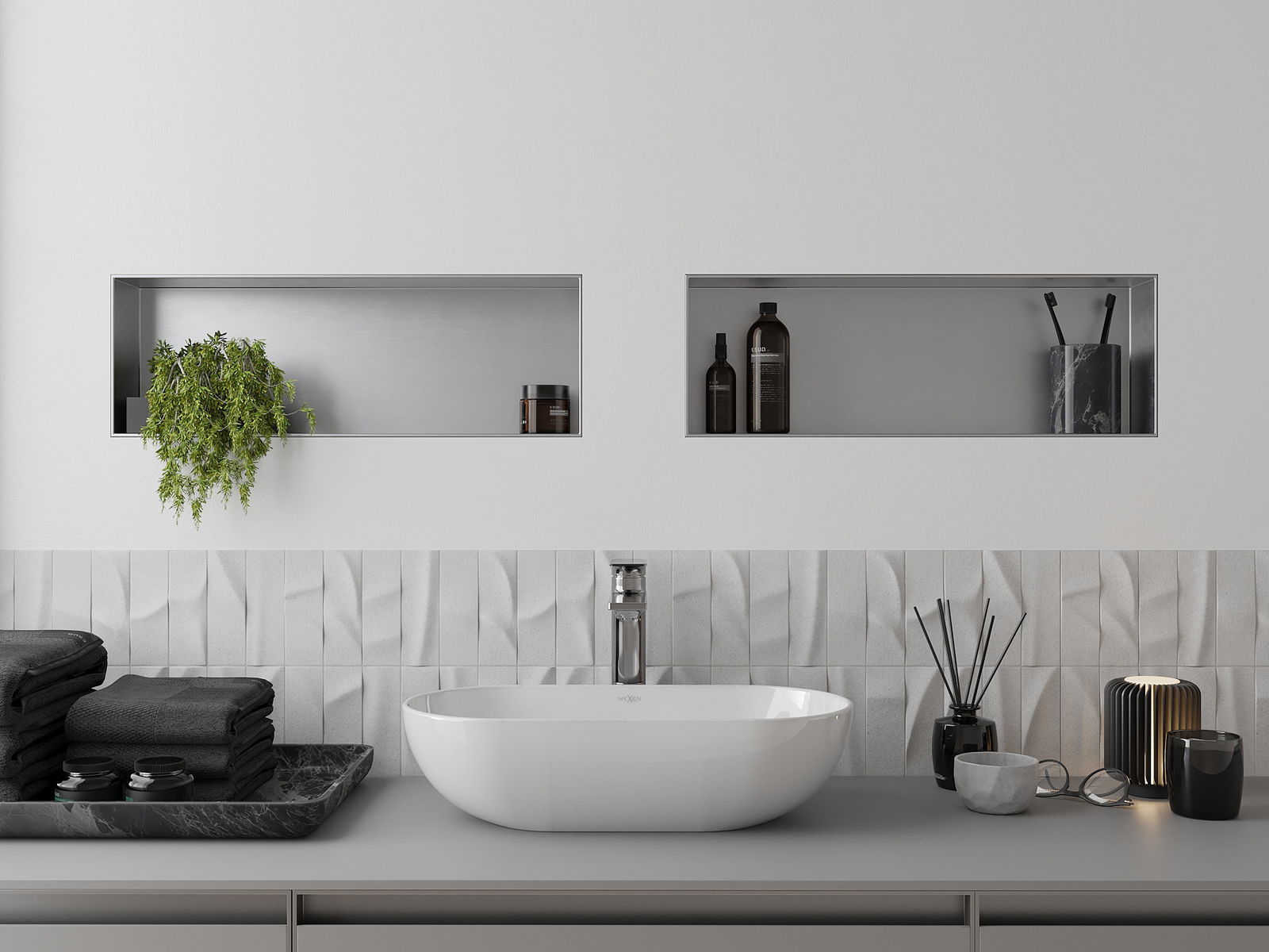 Možnosť inštalácie do steny alebo v špeciálne pripravenej budove. Je to mimoriadne moderné a funkčné riešenie, ktoré vám umožňuje ušetriť priestor a prispôsobiť produktu s estetikou interiéru a vytvoriť koherentné zloženie.