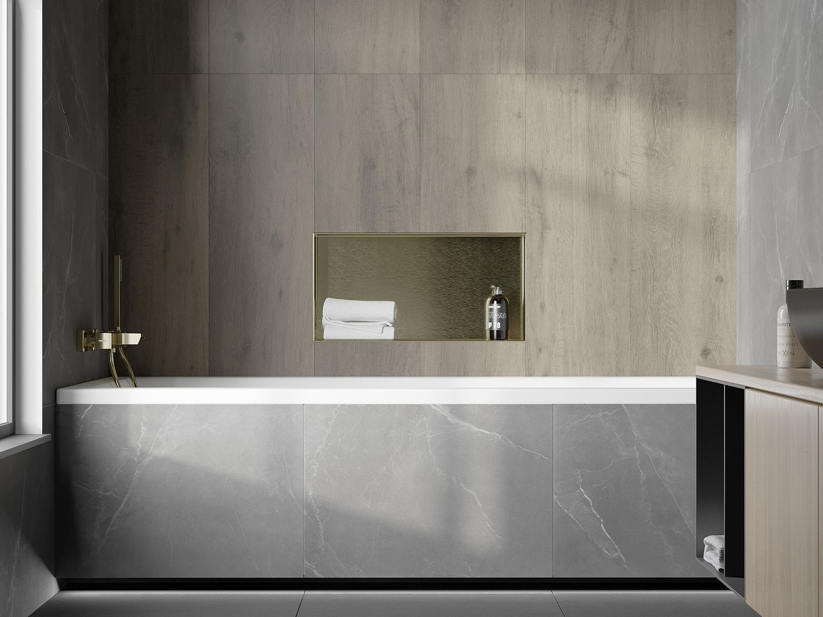 Možnosť inštalácie do steny alebo v špeciálne pripravenej budove. Je to mimoriadne moderné a funkčné riešenie, ktoré vám umožňuje ušetriť priestor a prispôsobiť produktu s estetikou interiéru a vytvoriť koherentné zloženie.