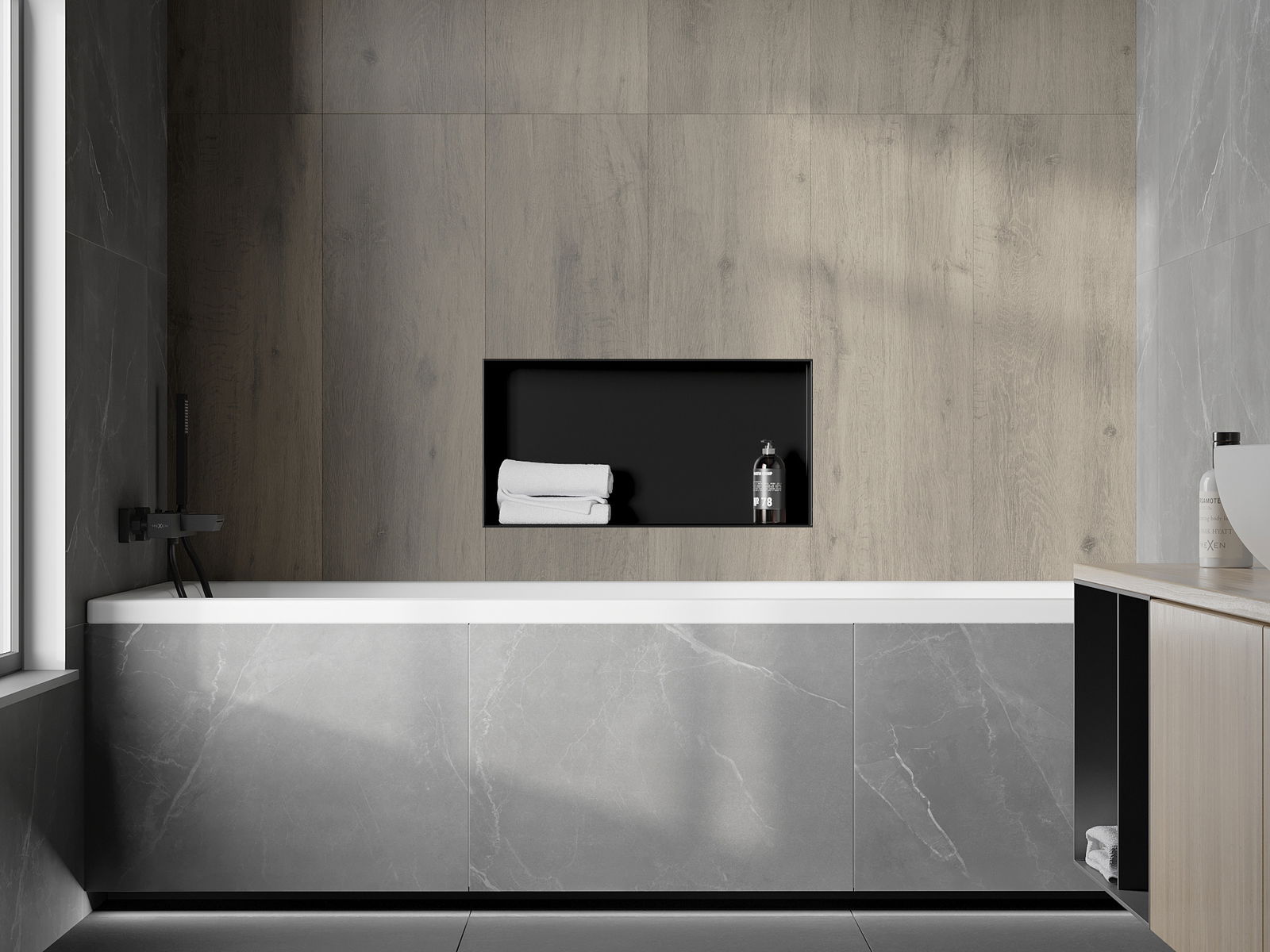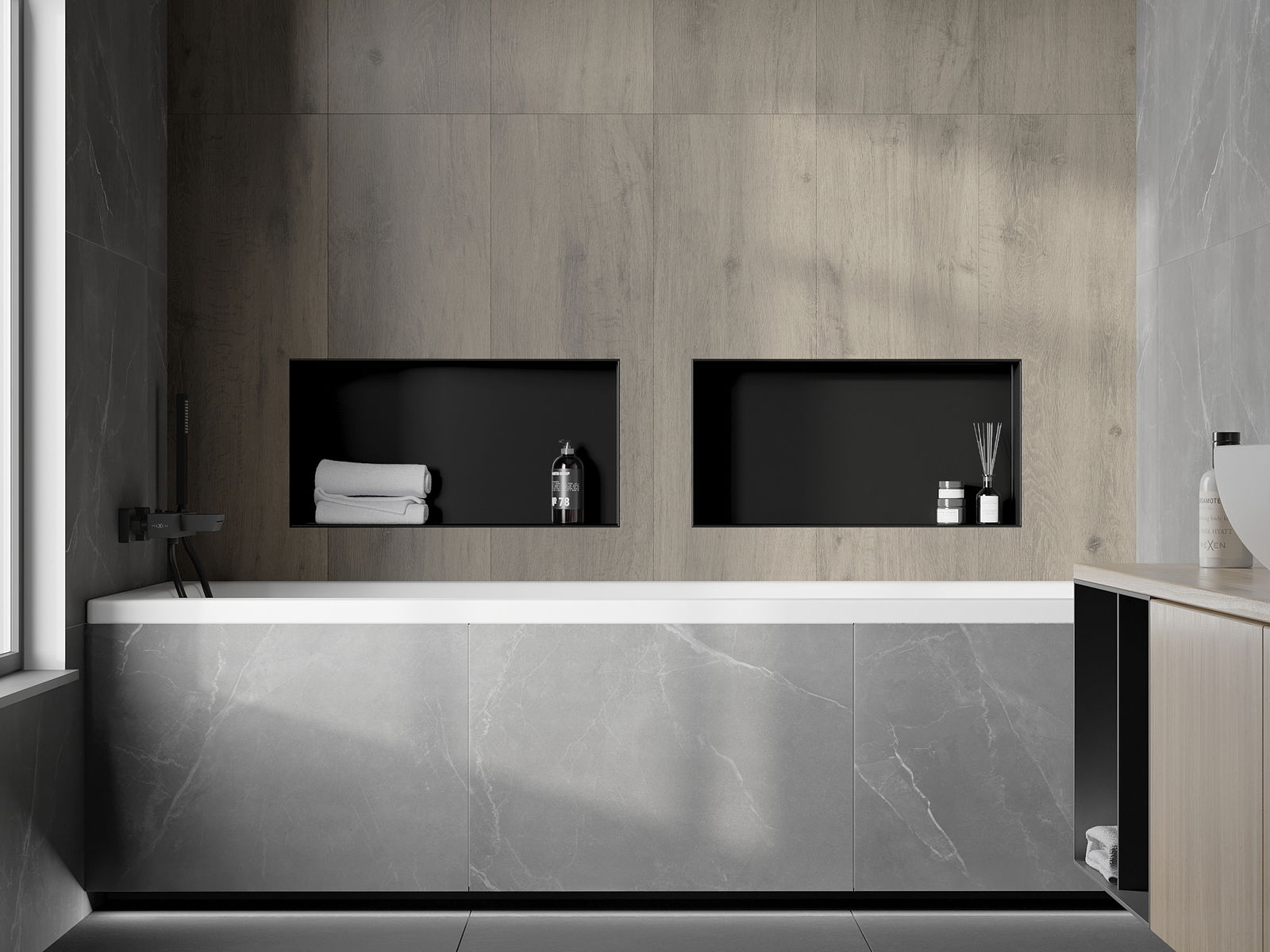 Možnosť inštalácie do steny alebo v špeciálne pripravenej budove. Je to mimoriadne moderné a funkčné riešenie, ktoré vám umožňuje ušetriť priestor a prispôsobiť produktu s estetikou interiéru a vytvoriť koherentné zloženie.