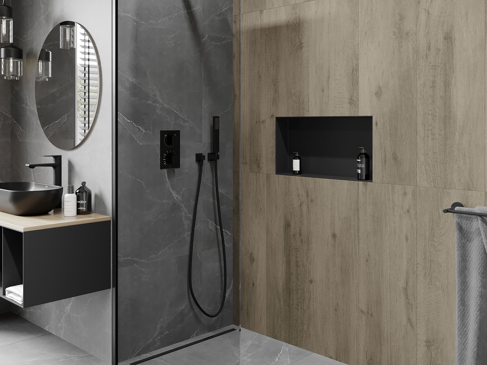Mexen X-Wall-NR vstavaná polica bez príruby 60 x 30 cm, čierna - 1971603010