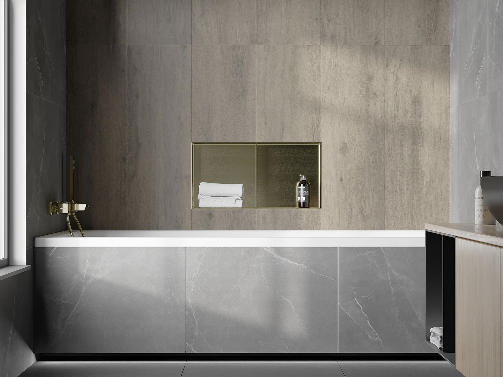 Možnosť montáže v stene alebo v špeciálne pripravenej konštrukcii. Je to mimoriadne moderné a funkčné riešenie, ktoré umožňuje ušetriť priestor a prispôsobiť produkt estetike interiéru a vytvoriť súvislú kompozíciu.