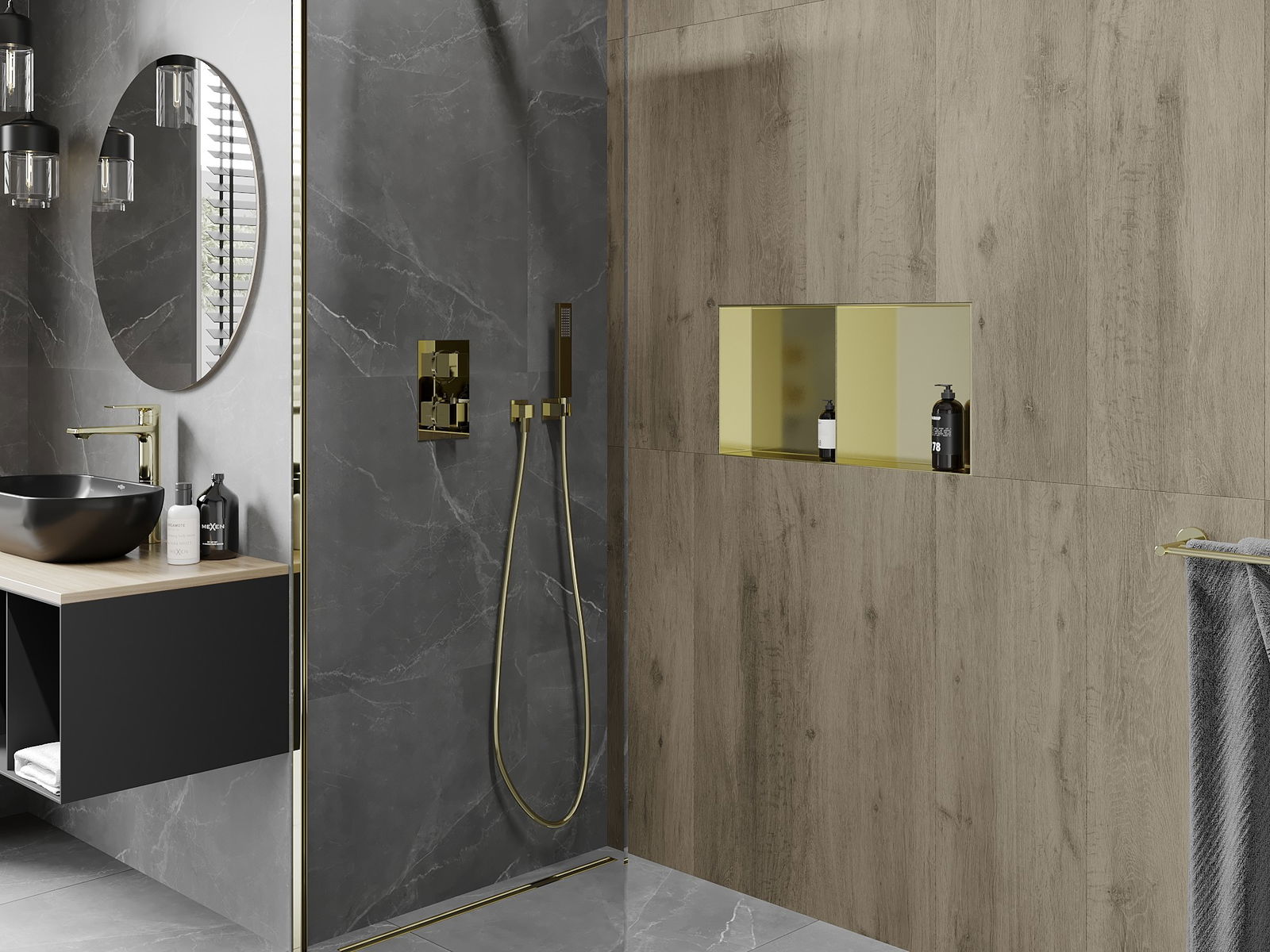 Mexen X-Wall-NR nástenná polica bez priehradky s poličkou 60 x 30 cm, zlatá kefovaná - 1951603010S