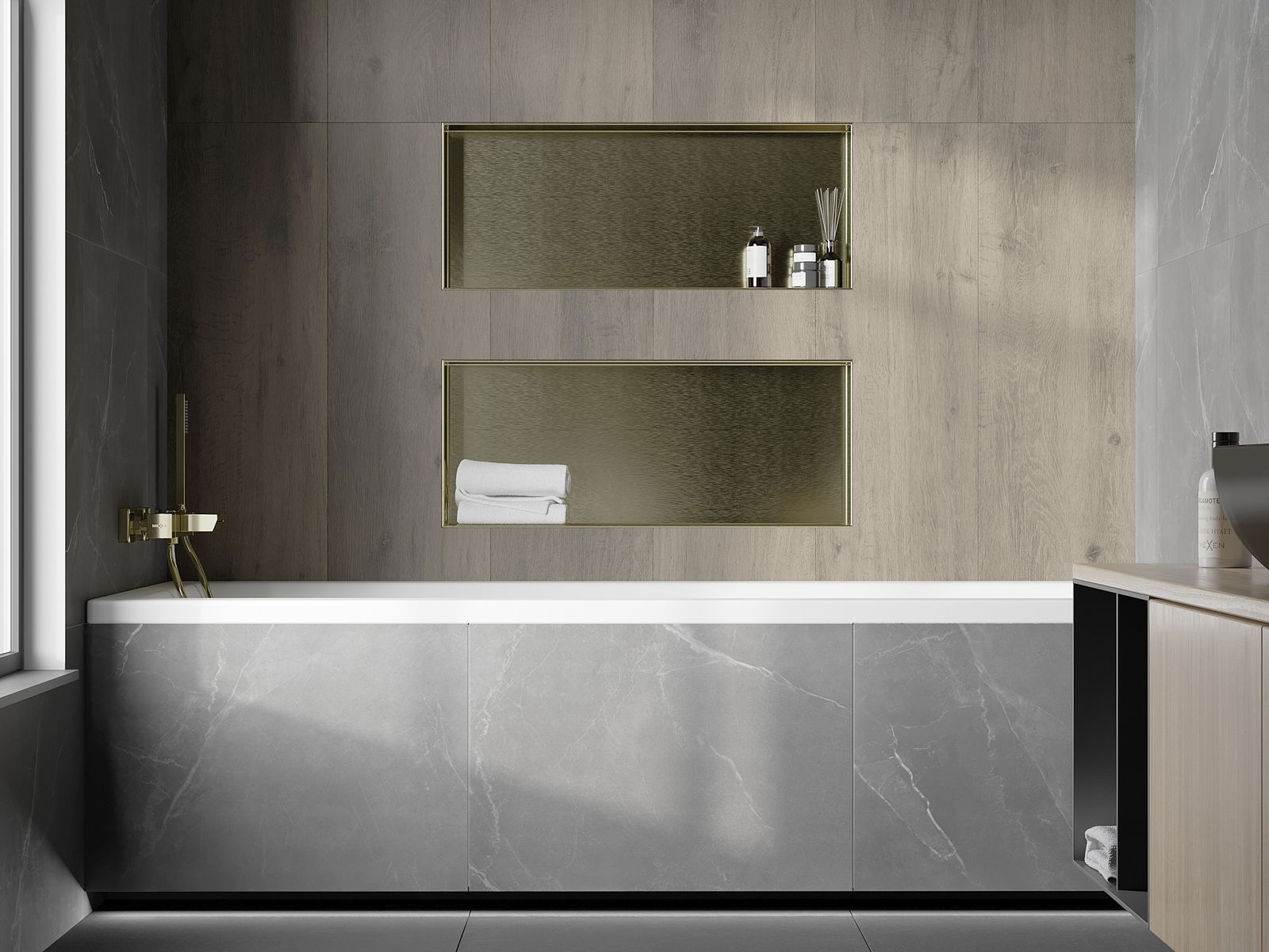 Možnosť montáže v stene alebo v špeciálne pripravenej konštrukcii. Je to mimoriadne moderné a funkčné riešenie, ktoré umožňuje ušetriť priestor a prispôsobiť produkt estetike interiéru a vytvoriť súvislú kompozíciu.