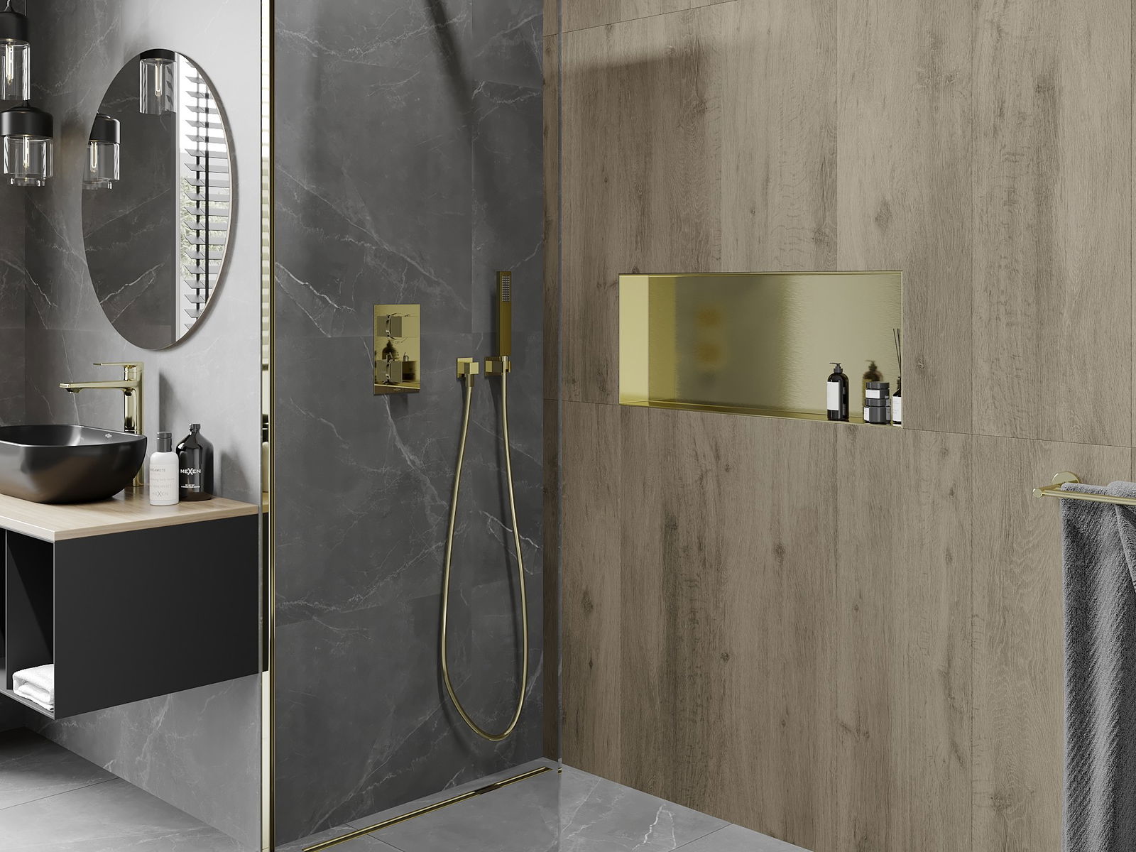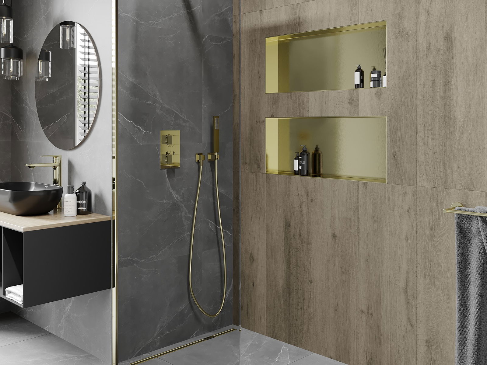 Mexen X-Wall-NR nástenná polička bez obruby 75 x 30 cm, zlatá kartáčovaná - 1951753010