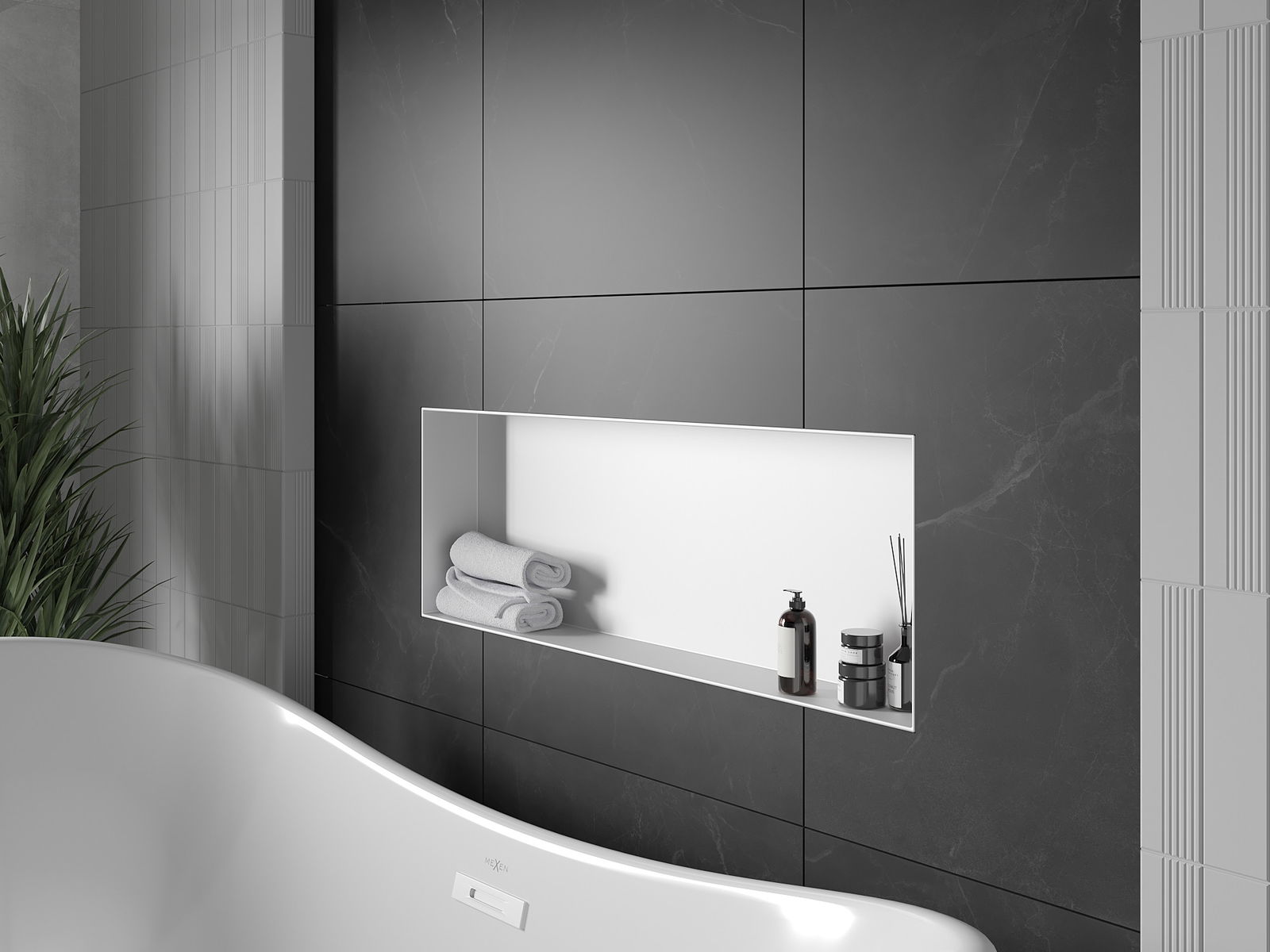 Mexen X-Wall-NR výklenková polica bez príruby 90 x 30 cm, biela - 1921903010