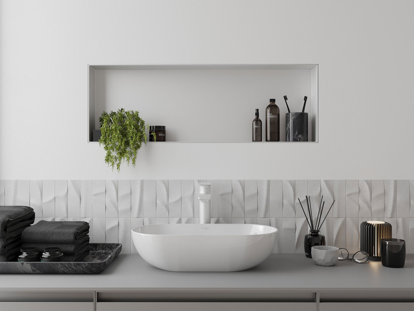 Možnosť inštalácie do steny alebo v špeciálne pripravenej budove. Je to mimoriadne moderné a funkčné riešenie, ktoré vám umožňuje ušetriť priestor a prispôsobiť produktu s estetikou interiéru a vytvoriť koherentné zloženie.