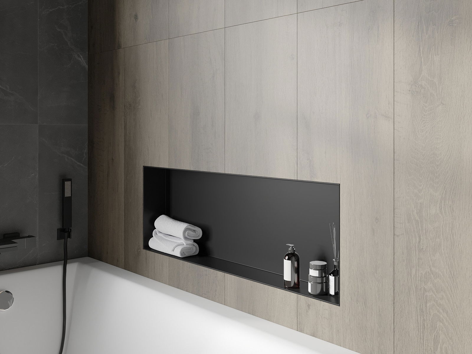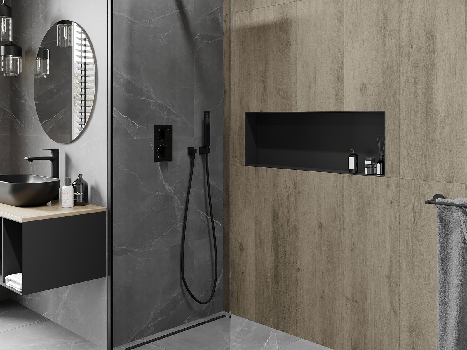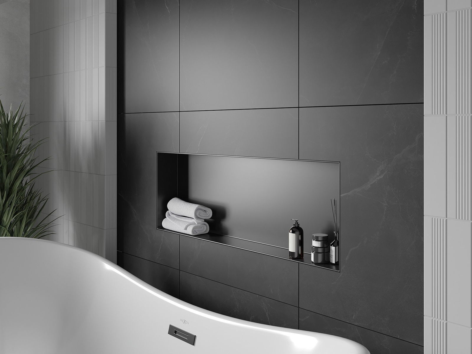 Mexen X-Wall-NR vstavaná polica bez príruby 90 x 30 cm, čierna - 1971903010