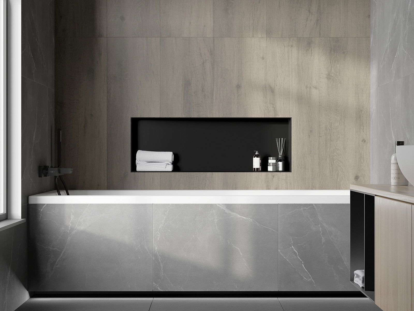 Možnosť inštalácie do steny alebo v špeciálne pripravenej budove. Je to mimoriadne moderné a funkčné riešenie, ktoré vám umožňuje ušetriť priestor a prispôsobiť produktu s estetikou interiéru a vytvoriť koherentné zloženie.