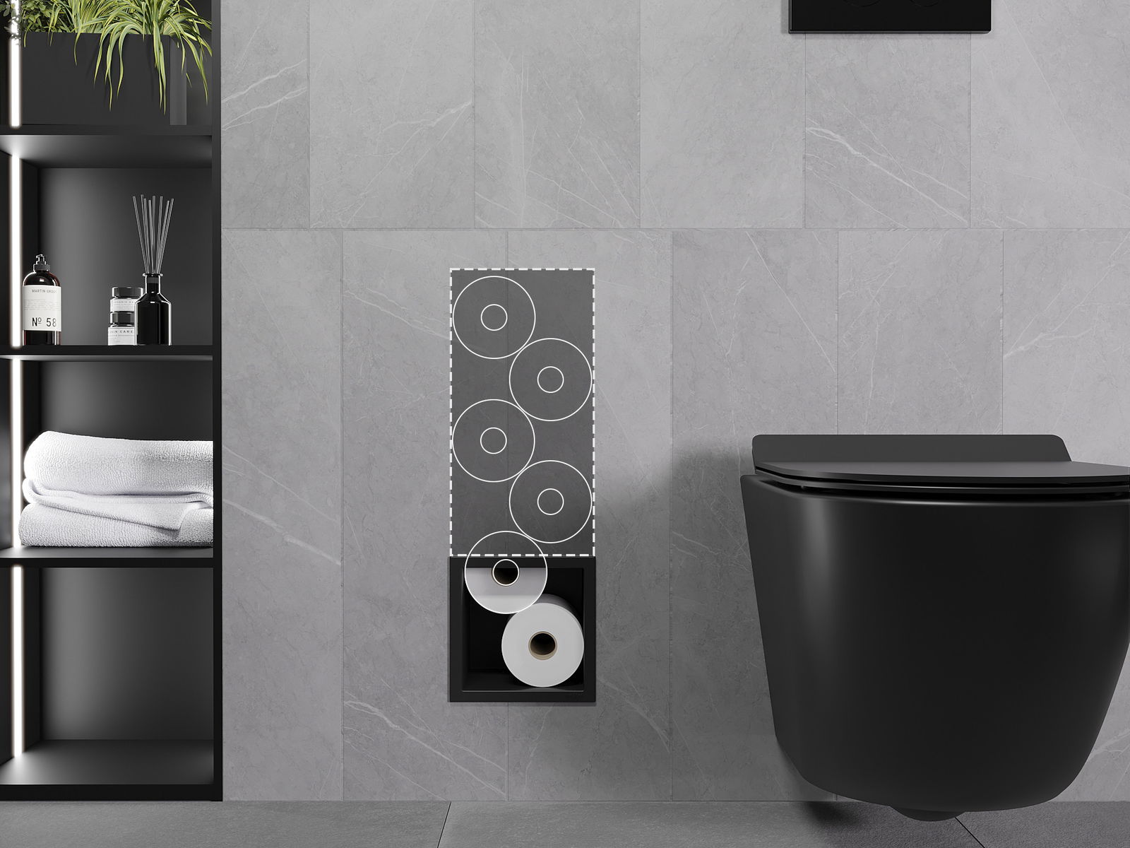 X-stena je praktický držiak na toaletný papier so skladom zabudovaným do steny. Nová rolka je vždy na dosah ruky a miesto, ktoré predtým bolo určené na ukladanie toaletného papiera, sa dá použiť iným spôsobom.